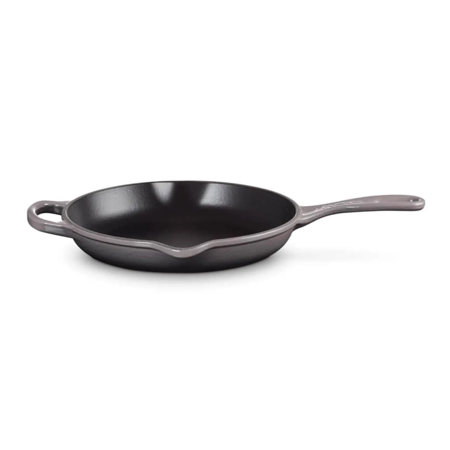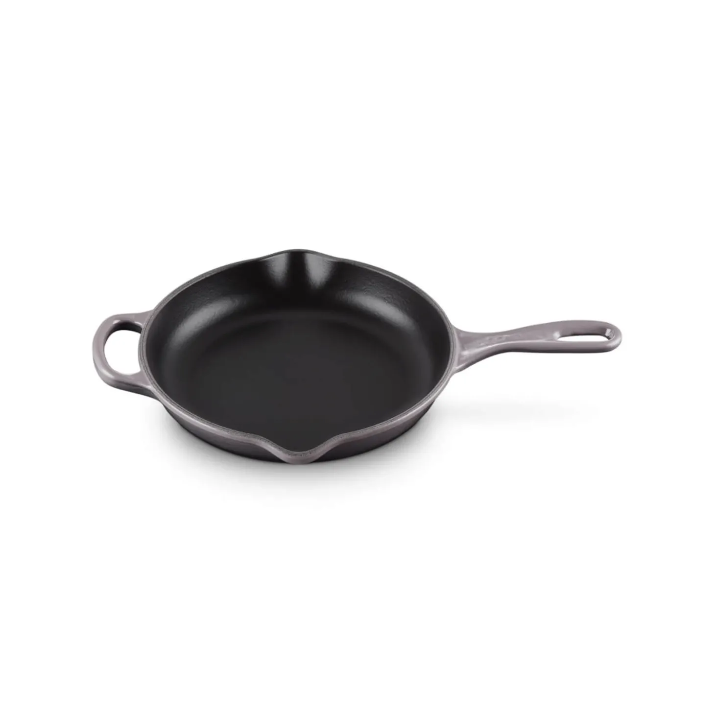 Perfect for a variety of tasks this Signature cast iron 23cm skillet in Flint from Le Creuset has been expertly crafted from using cast iron that has excellent heat distribution and retention qualities. With low to medium heat, you can sear and brown food quickly and the enamelled surface will develop a natural patina that will behave like a non-stick surface and add a unique flavour over time. This frying pan also has a useful helper handle for easy carrying from hob to table and has two drip-free pouring lips for added convenience.Â