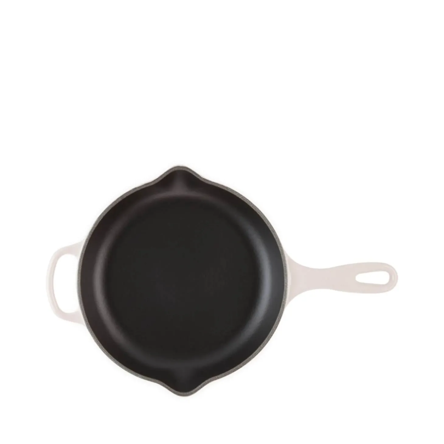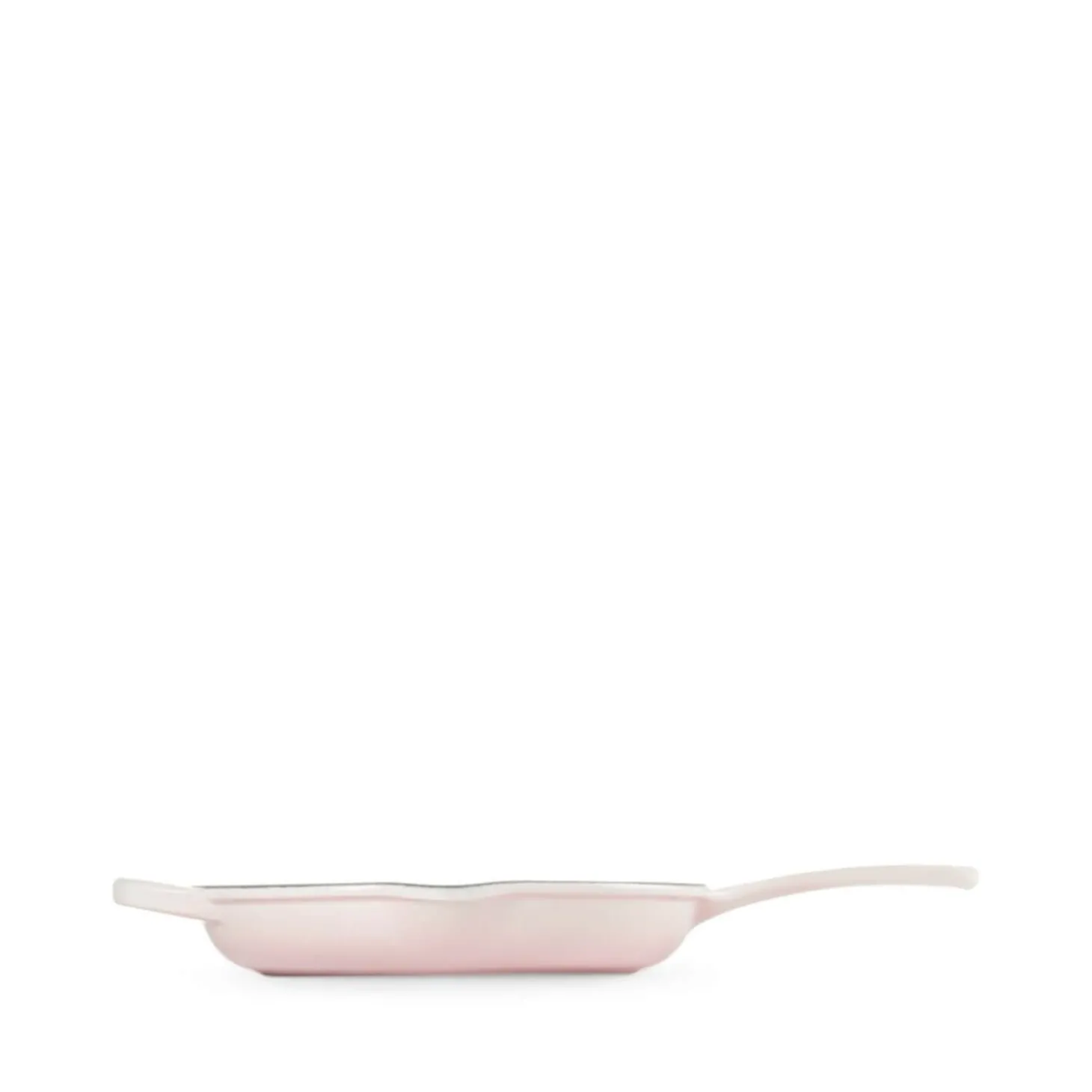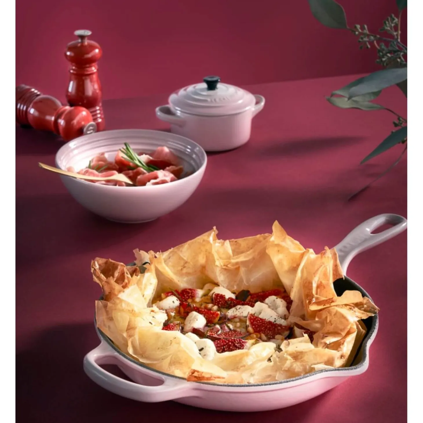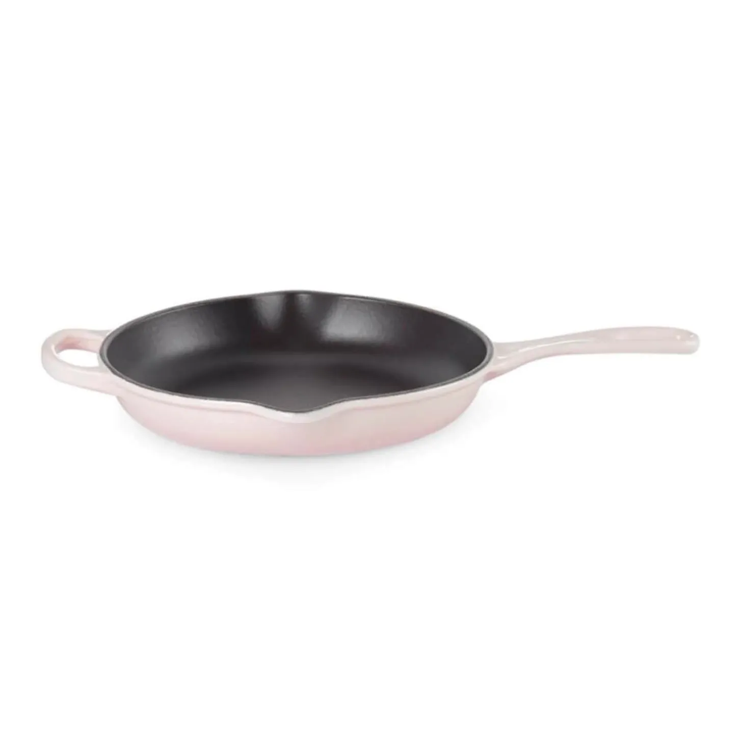 Perfect for a variety of tasks this Signature cast iron 23cm skillet in Shell Pink from Le Creuset has been expertly crafted from using cast iron that has excellent heat distribution and retention qualities. With low to medium heat, you can sear and brown food quickly and the enamelled surface will develop a natural patina that will behave like a non-stick surface and add a unique flavour over time. This frying pan also has a useful helper handle for easy carrying from hob to table and has two drip-free pouring lips for added convenience. Each skillet pan in the range is covered by a lifetime guarantee and is available in a variety of vibrant colourways.