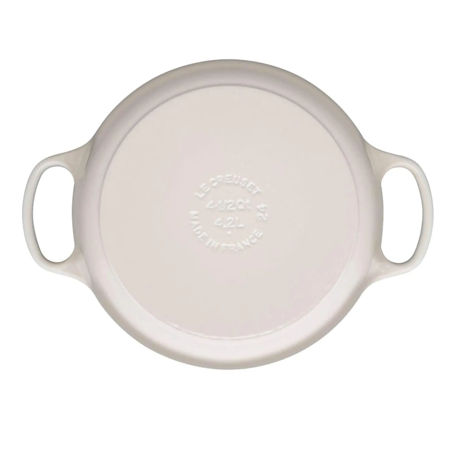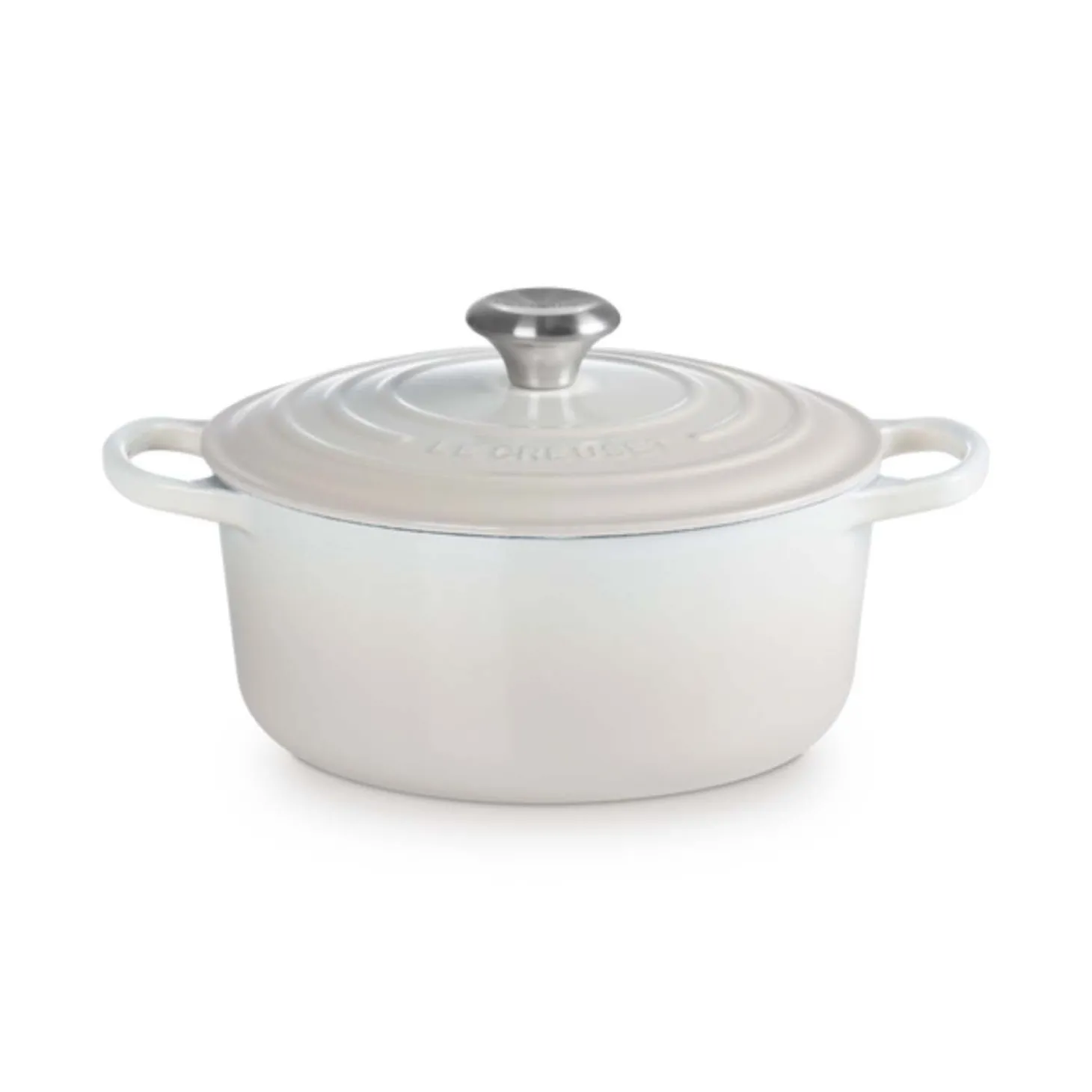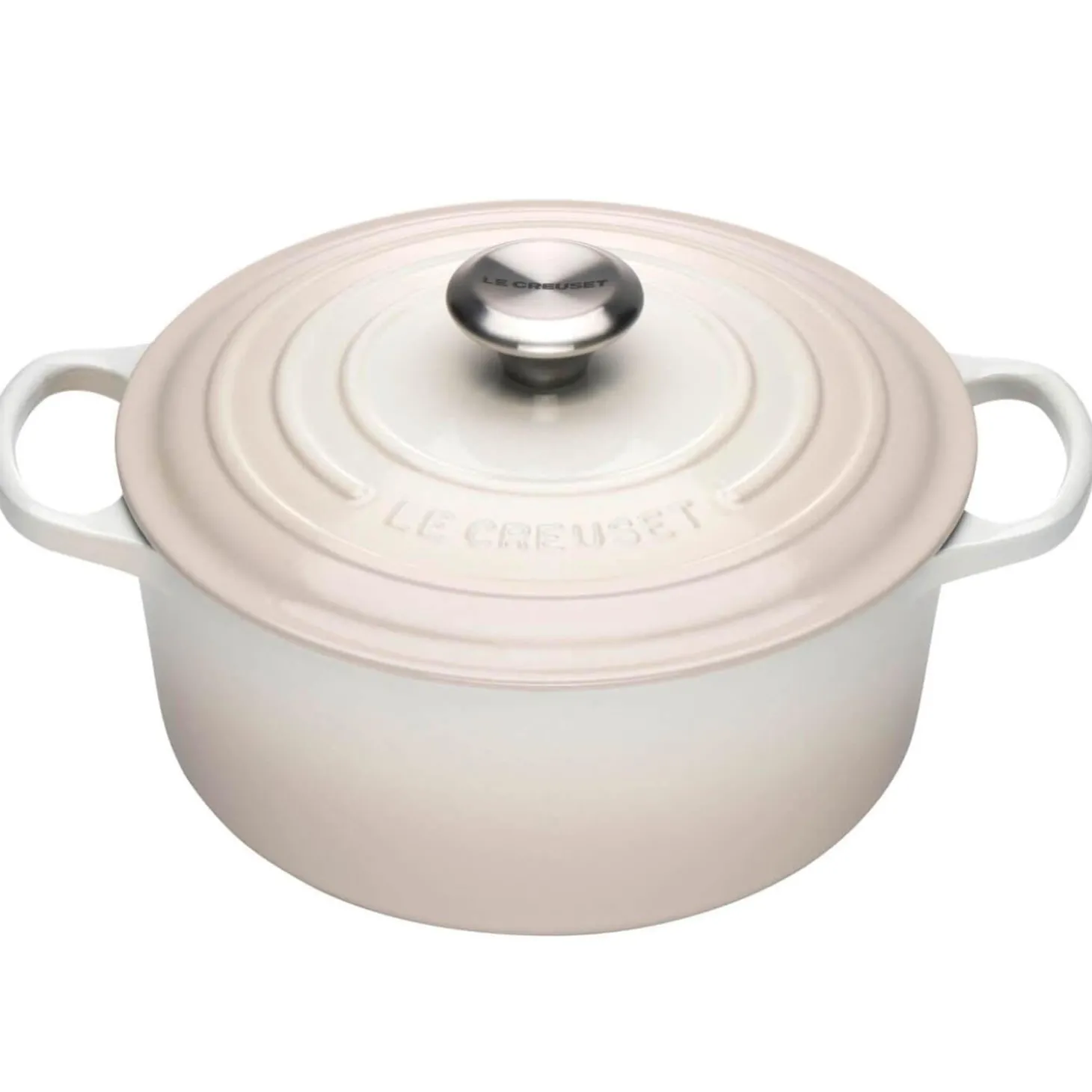 The Signature cast iron 24cm round casserole dish in Meringue by Le Creuset is a timeless kitchen essential. The dish can be applied to a whole variety of recipes ranging from stews, roasts, bread and much more. This casserole dish has been handcrafted in France using cast iron and can be used on all hob types including induction. The Signature range also features enamel easy clean interiors, ergonomic stainless steel knobs and a variety of vibrant colours.
