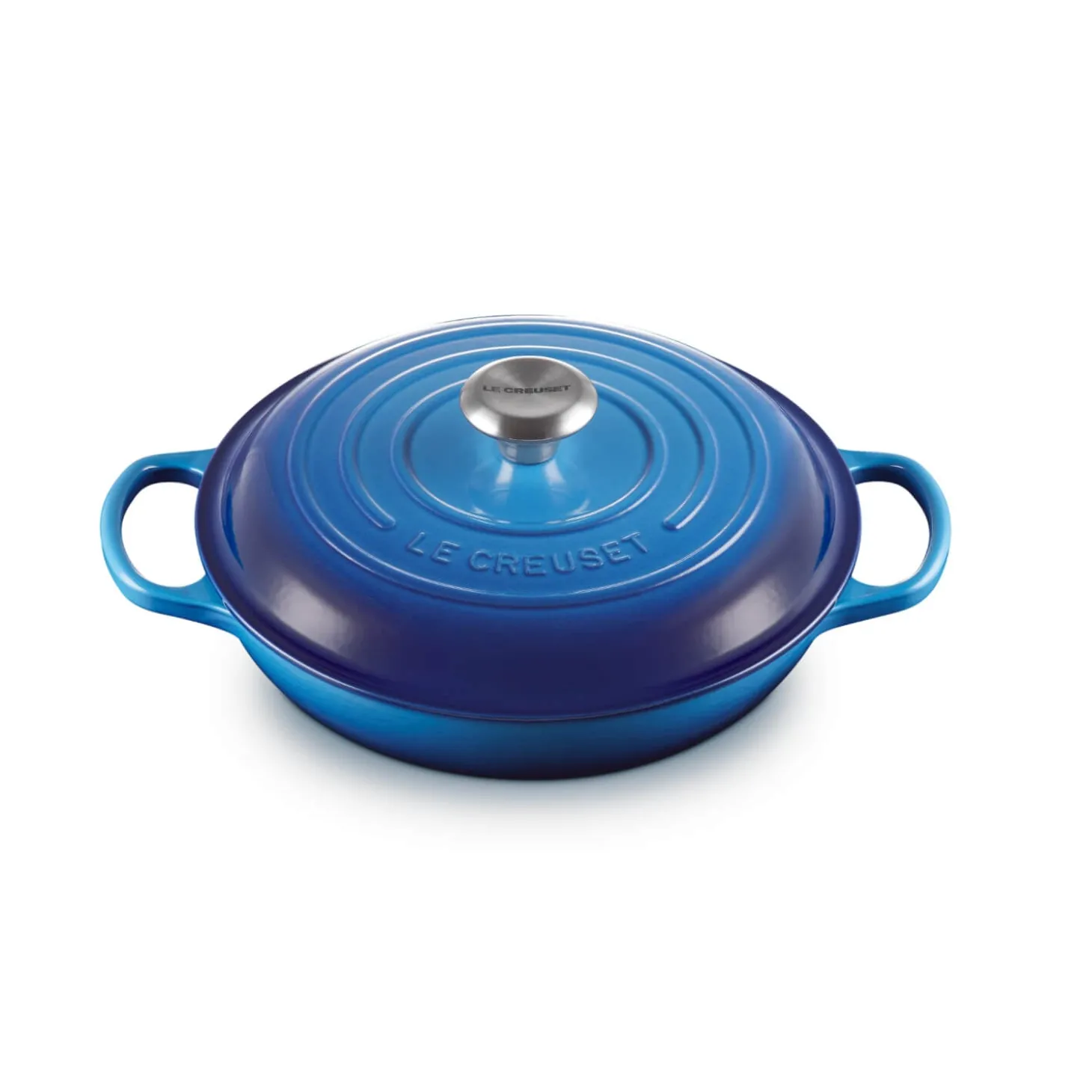 This on-trend Signature cast iron 26cm shallow round casserole by Le Creuset forms part of their Azure colourway collection. A versatile and timeless choice this dish can be applied to a variety of recipes including stews, roasts, bread making, soups and much more. Each cast iron piece has been handcrafted in France by skilled craftsmen with an expert enamel finish that is easy to clean and does not absorb stains or odours. These dishes can be used on all hob types including induction and feature an ergonomic stainless steel knob with the Le Creuset logo visible on the top. Other shapes, sizes and colours are also available.