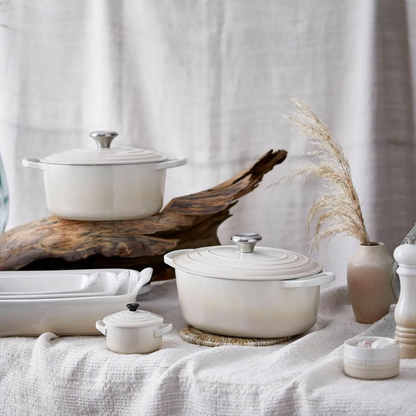 This on-trend Signature cast iron 27cm oval casserole in Meringue by Le Creuset forms part of the Signature collection. A versatile and timeless choice this dish can be applied to a variety of recipes including stews, roasts, bread making, soups and much more. Each cast iron piece has been handcrafted in France by skilled craftsmen with an expert enamel finish that is easy to clean and does not absorb stains or odours. These dishes can be used on all hob types including induction and feature an ergonomic stainless steel knob with the Le Creuset logo visible on the top. Other shapes, sizes and colours are also available.
