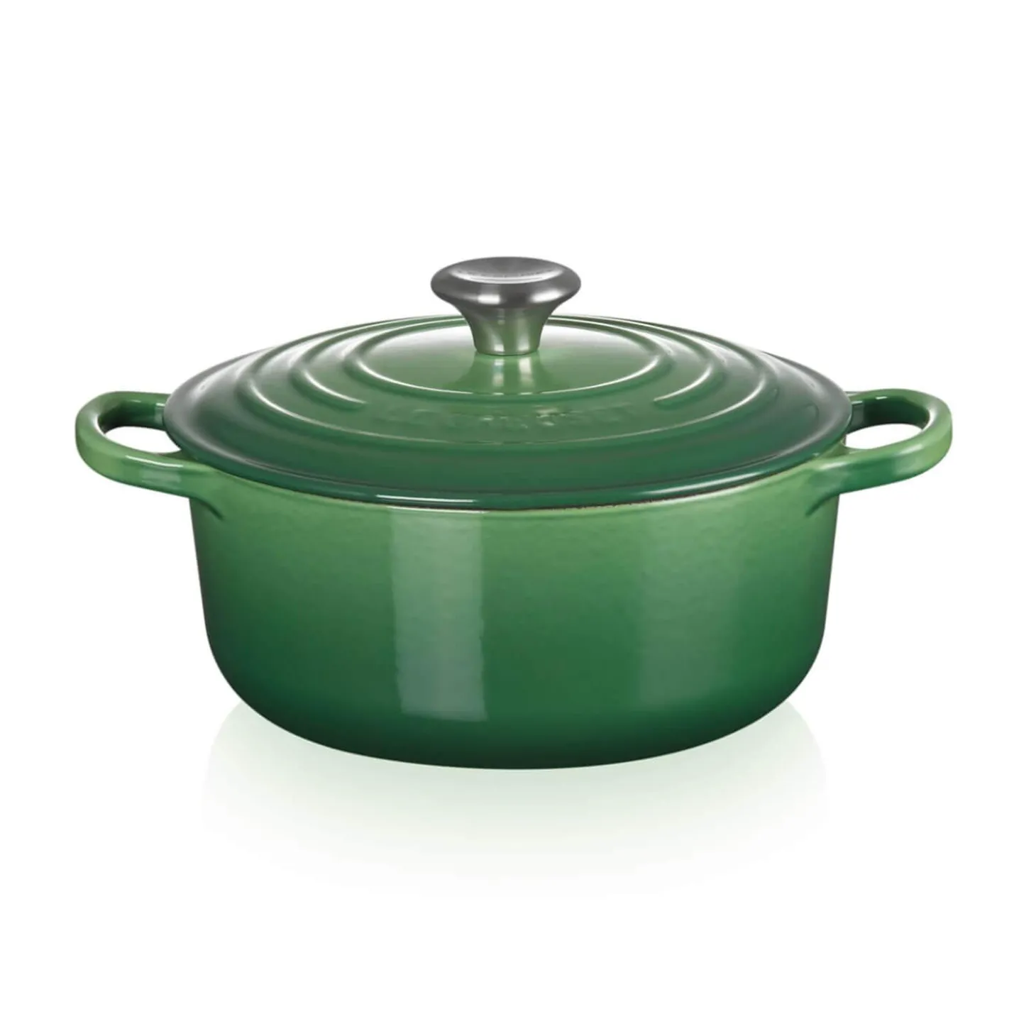 This on-trend Signature cast iron 28cm round casserole by Le Creuset forms part of their nature-inspired Bamboo collection. A versatile and timeless choice this dish can be applied to a variety of recipes including stews, roasts, bread making, soups and much more. Each cast iron piece has been handcrafted in France by skilled craftsmen with an expert enamel finish that is easy to clean and does not absorb stains or odours. These dishes can be used on all hob types including induction and feature an ergonomic stainless steel knob with the Le Creuset logo visible on the top. Other shapes, sizes and colours are also available.