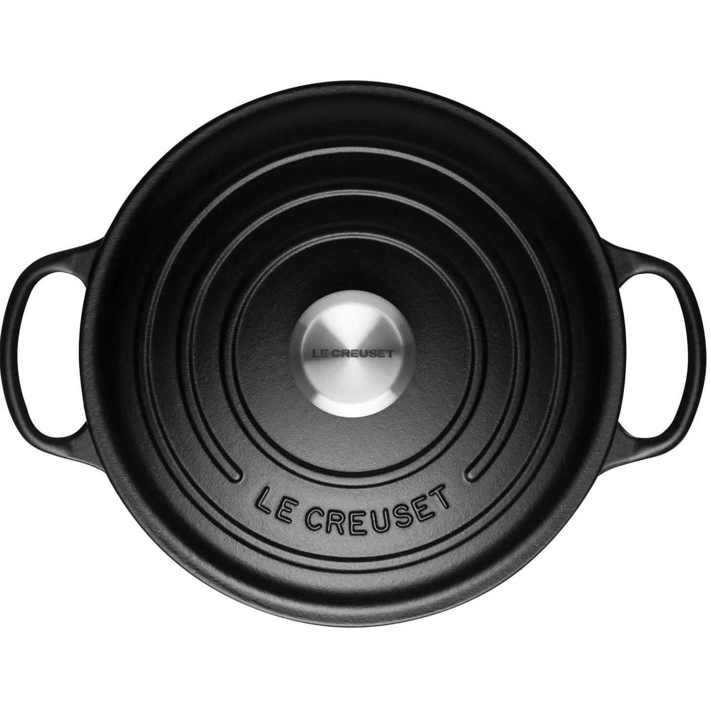 The Le Creuset Signature Cast Iron 28cm Round Casserole in Satin Black is a timeless kitchen essential catering for a variety of recipes ranging from stews, roasts, soups, baking and much more.