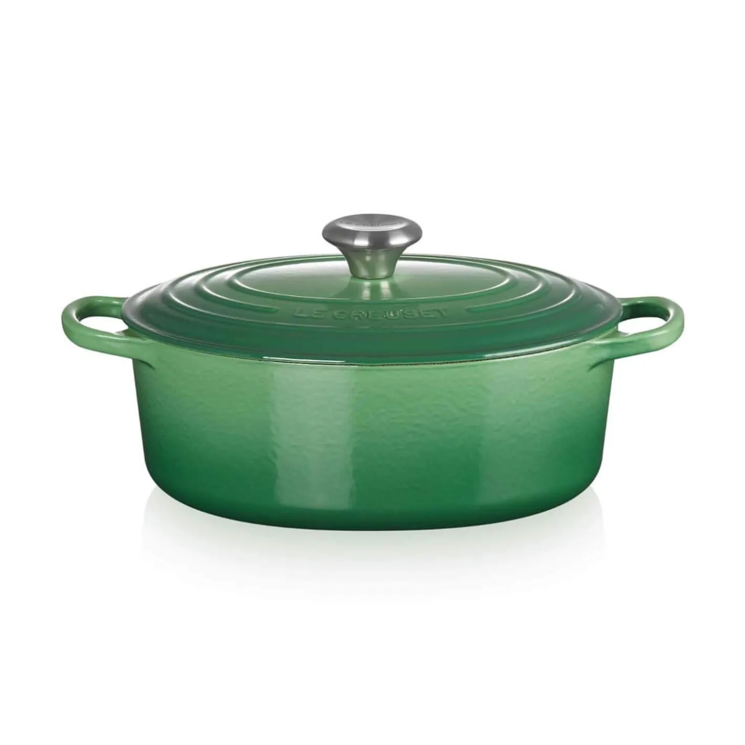 This on-trend Signature cast iron 29cm oval casserole by Le Creuset forms part of their nature-inspired Bamboo collection. A versatile and timeless choice this dish can be applied to a variety of recipes including stews, roasts, bread making, soups and much more. Each cast iron piece has been handcrafted in France by skilled craftsmen with an expert enamel finish that is easy to clean and does not absorb stains or odours. These dishes can be used on all hob types including induction and feature an ergonomic stainless steel knob with the Le Creuset logo visible on the top. Other shapes, sizes and colours are also available.