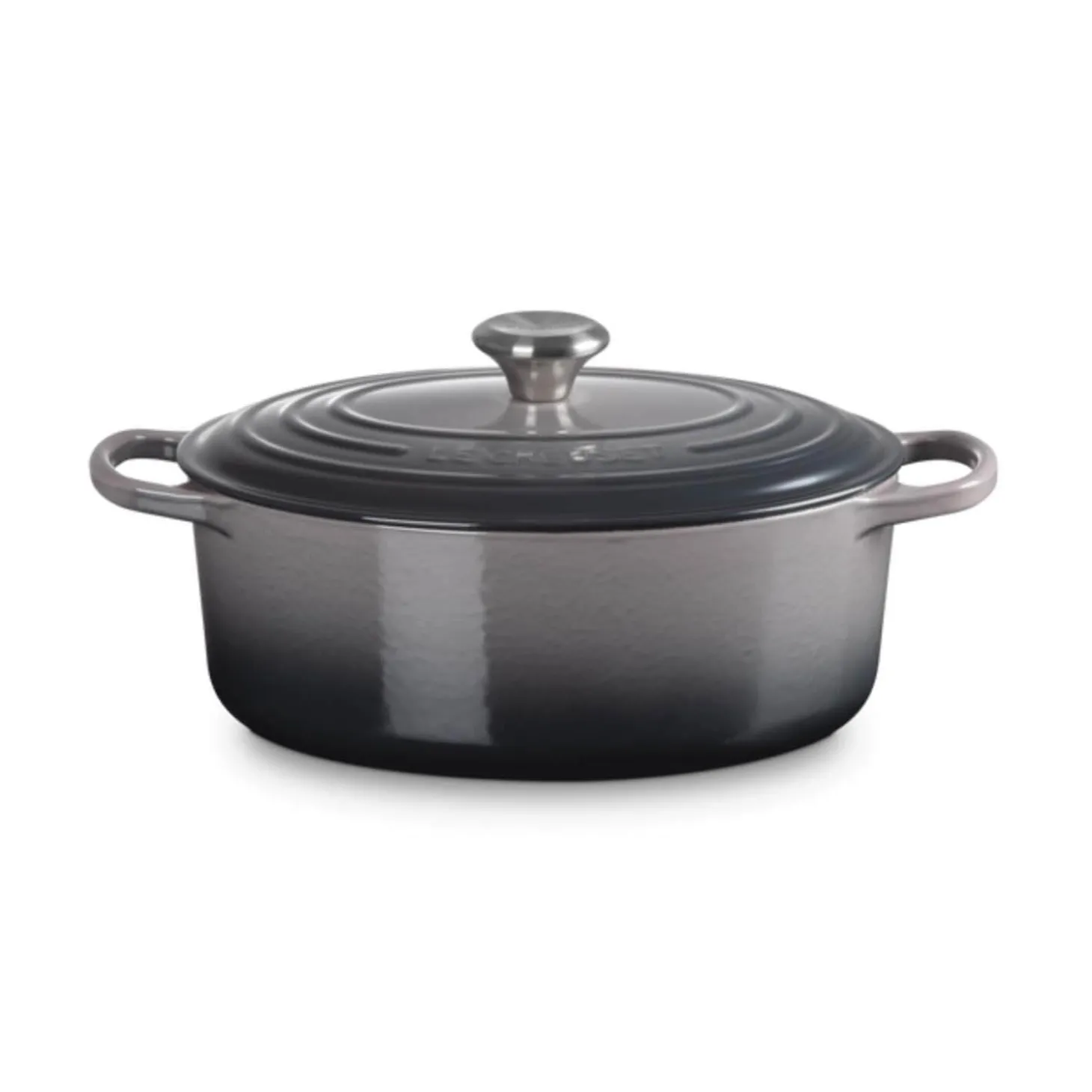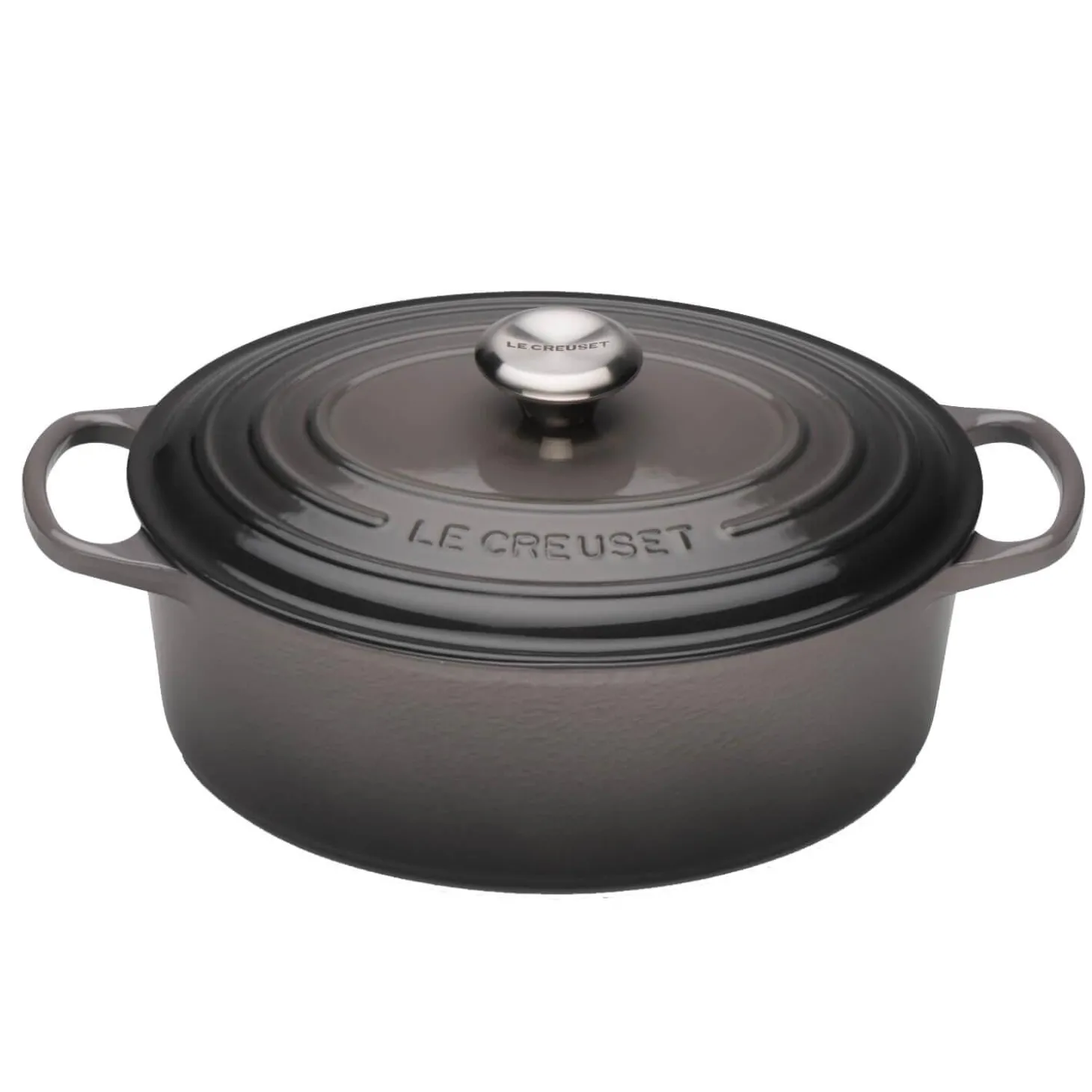 This on-trend Signature cast iron 29cm oval casserole by Le Creuset forms part of their Flint colourway collection. A versatile and timeless choice this dish can be applied to a variety of recipes including stews, roasts, bread making, soups and much more. Each cast iron piece has been handcrafted in France by skilled craftsmen with an expert enamel finish that is easy to clean and does not absorb stains or odours. These dishes can be used on all hob types including induction and feature an ergonomic stainless steel knob with the Le Creuset logo visible on the top. Other shapes, sizes and colours are also available.