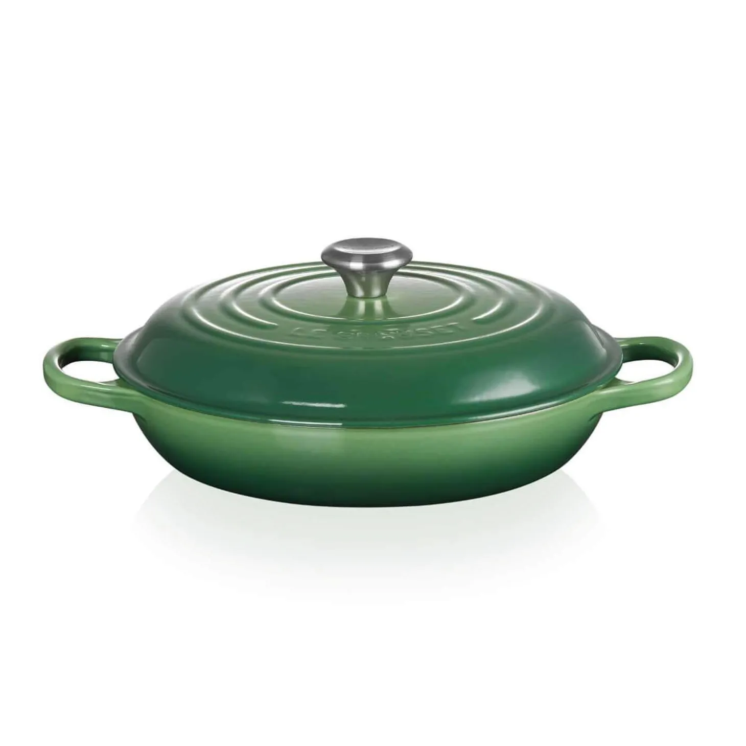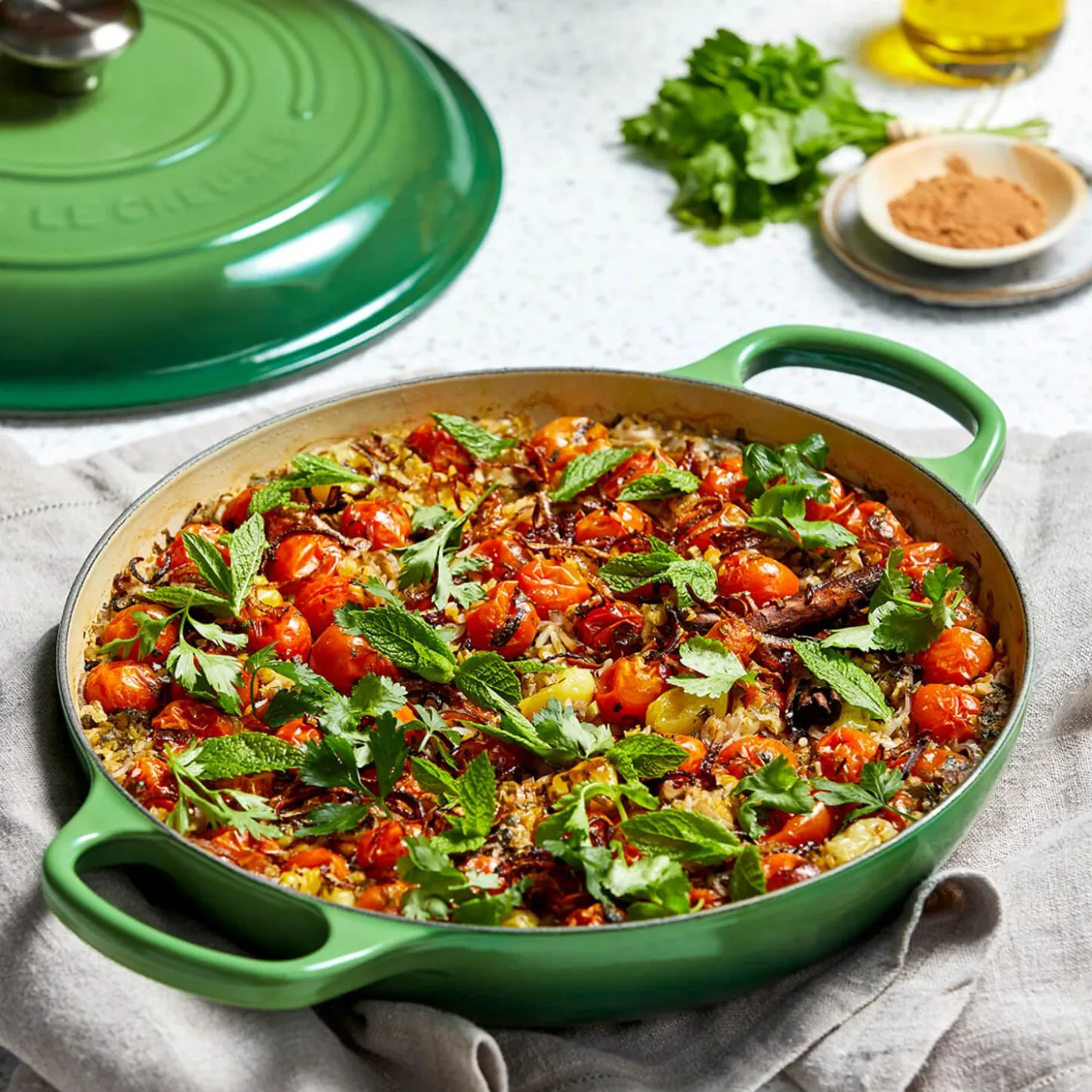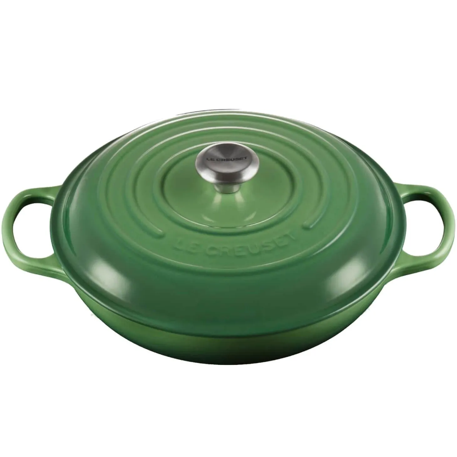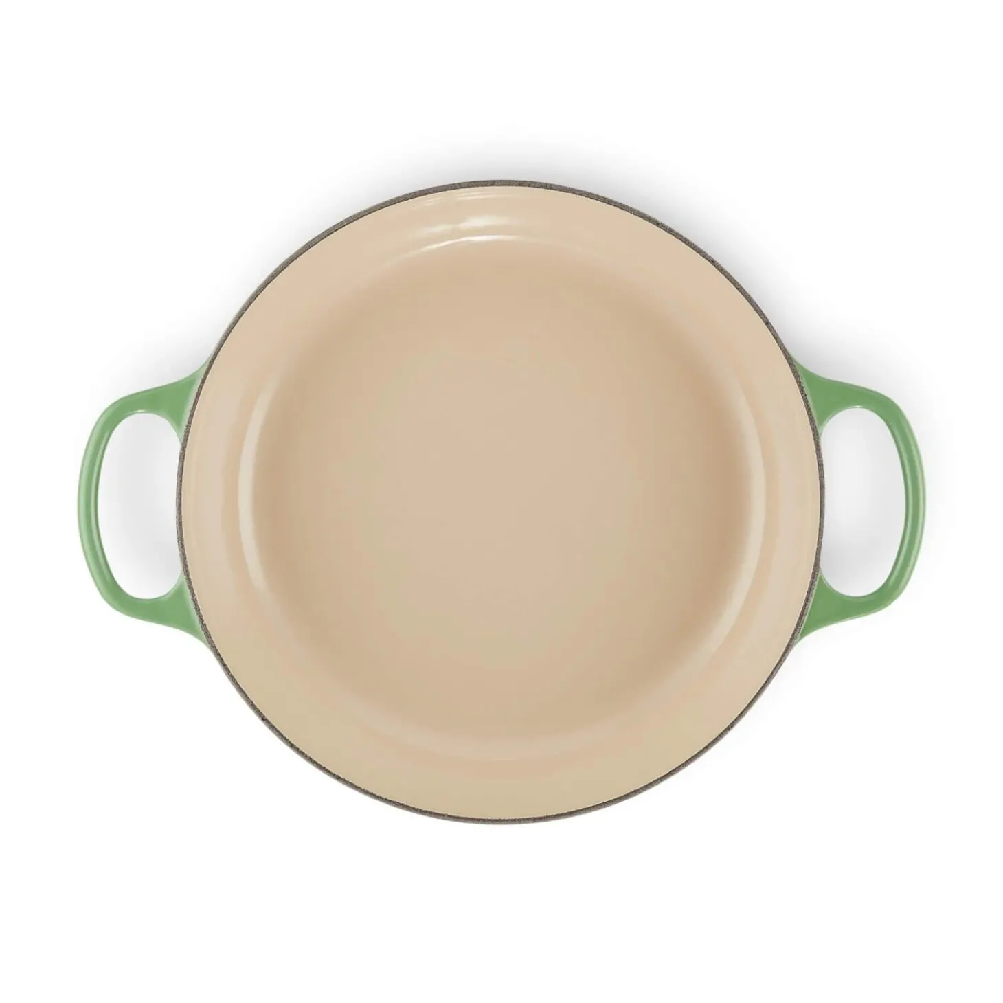 This on-trend Signature cast iron 30cm round shallow casserole by Le Creuset forms part of their nature-inspired Bamboo collection. A versatile and timeless choice this dish can be applied to a variety of recipes including stews, roasts, bread making, soups and much more. Each cast iron piece has been handcrafted in France by skilled craftsmen with an expert enamel finish that is easy to clean and does not absorb stains or odours. These dishes can be used on all hob types including induction and feature an ergonomic stainless steel knob with the Le Creuset logo visible on the top. Other shapes, sizes and colours are also available.
