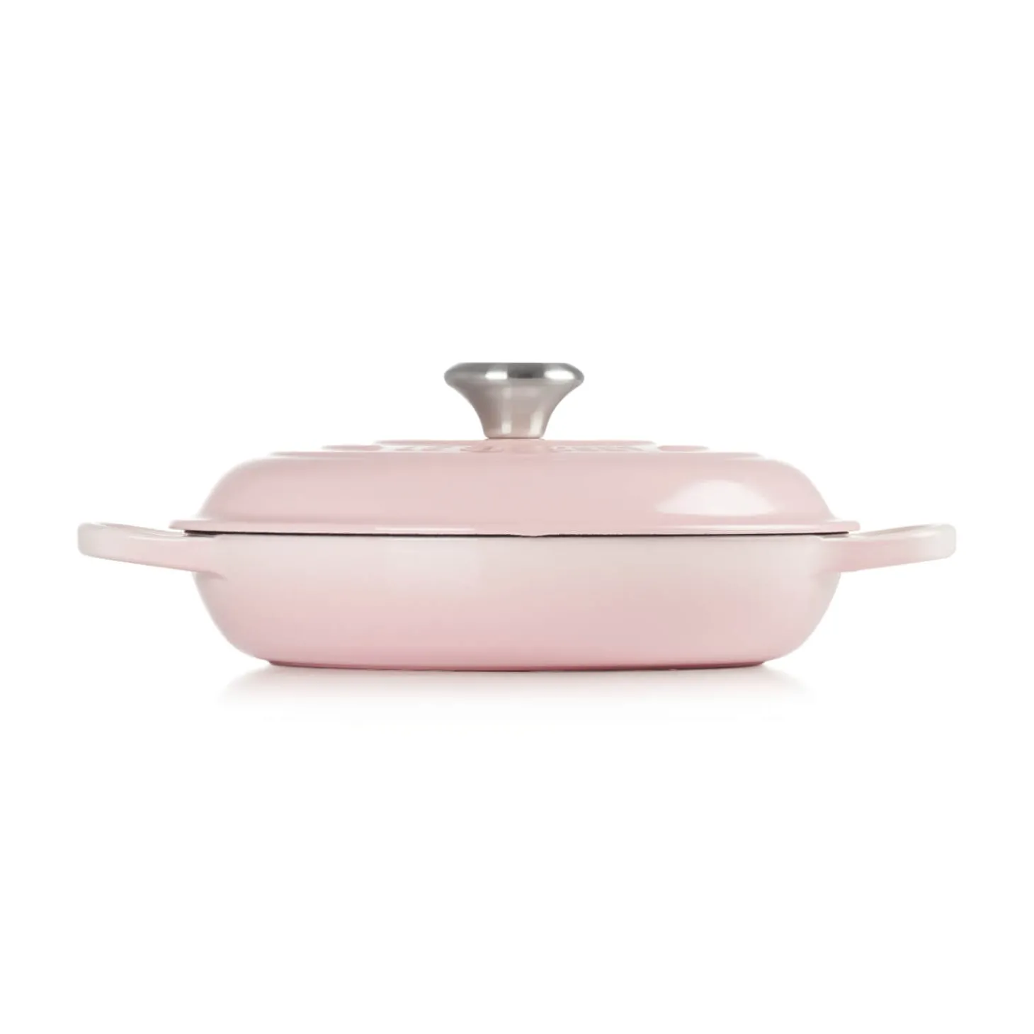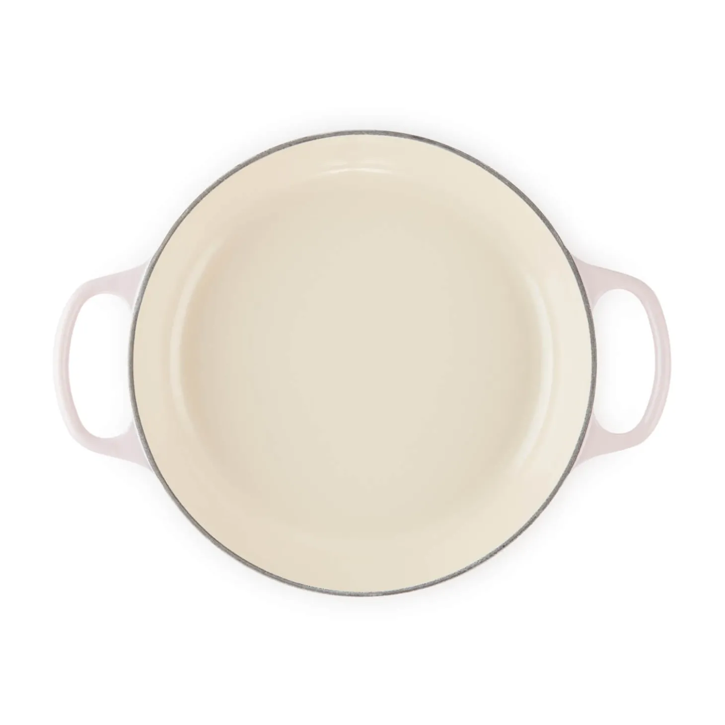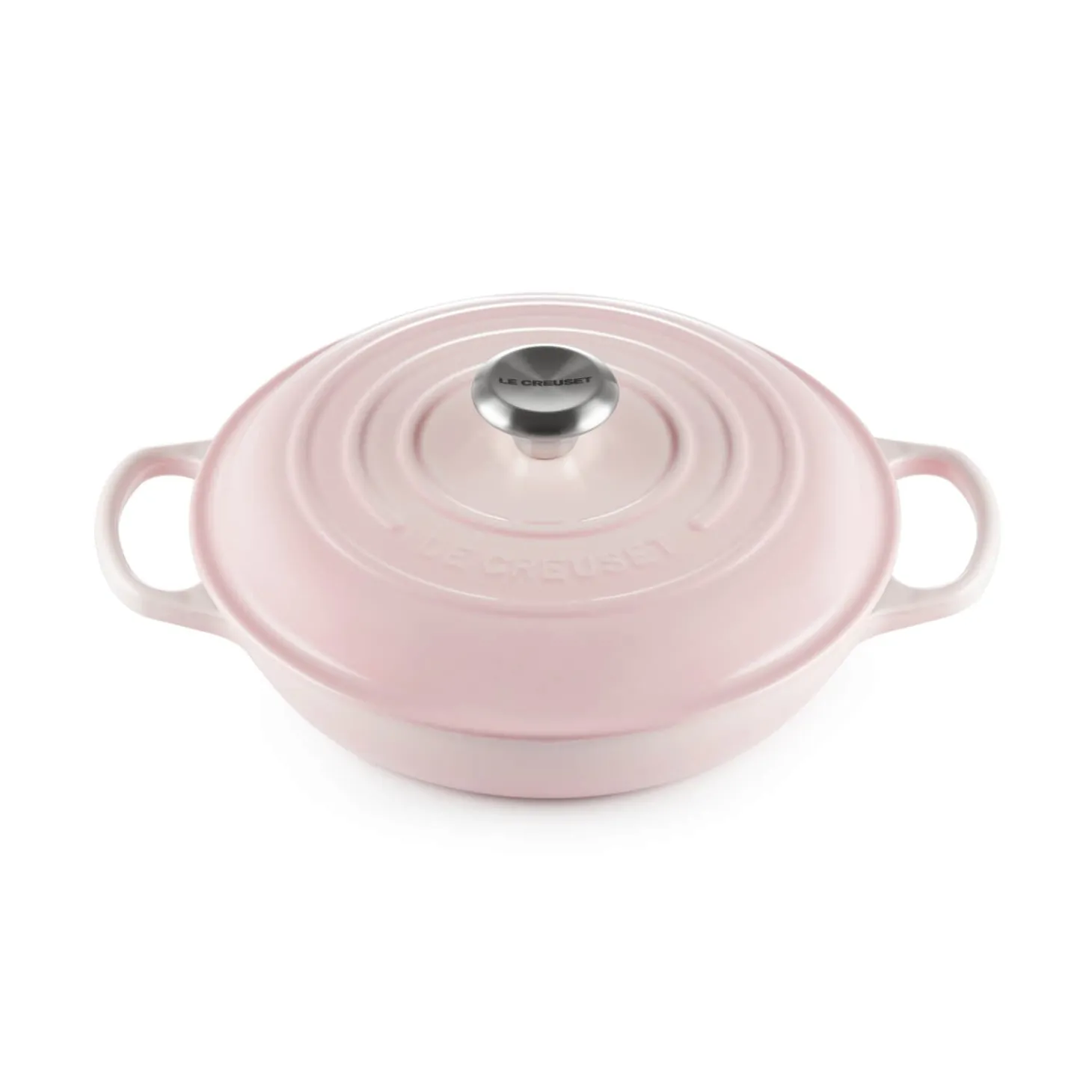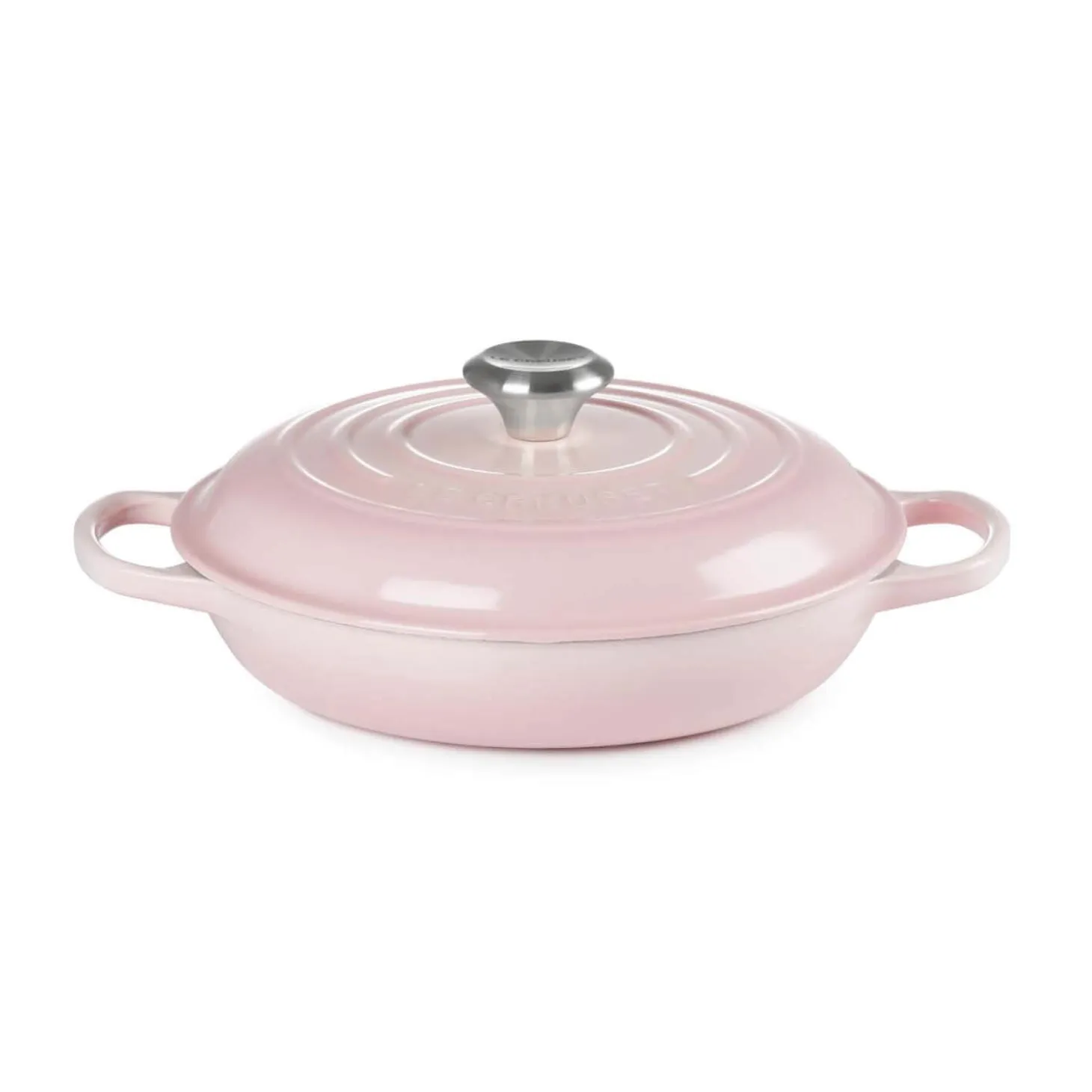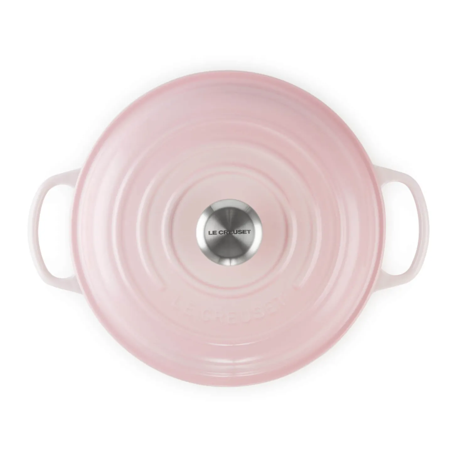 This on-trend Signature cast iron 30cm shallow round casserole by Le Creuset forms part of their Shell Pink colourway collection. A versatile and timeless choice this dish can be applied to a variety of recipes including stews, roasts, bread making, soups and much more. Each cast iron piece has been handcrafted in France by skilled craftsmen with an expert enamel finish that is easy to clean and does not absorb stains or odours. These dishes can be used on all hob types including induction and feature an ergonomic stainless steel knob with the Le Creuset logo visible on the top. Other shapes, sizes and colours are also available.