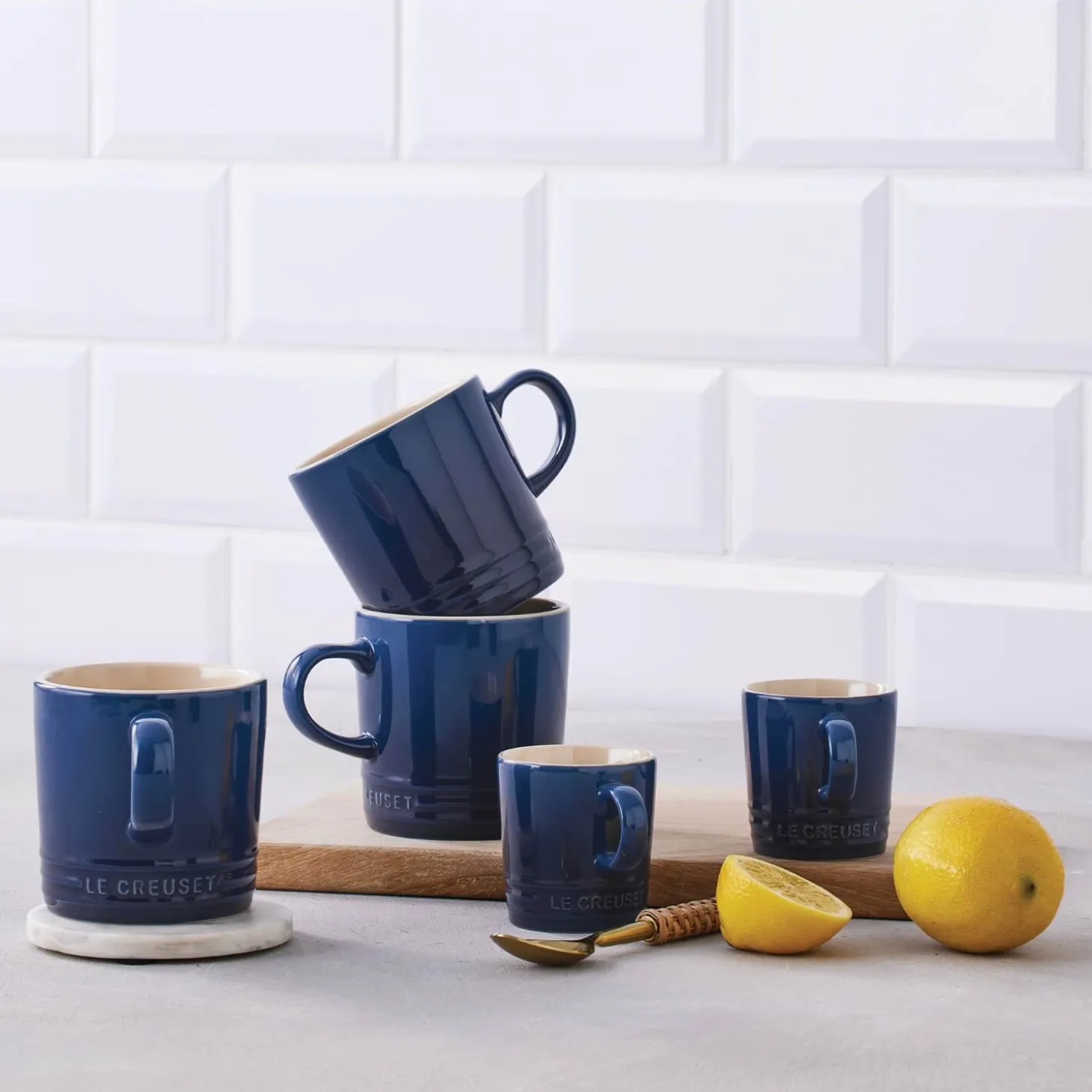 The Le Creuset Stoneware Mug in Ink, is perfect for serving tea, coffee and other hot drinks. Created from specialist clays and fired at high temperatures to ensure unmatched quality and durability. Each item in the stoneware collection has an easy to clean scratch-resistant enamel coating. With a capacity of 350ml and an easy to grip handle, this mug is ideal for frothy coffees, soups and desserts in the comfort of your own home.