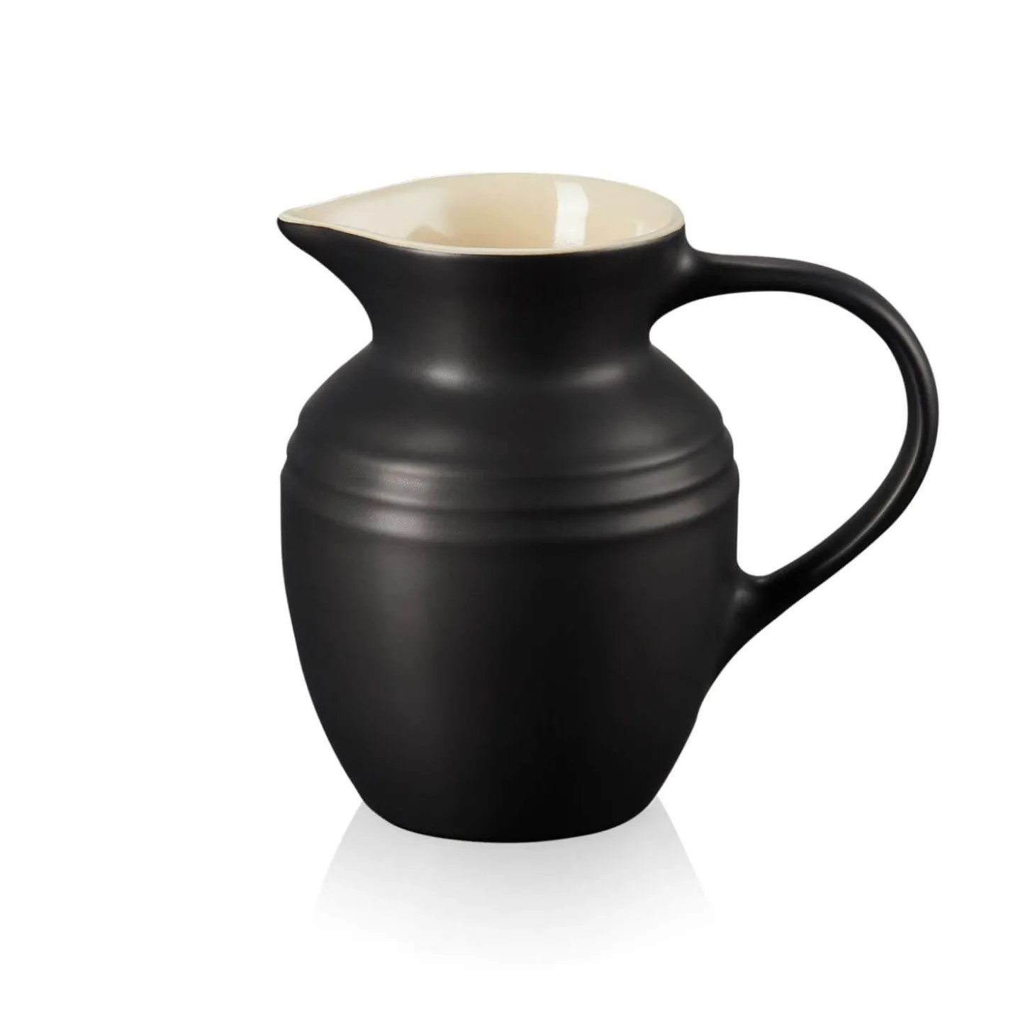This beautiful Le Creuset Satin Black Breakfast Jug with the iconic Le Creuset three-ring design is made from strong durable stoneware which will keep the contents either hot or cold longer due to the density of the stoneware. This Breakfast Jug has an oversized handle for easy lifting and a drip-free spout.