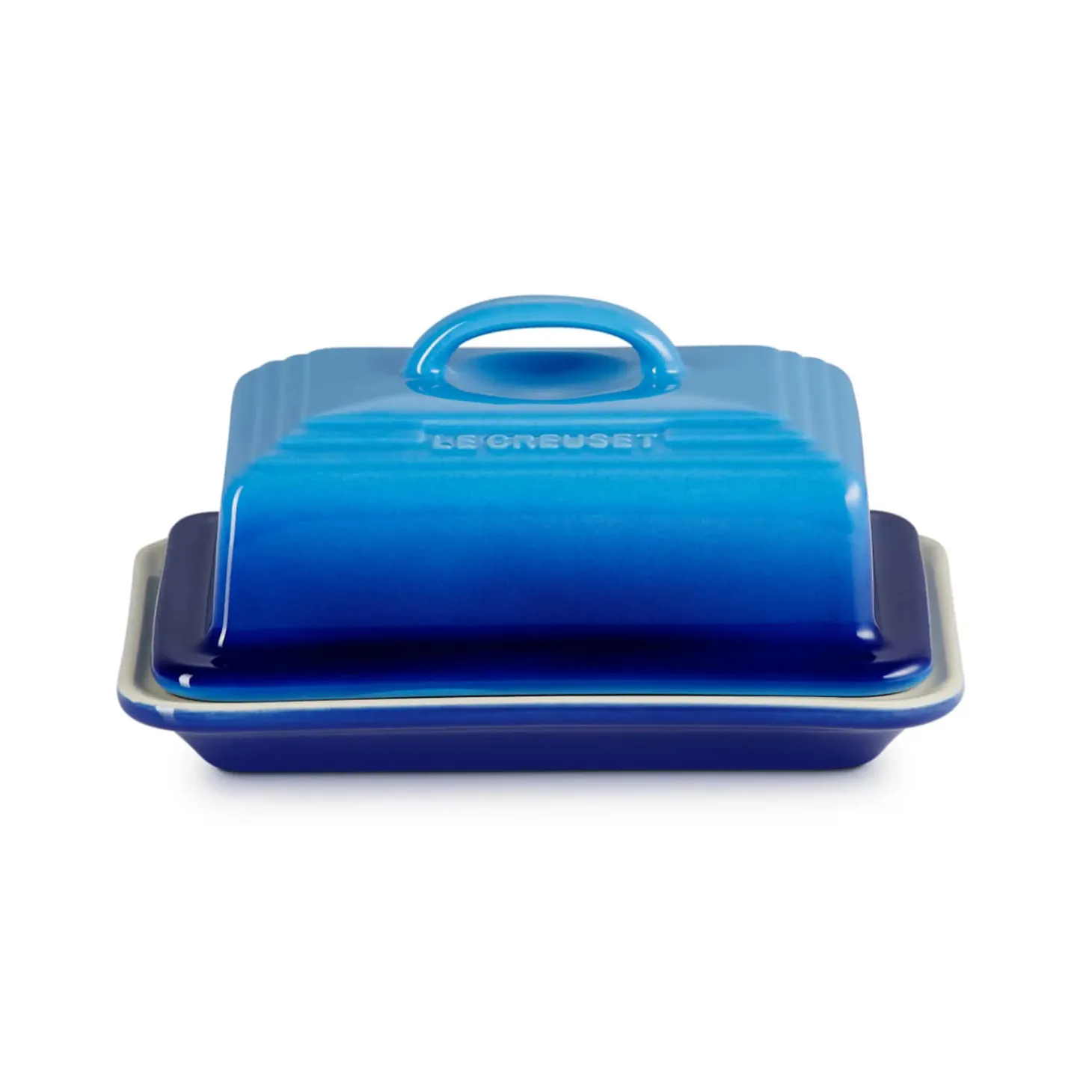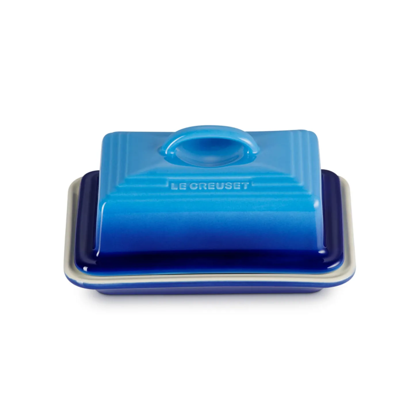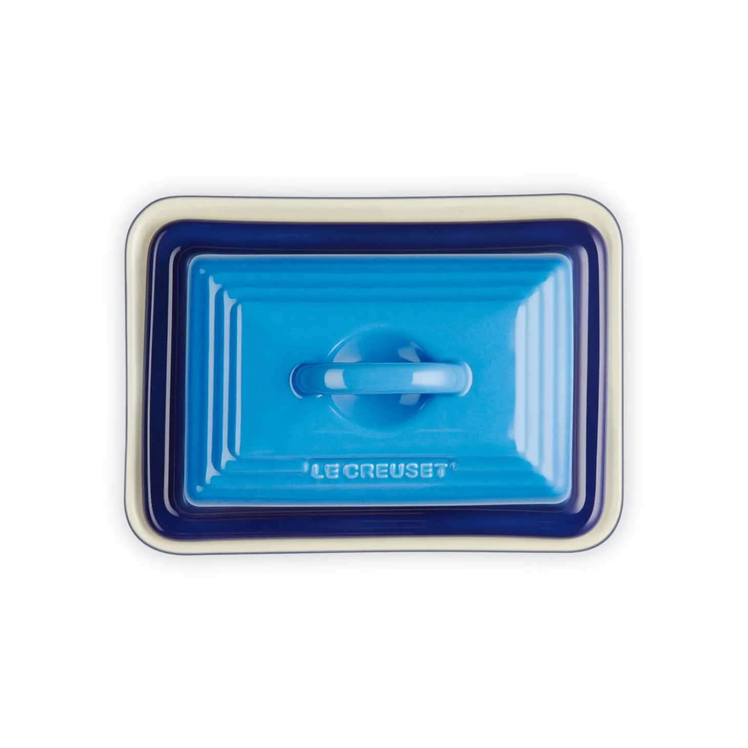 The Le Creuset Stoneware Butter Dish in Azure is crafted in two separate pieces from quality stoneware and will comfortably hold a 250g block of butter. It can be used in or out of the fridge, depending on how you like to store your butter and can be put in the microwave to soften the contents if required.