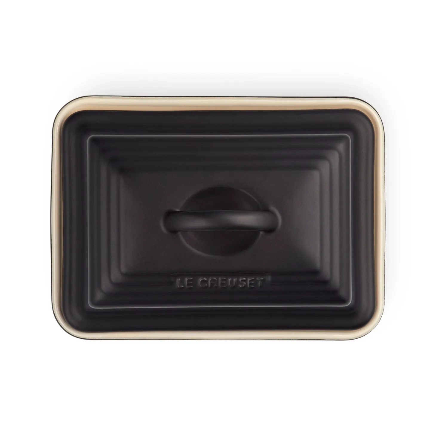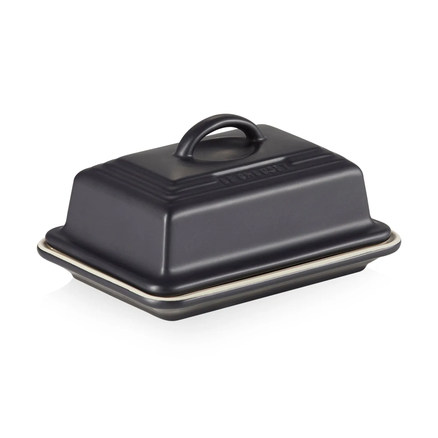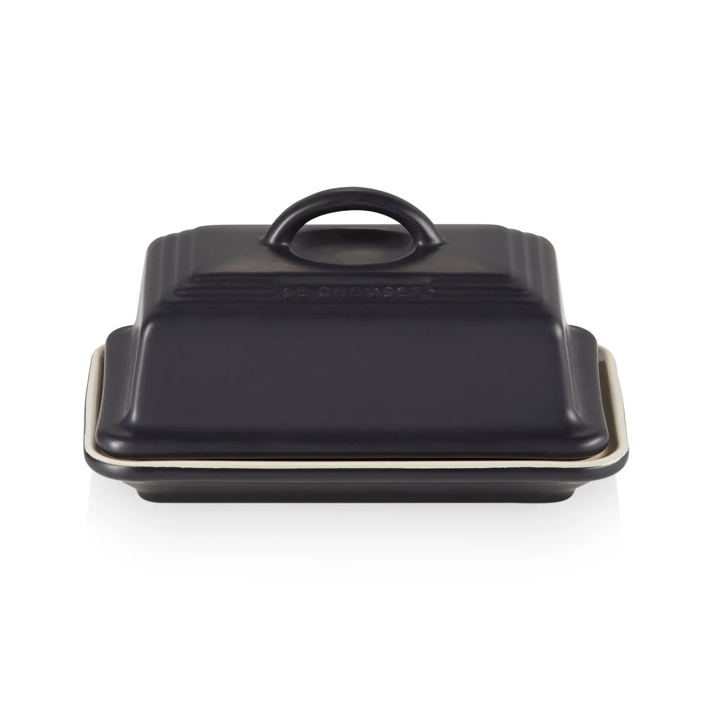 The Le Creuset Stoneware Butter Dish in Satin Black is crafted in two separate pieces from quality stoneware and will comfortably hold a 250g block of butter. It can be used in or out of the fridge, depending on how you like to store your butter and can be put in the microwave to soften the contents if required.