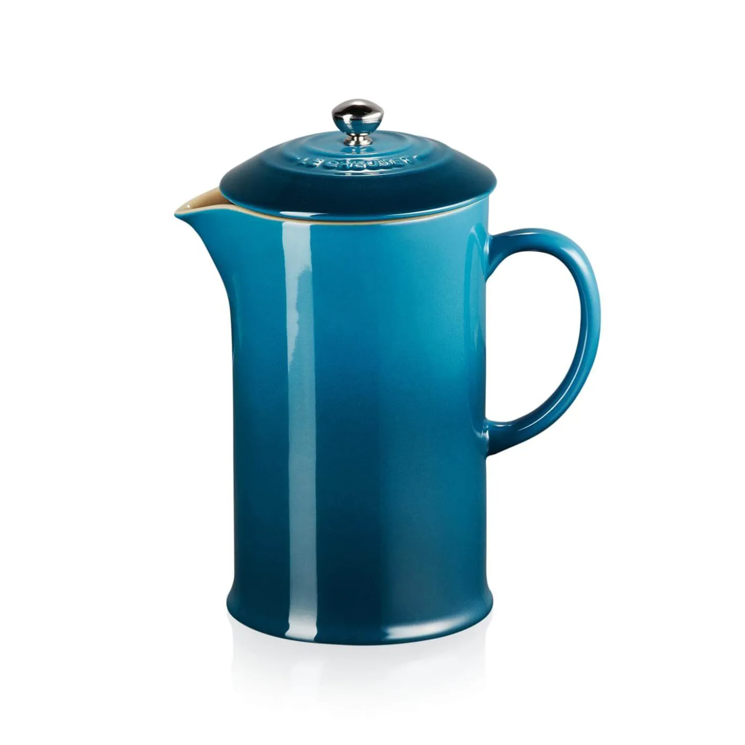 Perfect for creating a great cup of coffee is this generous 1-litre capacity Cafetiere in Deep Teal, which forms part of the stoneware collection by Le Creuset. Each cafetiere has been created using high-quality clays that are fired at high temperatures providing excellent thermal resistance and strength. The lid of the pot has the iconic three-ring design with an embossed logo and an anti-drip spout to avoid spillages.