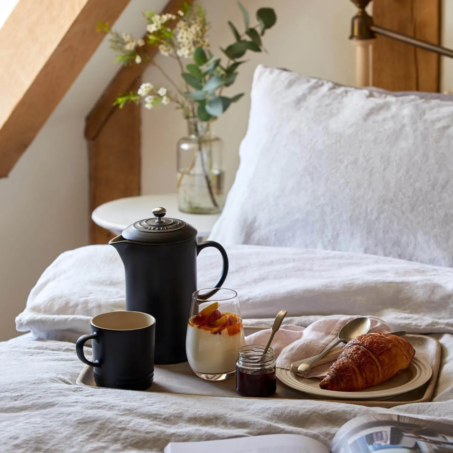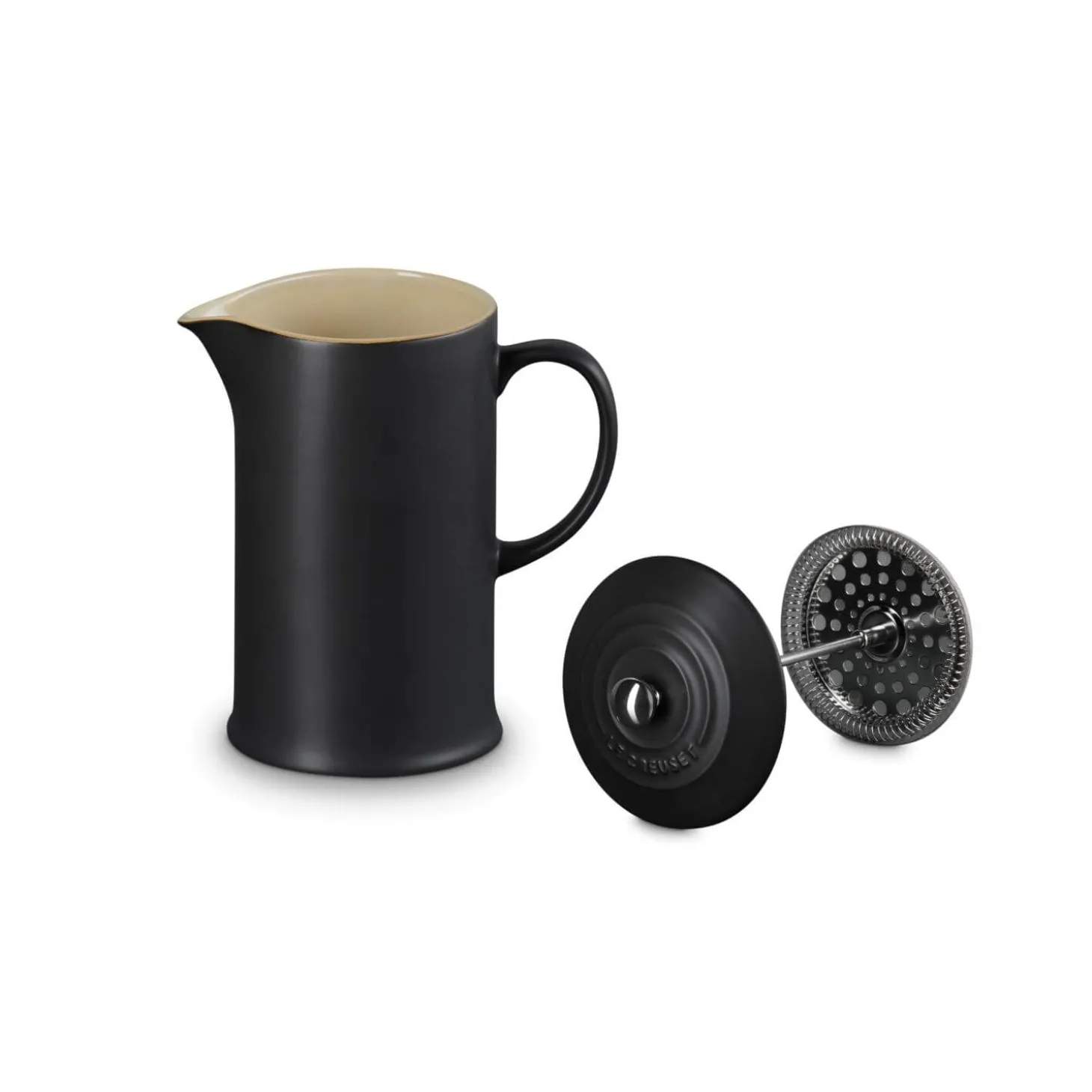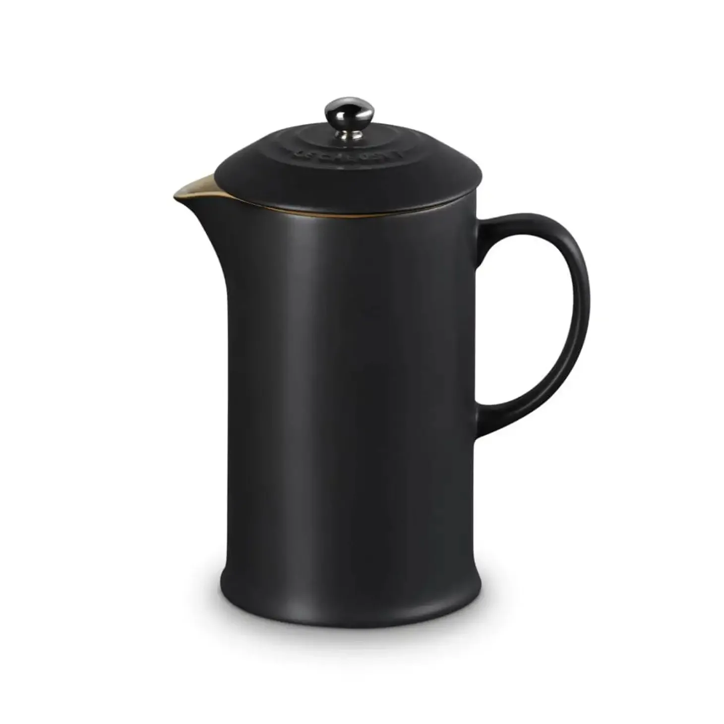 Perfect for creating a great cup of coffee is this generous 1-litre capacity Cafetiere in Satin Black, which forms part of the stoneware collection by Le Creuset. Each cafetiere has been created using high-quality clays that are fired at high temperatures providing excellent thermal resistance and strength. The lid of the pot has the iconic three-ring design with an embossed logo and an anti-drip spout to avoid spillages.