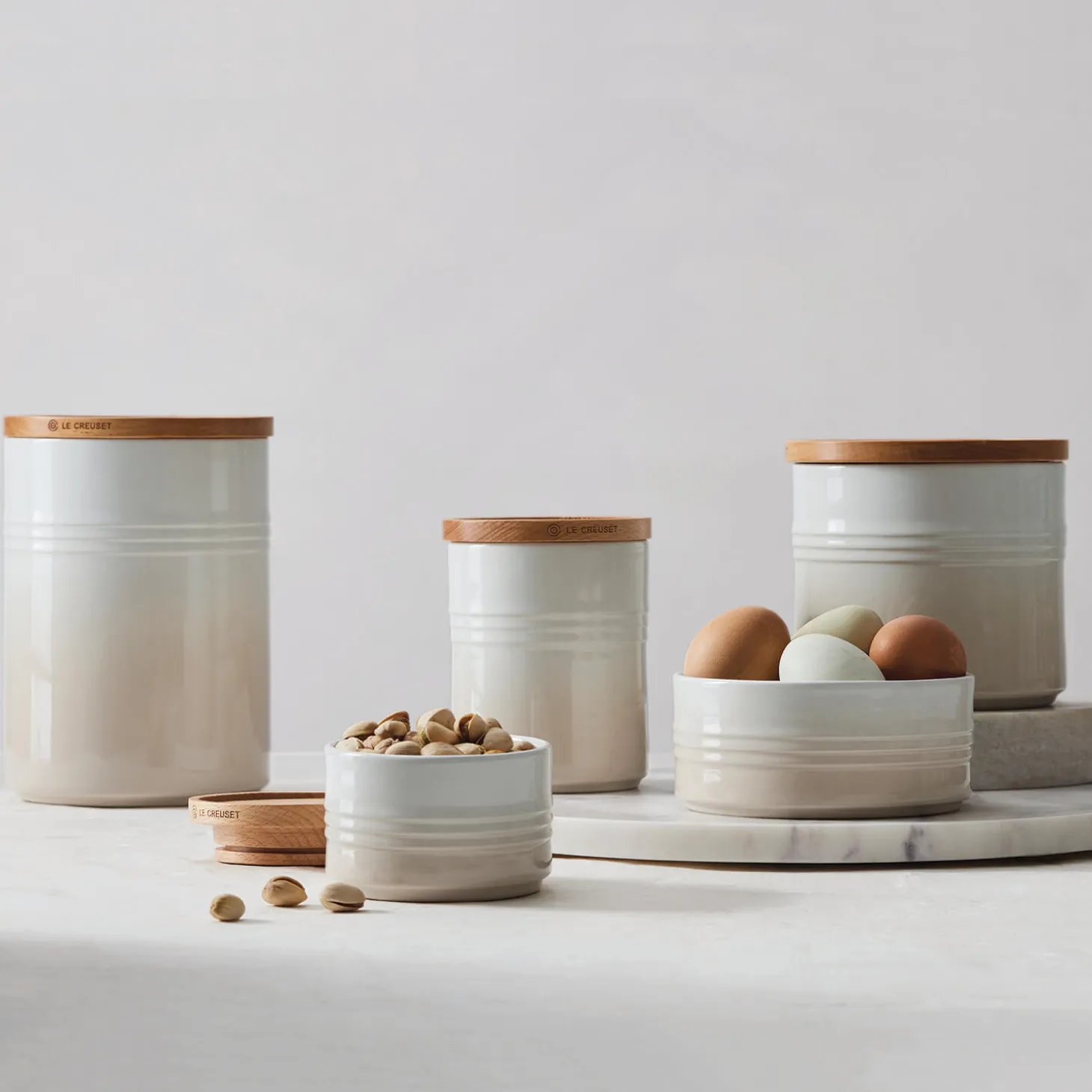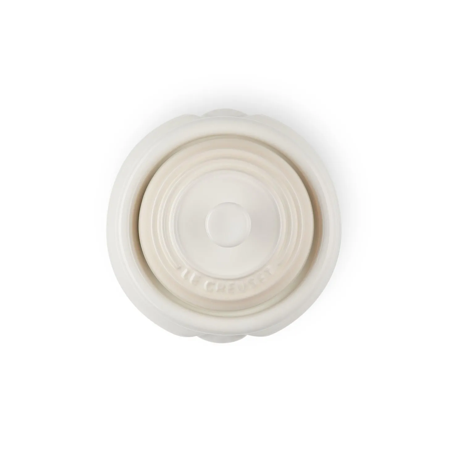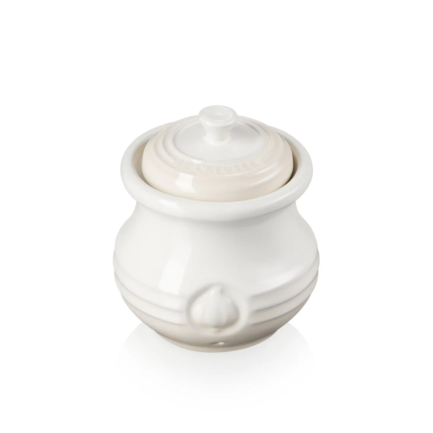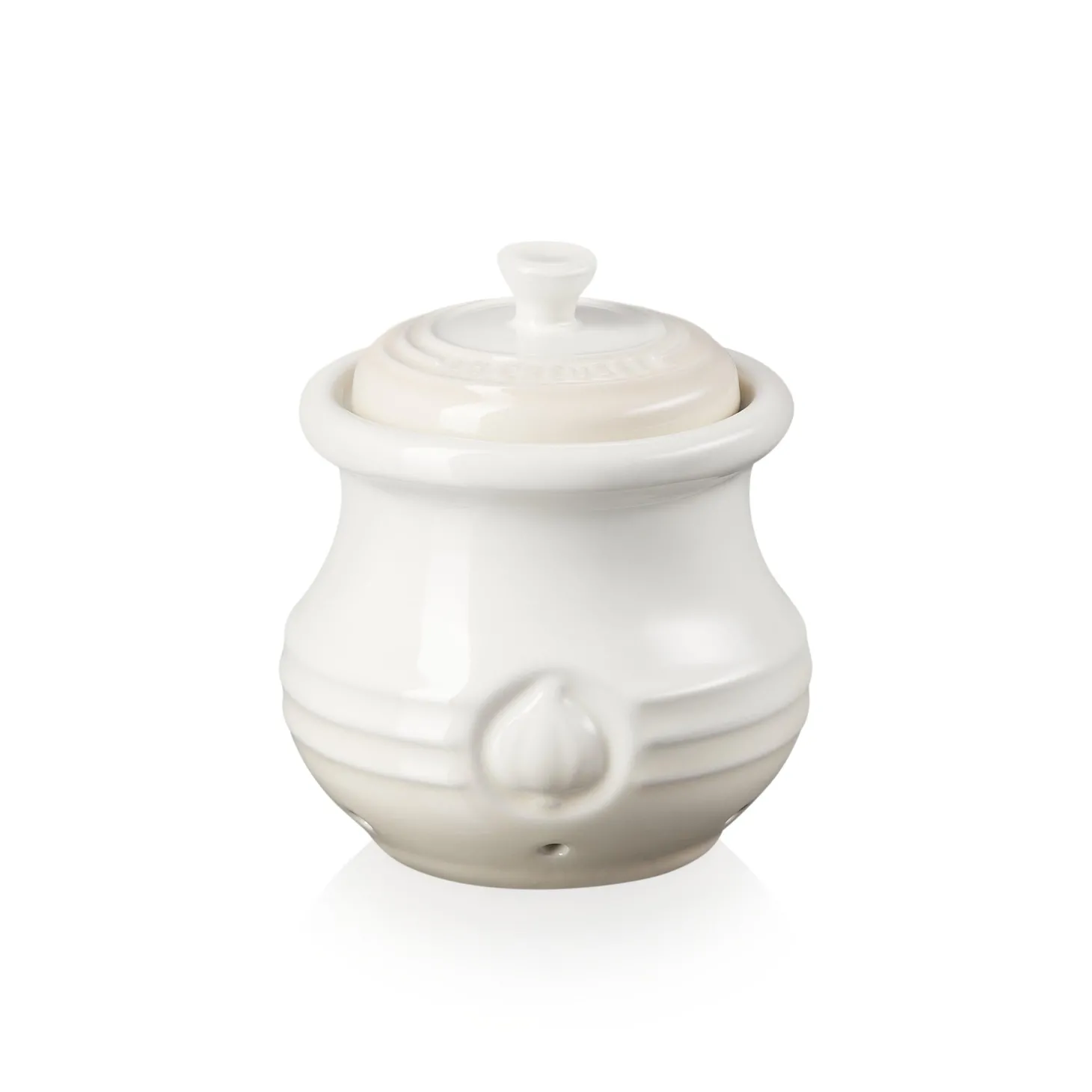 The Le Creuset Stoneware Garlic Keeper in Meringue is the perfect way to store your garlic cloves and heads. The lid is very secure to keep the light out and the odour and flavour in, it has vents around the base to ensure that the air inside the Garlic Keeper stays dry. Made from enamelled strong durable stoneware which is easy to clean and chip and scratch resistant and features the iconic Le Creuset three ring design. A perfect addition for all kitchens.