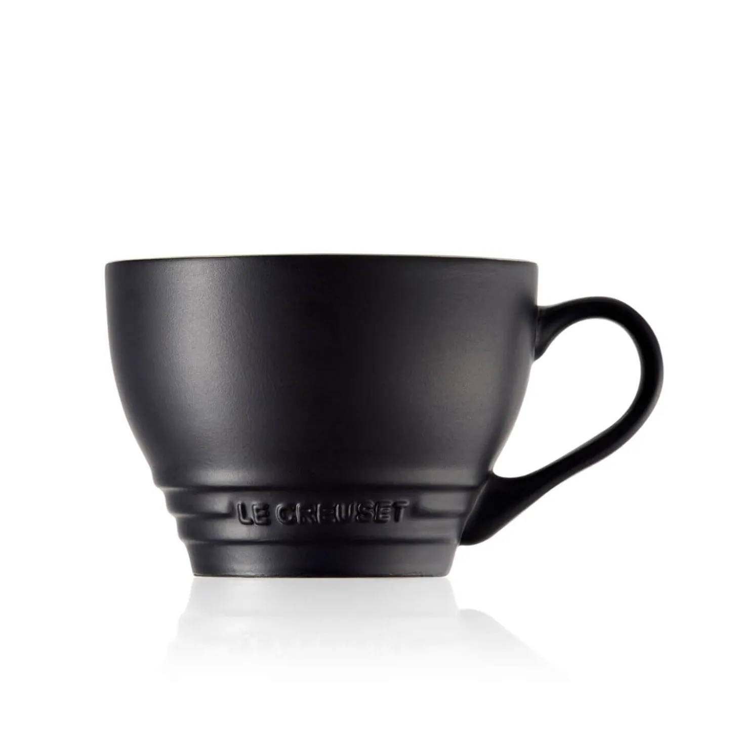 The Le Creuset Stoneware Grand Mug in Satin Black is perfect for serving tea, coffee and other hot drinks. Created from specialist clays and fired at high temperatures to ensure unmatched quality and durability. Each item in the stoneware collection has an easy to clean scratch-resistant enamel coating. With a capacity of 400ml, this large mug is ideal for frothy coffees, soups and desserts in the comfort of your own home.