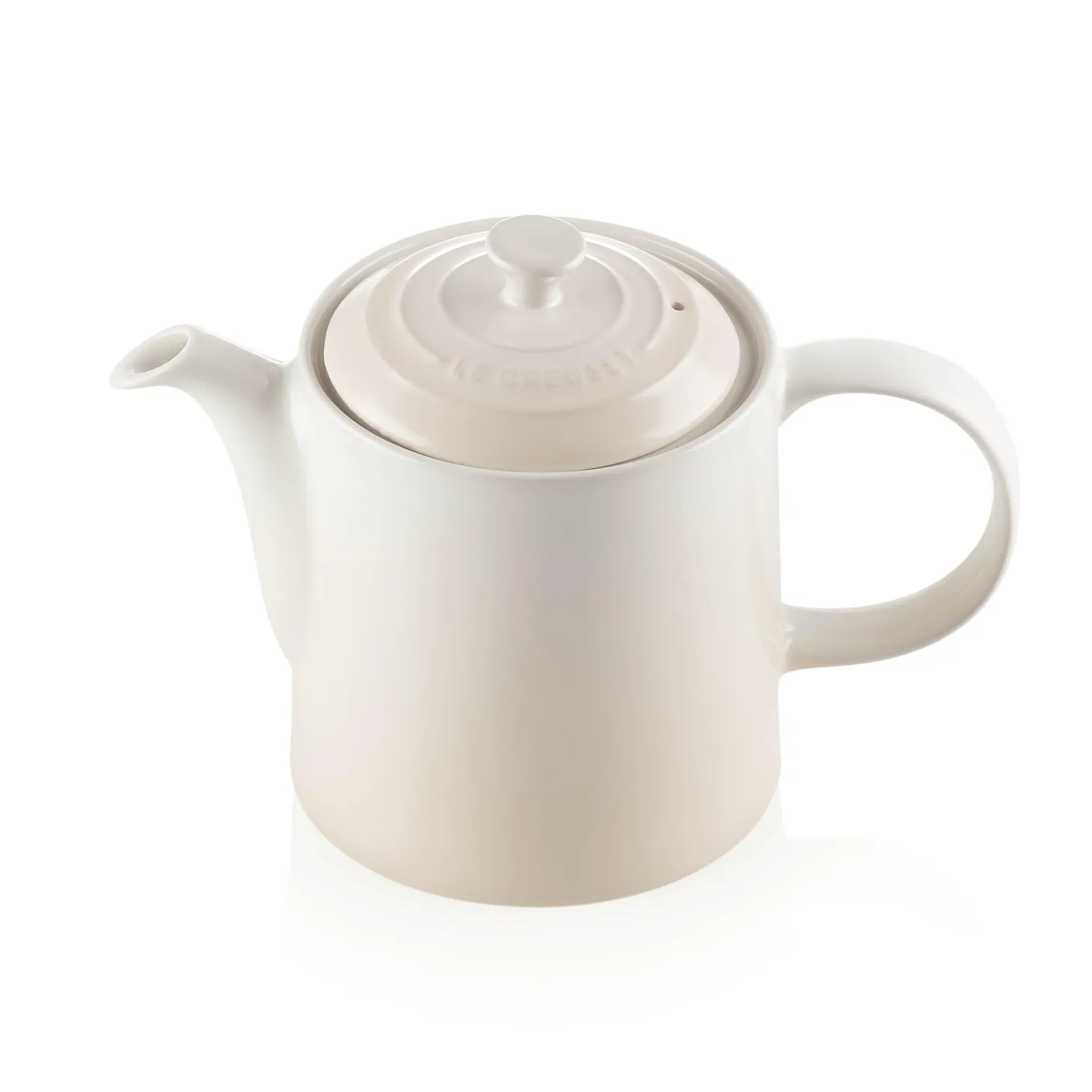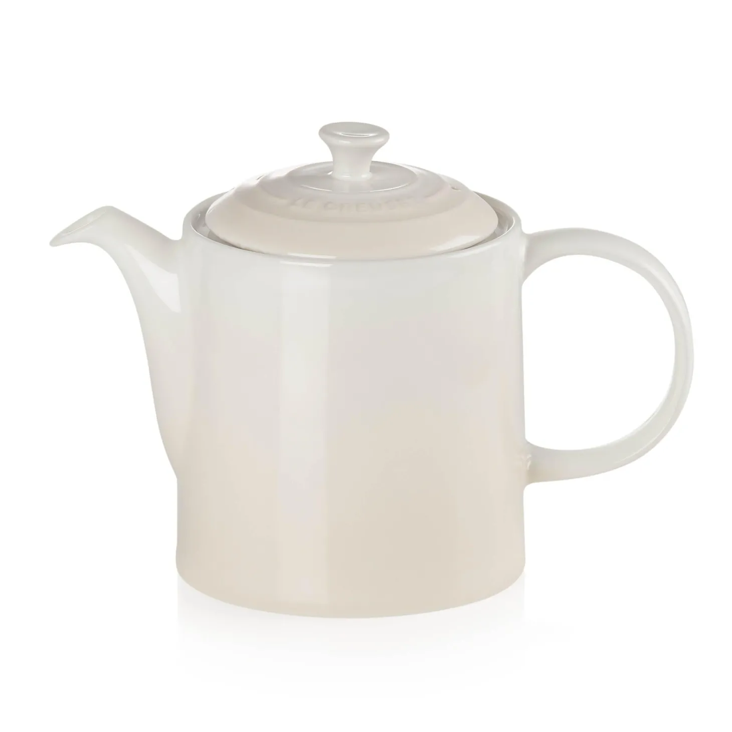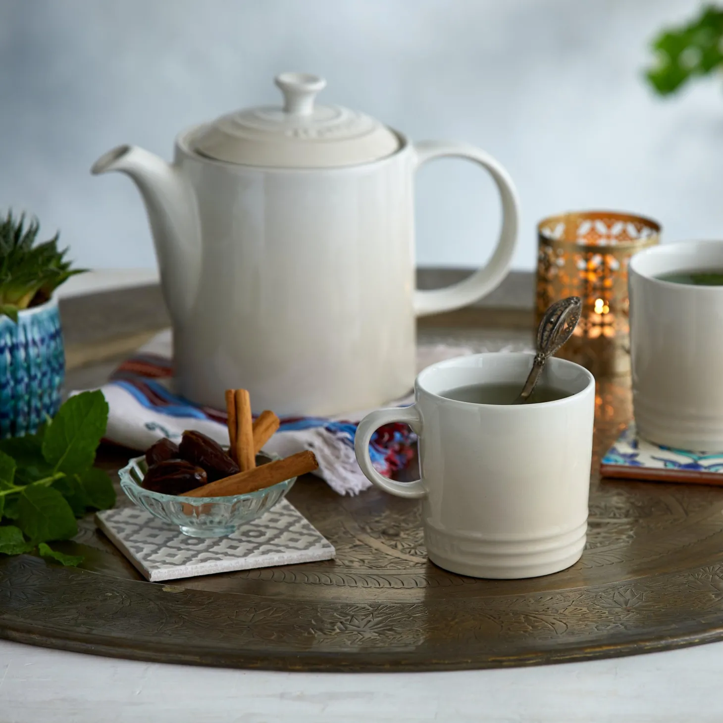 Perfect for enjoying cups of tea this 4 cup teapot in Meringue forms part of the Grand Teapot collection by Le Creuset. Each teapot has been created using high-quality clays that are fired at high temperatures providing excellent thermal resistance and strength. The lid of the pot has an iconic three-ring design with an embossed logo plus a steam hole, locking lid and an anti-drip spout to avoid spillages.