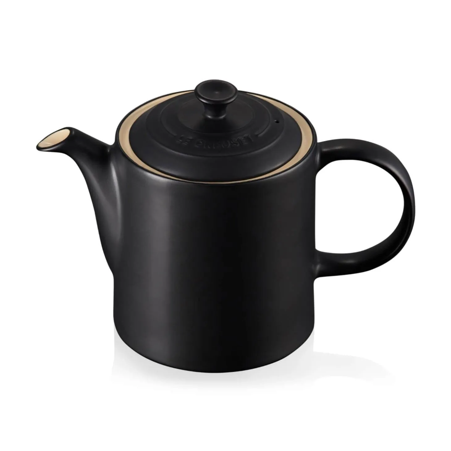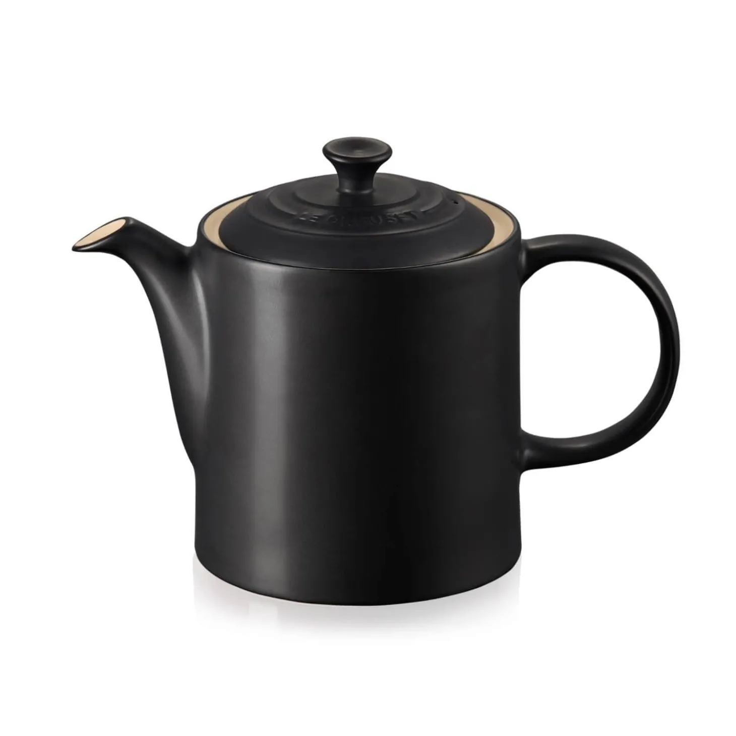 Perfect for enjoying cups of tea this 4 cup teapot in Satin Black forms part of the Grand Teapot collection by Le Creuset. Each teapot has been created using high-quality clays that are fired at high temperatures providing excellent thermal resistance and strength. The lid of the pot has an iconic three-ring design with an embossed logo plus a steam hole, locking lid and an anti-drip spout to avoid spillages.