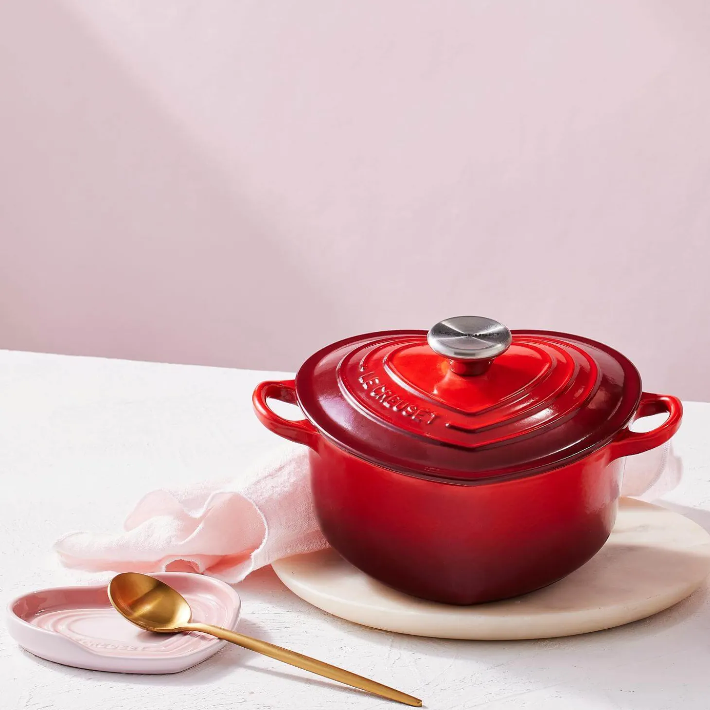 Part of the Le Creuset Stoneware Heart Collection, this modern spoon rest in Shell Pink is ideal for catching drips whilst cooking. Created from specialist clays and fired at high temperatures to ensure unmatched quality and durability whilst also featuring a protective glaze to protect against chips and scratches. With the iconic 3-ring design, this item will cradle even the largest of utensils.Â