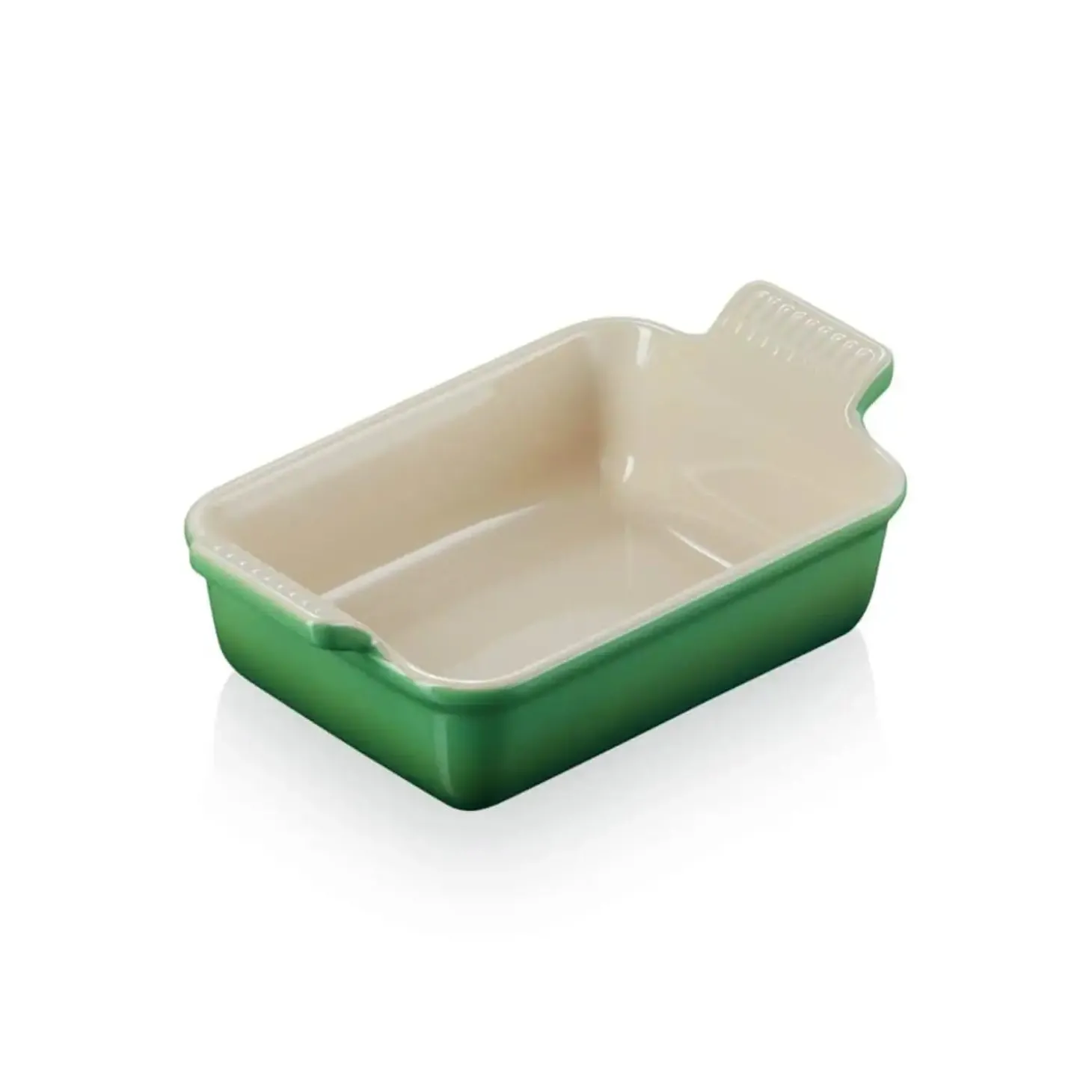 This 19cm rectangular stoneware oven dish in Bamboo Green forms part of the Le Creuset Stoneware Heritage collection. Each item in the range has been created using durable, thermal resistant stoneware that has been crafted by skilled artisans to ensure the utmost quality and to ensure the even distribution of heat which is perfect when creating pasta bakes, roasts, crumbles and other recipes. These dishes also have an enamel coating to prevent chips, stains and odours. This collection perfectly complements other items in the range.