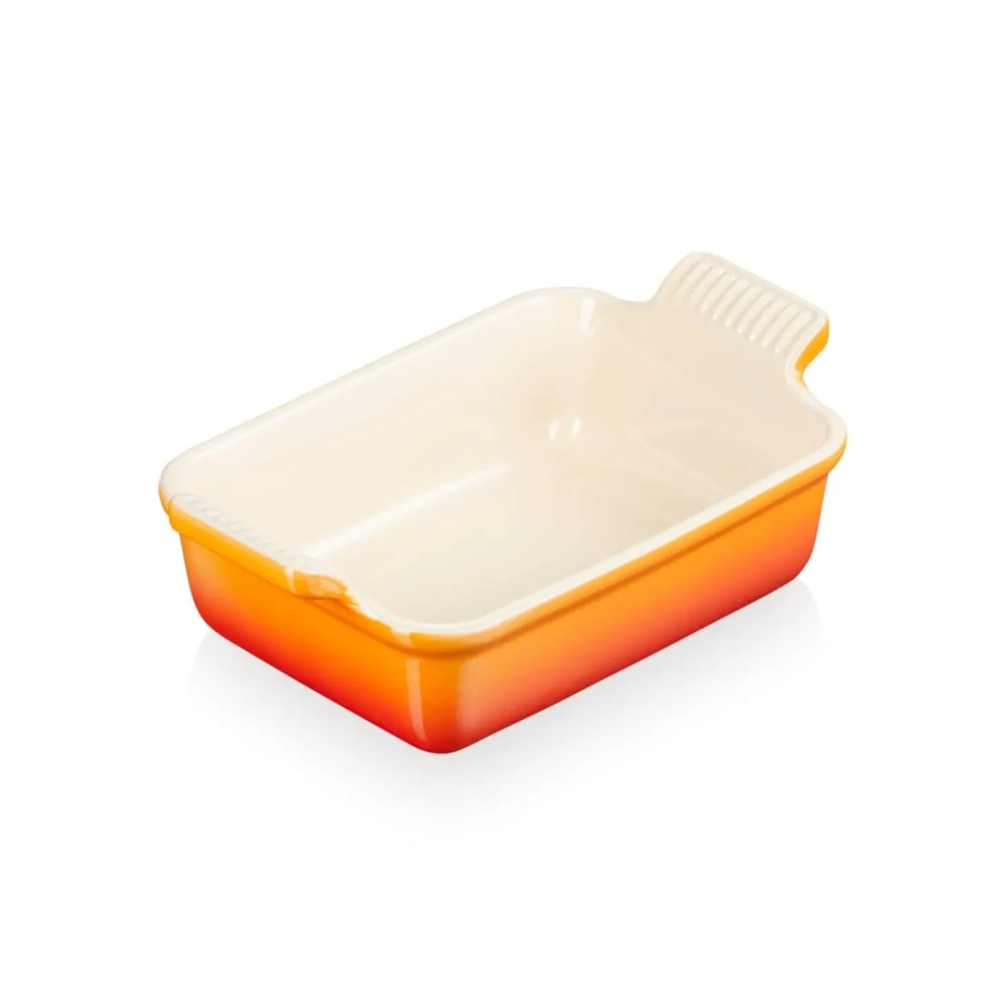 The Stoneware Heritage Small rectangular deep oven dish by Le Creuset is a stylish and versatile kitchen edition ideal for everyday cooking. Created from specialist clays and fired at high temperatures to ensure unmatched quality and durability. Each dish in the Heritage collection has easy grip scalloped handles, deep walls and an easy to clean scratch-resistant enamel coating. Available in a Volcanic finish.