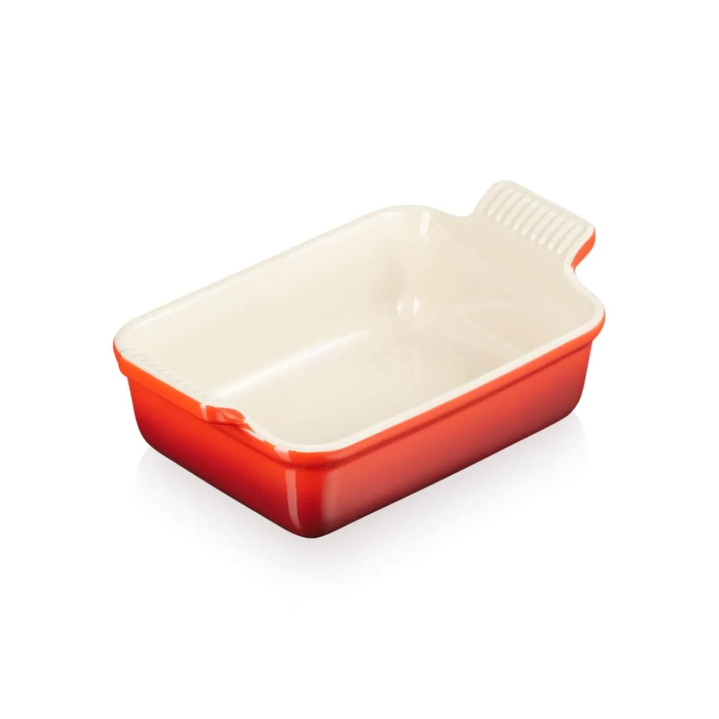 The Stoneware Heritage Small rectangular deep oven dish by Le Creuset is a stylish and versatile kitchen edition ideal for everyday cooking. Created from specialist clays and fired at high temperatures to ensure unmatched quality and durability. Each dish in the Heritage collection has easy grip scalloped handles, deep walls and an easy to clean scratch-resistant enamel coating. Available in a Cerise finish.