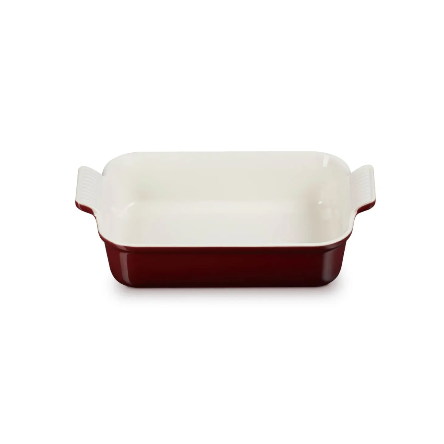 Le Creuset presents the Stoneware Heritage 26cm rectangular deep oven dish in Garnet, indulge in the stunning and luxurious shade of deep red jewels and experience a sense of sophistication and elegance like never before. A stylish and versatile kitchen edition ideal for everyday cooking. Created from specialist clays and fired at high temperatures to ensure unmatched quality and durability. Each dish in the Heritage collection has easy grip scalloped handles, deep walls and an easy to clean scratch-resistant enamel coating.