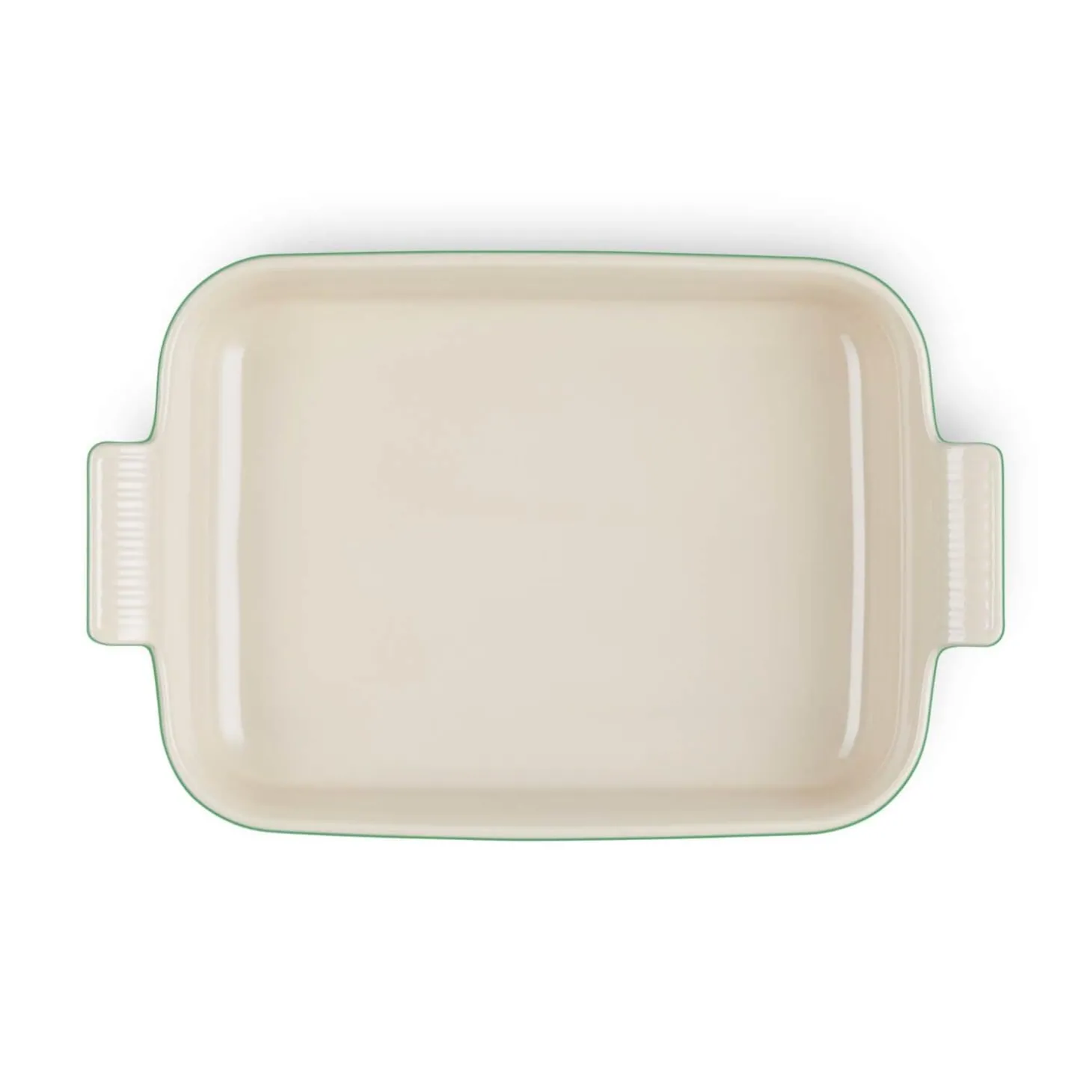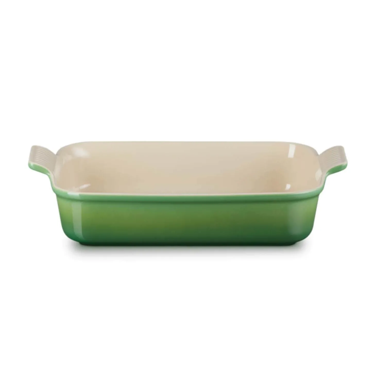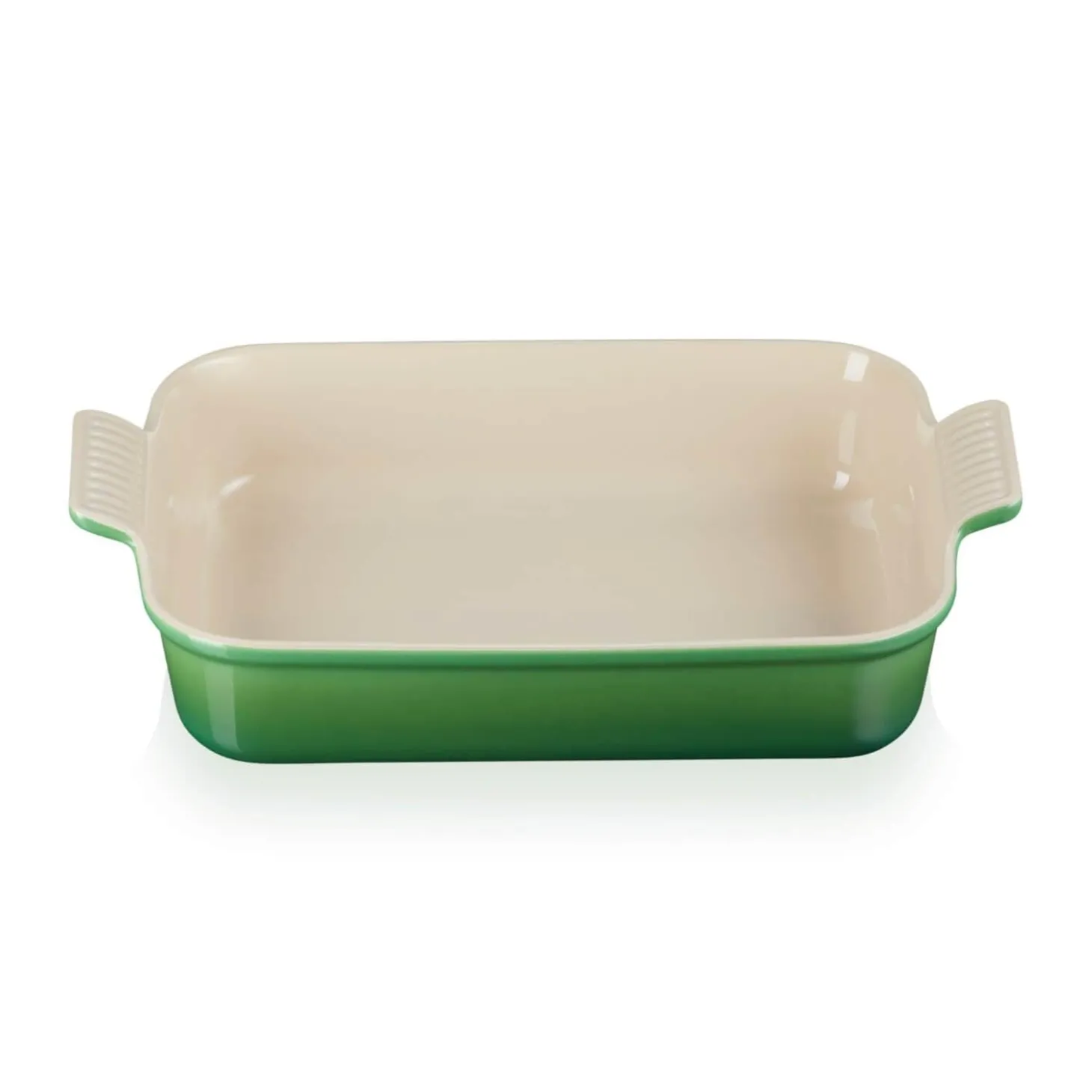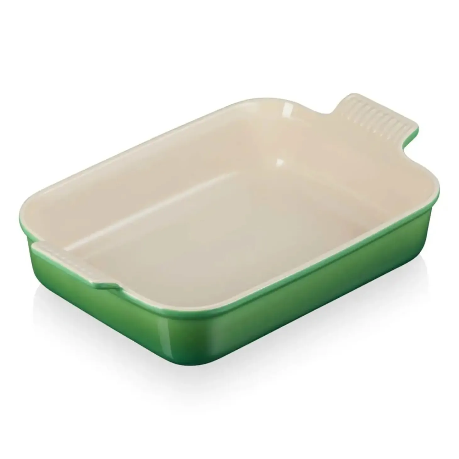 This 32cm rectangular oven dish forms part of the Le Creuset Heritage Dish Bamboo Collection. Each item in the range has been created using durable, thermal resistant stoneware that has been crafted by skilled artisans to ensure the utmost quality and to ensure the even distribution of heat which is perfect when creating pasta bakes, roasts, crumbles and other recipes. These dishes also have an enamel coating to prevent chips, stains and odours. This collection perfectly complements other items in the range.