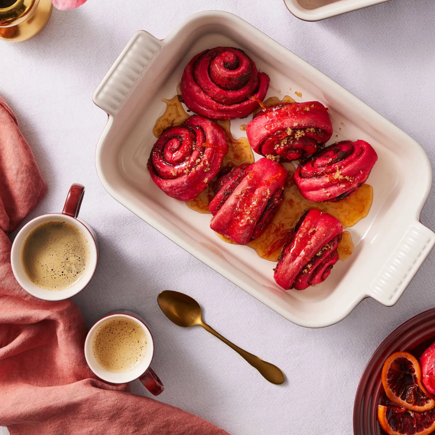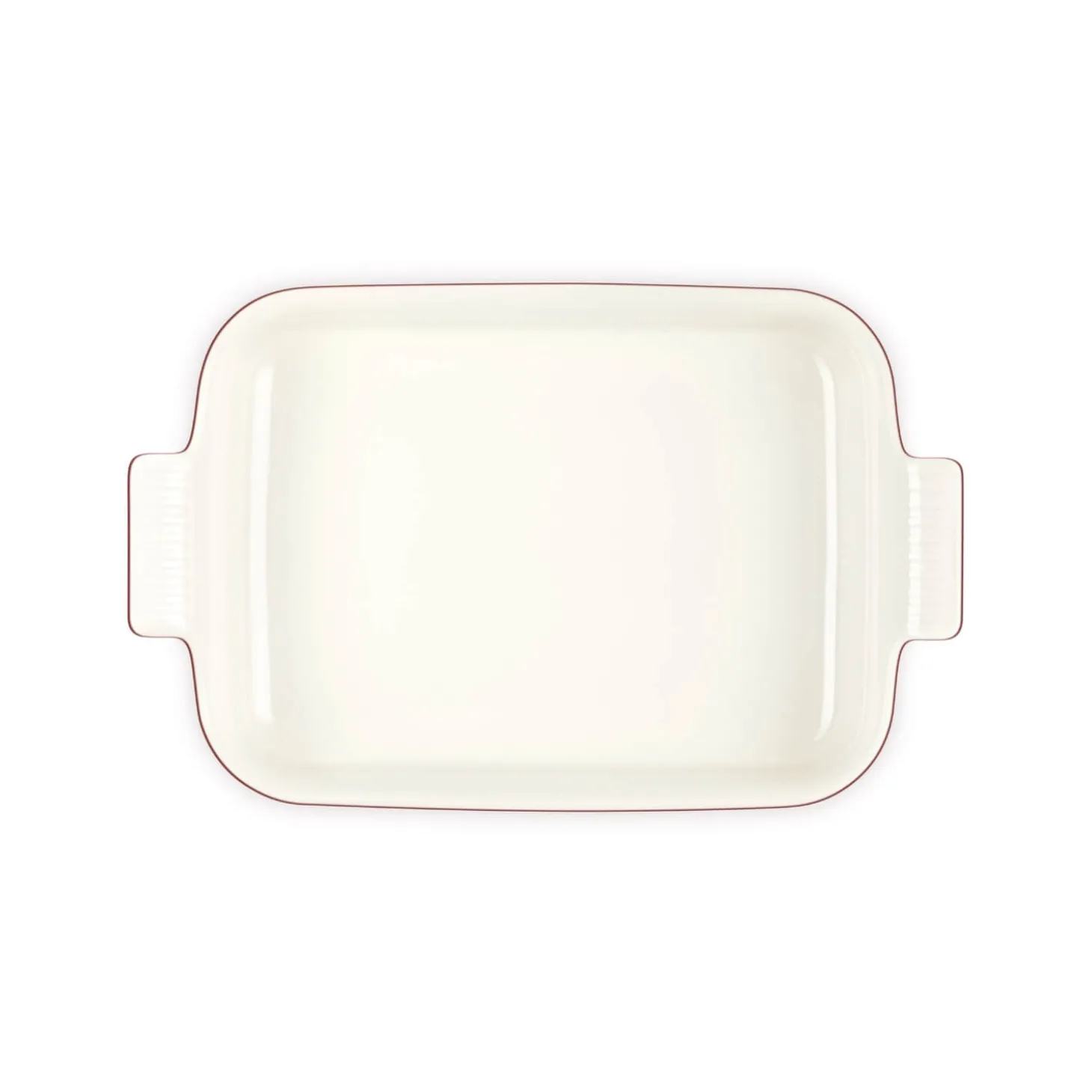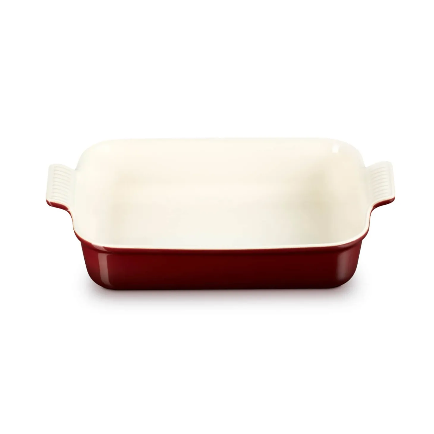 Le Creuset presents the Stoneware Heritage 32cm rectangular deep oven dish in Garnet, indulge in the stunning and luxurious shade of deep red jewels and experience a sense of sophistication and elegance like never before. A stylish and versatile kitchen edition ideal for everyday cooking. Created from specialist clays and fired at high temperatures to ensure unmatched quality and durability. Each dish in the Heritage collection has easy grip scalloped handles, deep walls and an easy to clean scratch-resistant enamel coating.