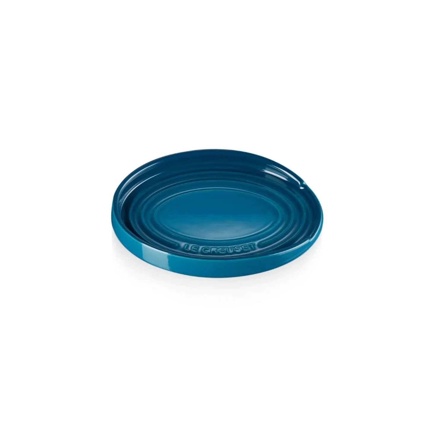 Part of the Le Creuset stoneware collection, this modern oval spoon rest in Deep Teal, is ideal for catching drips whilst cooking. Created from specialist clays and fired at high temperatures to ensure unmatched quality and durability whilst also featuring a protective glaze to protect against chips and scratches. With the iconic 3-ring design, this item will cradle even the largest of utensils. Including a 10-year guarantee and comes in a variety of colours.Â