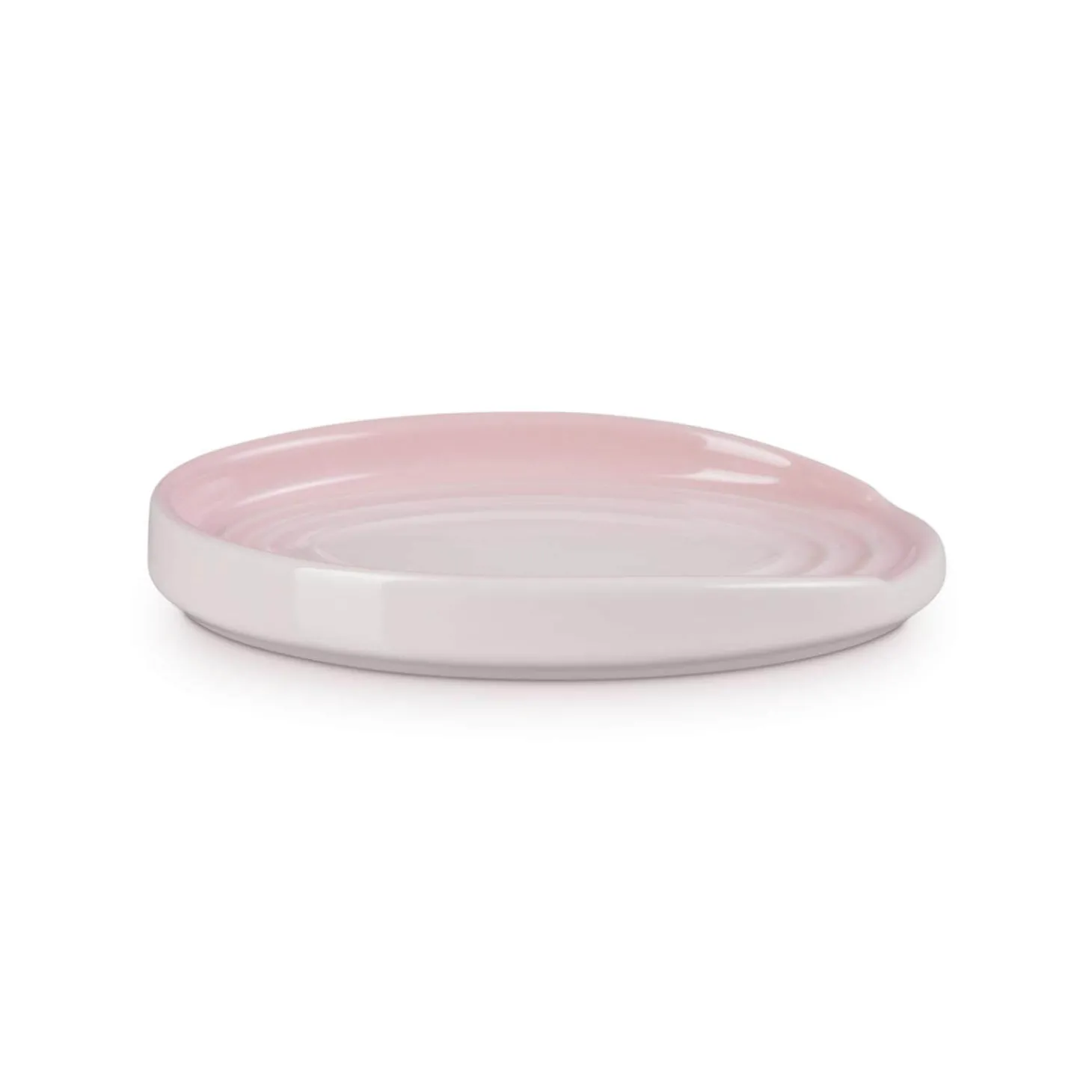 Part of the Le Creuset stoneware collection, this modern oval spoon rest in Shell Pink is ideal for catching drips whilst cooking. Created from specialist clays and fired at high temperatures to ensure unmatched quality and durability whilst also featuring a protective glaze to protect against chips and scratches. With the iconic 3-ring design, this item will cradle even the largest of utensils. Including a 10-year guarantee and comes in a variety of colours.Â