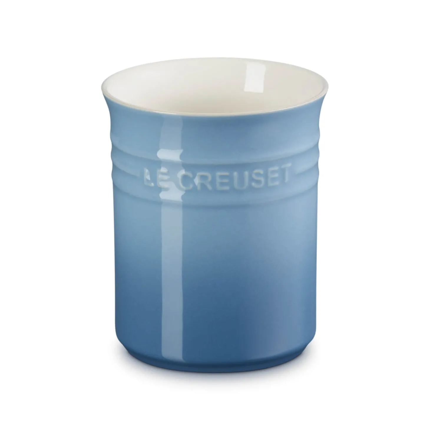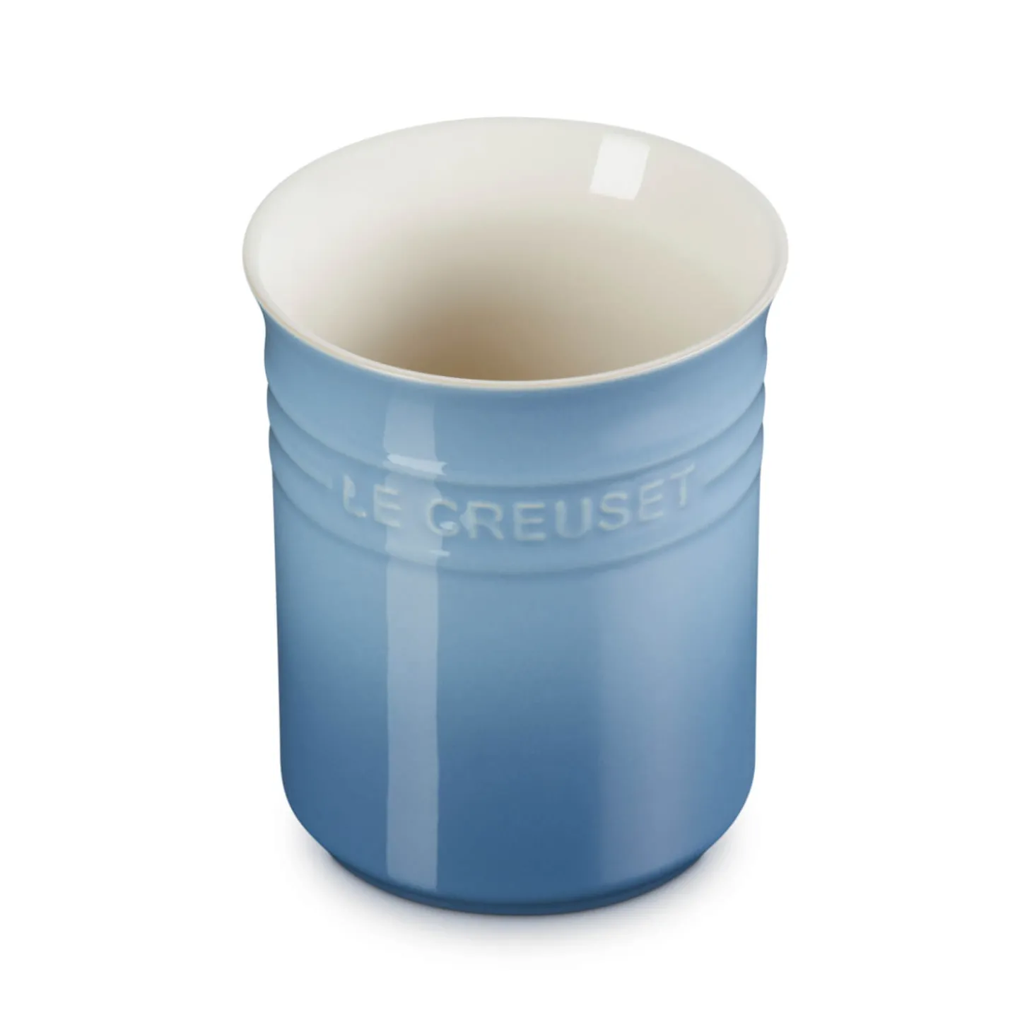 Le Creuset presents the Stoneware Small Utensil Jar in Chambray, indulge in the serene ambience of Chambray Blue creating a calming and soothing atmosphere, perfect for a relaxing cooking and dining experience. The jar has the iconic three ring design that is on all of their classic cast iron range. The utensil jar is made from enamelled stoneware which is both strong and durable. This utensil jar will compliment your kitchen and will look stylish next to your hob, containing all your whisks, spoons, spatulas etc. all close to hand.