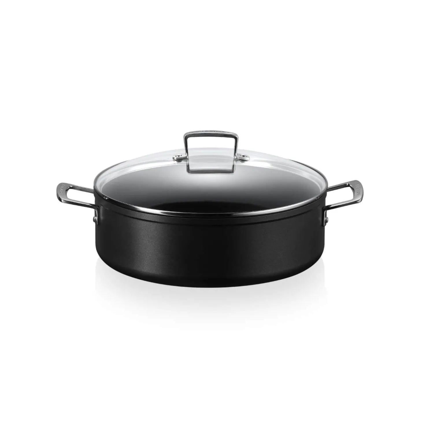 Perfect for a multitude of cooking tasks this versatile 30cm saute pan by Le Creuset forms parts of their improved Toughened Non-Stick range which now feature 4x* as much strength as the previous edition thanks to a 3-layer PFOA free coating. This saute pan also provides excellent heat distribution due to being created using hard anodised aluminium making this saute pan compatible across all hob types including induction. The stainless steel helper handles allow for comfort and easy use with guaranteed stability.