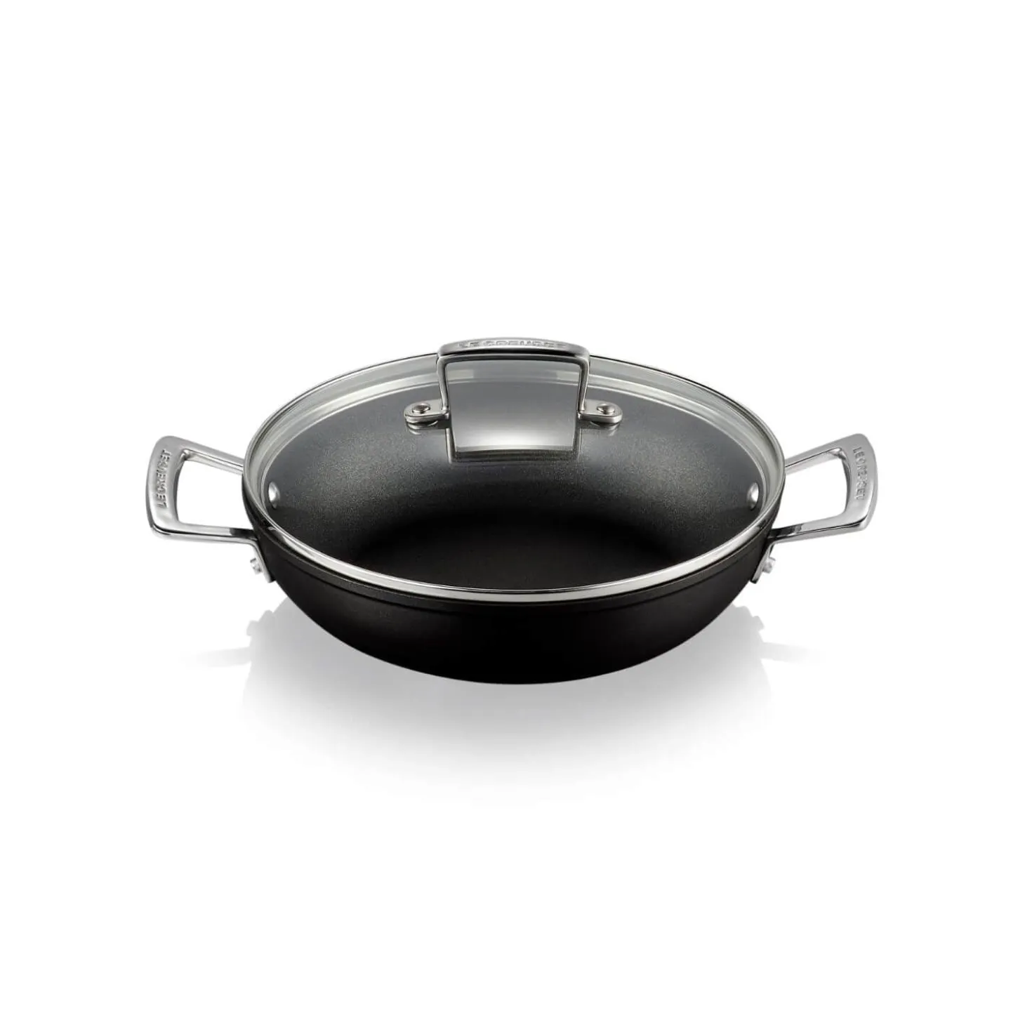 IdealĀ for casseroles and stews this 24cm shallow casserole dish by Le Creuset forms parts of their improved Toughened Non-Stick range which now feature 4x* as much strength as the previous edition thanks to a 3-layer PFOA free coating. This casserole also provides excellent heat distribution across all hobs including induction and features ergonomic stainless steel handles attached by complementing rivets further enhancing the items longevity.
