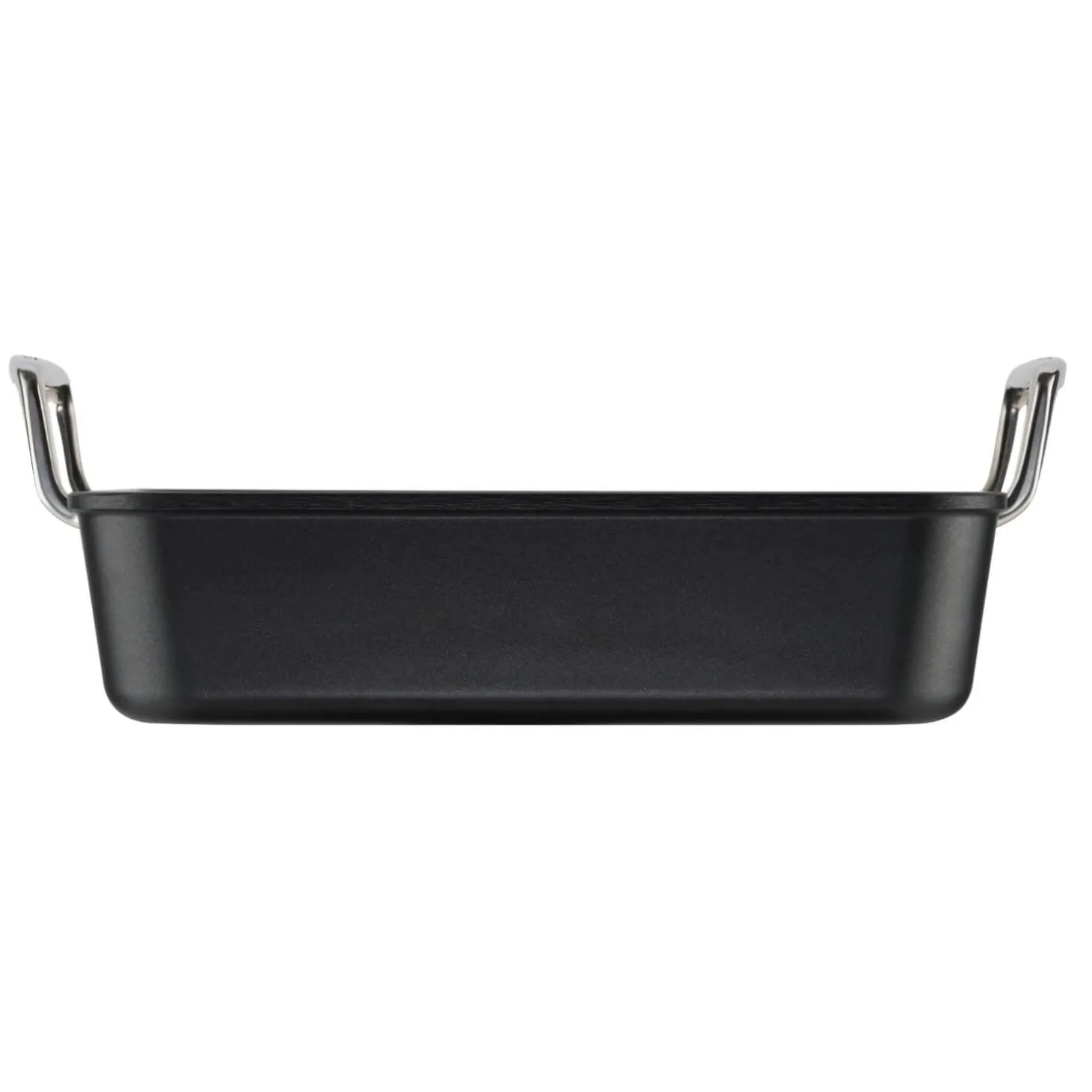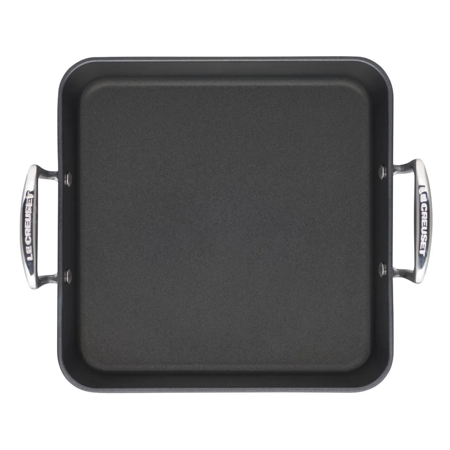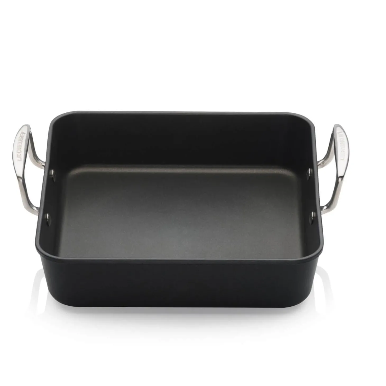 Perfect for a roasting succulent joints of meat this 26cm square roaster by Le Creuset forms parts of their improved Toughened Non-Stick range which now feature 4x* as much strength as the previous edition thanks to a 3-layer PFOA free coating. This roastingĀ pan also provides excellent heat distribution across all hobs including induction and features ergonomic stainless steel handles attached by complementing rivets further enhancing the items longevity.