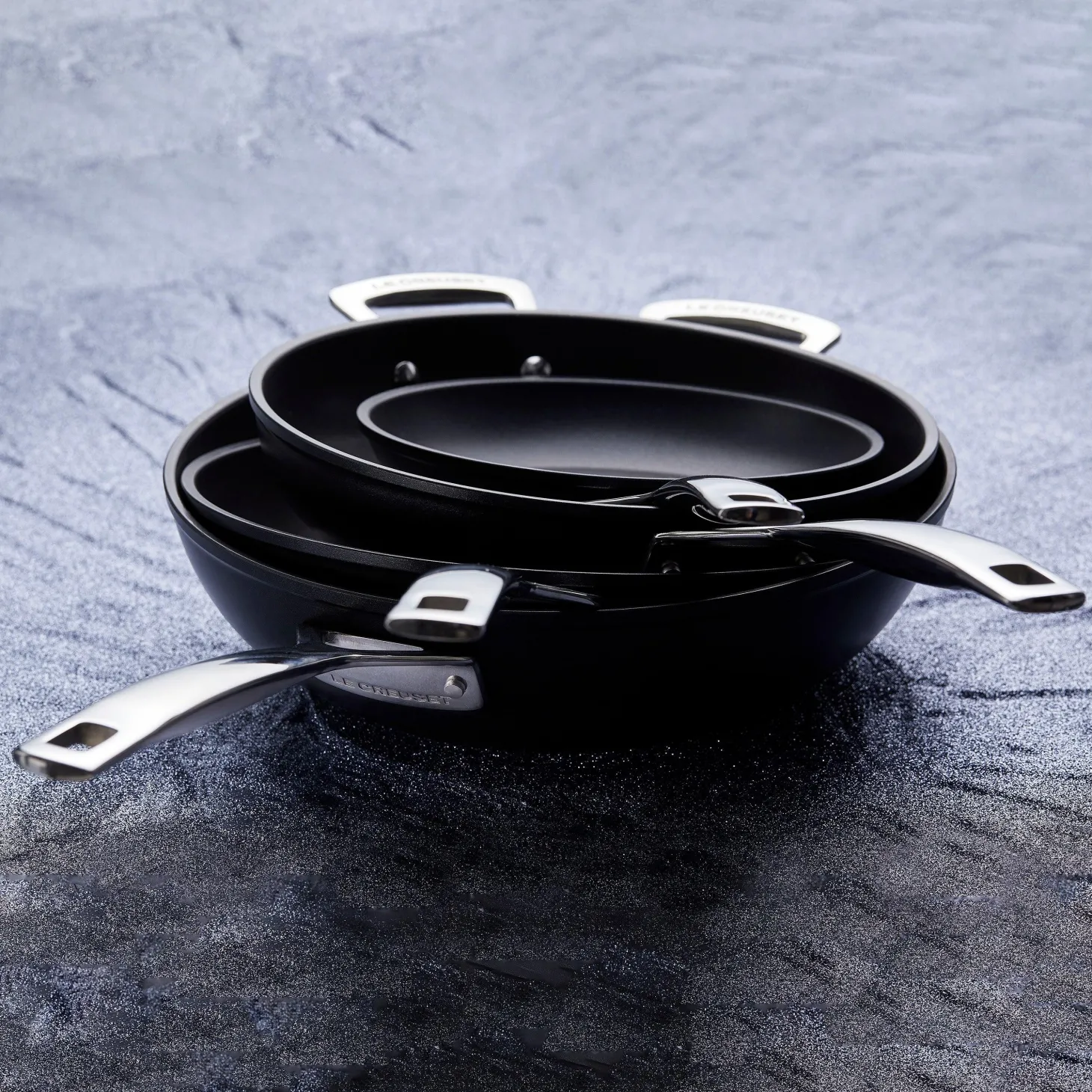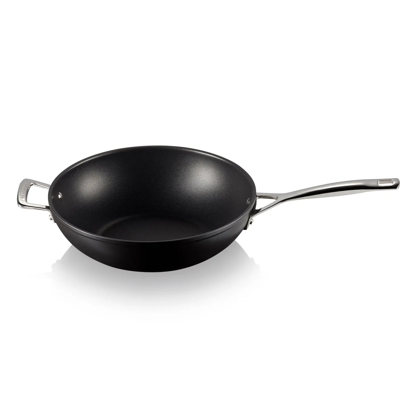 Designed for oriental stir-frying this 30cm pan by Le Creuset forms parts of their improved Toughened Non-Stick range which now feature 4x* as much strength as the previous edition thanks to a 3-layer PFOA free coating. This pan also provides excellent heat distribution across all hobs including induction and features ergonomic stainless steel handles attached by complementing rivets further enhancing the items longevity.