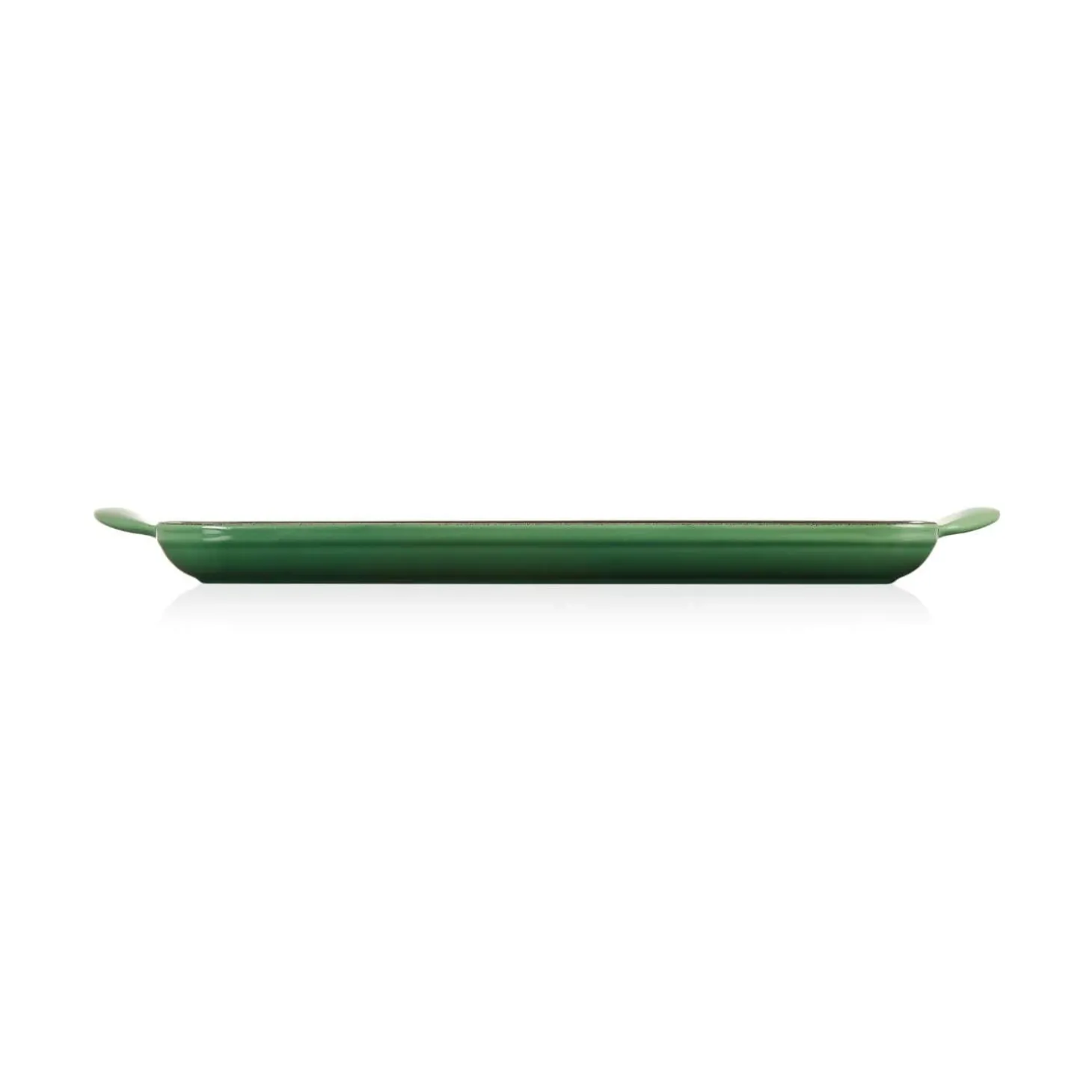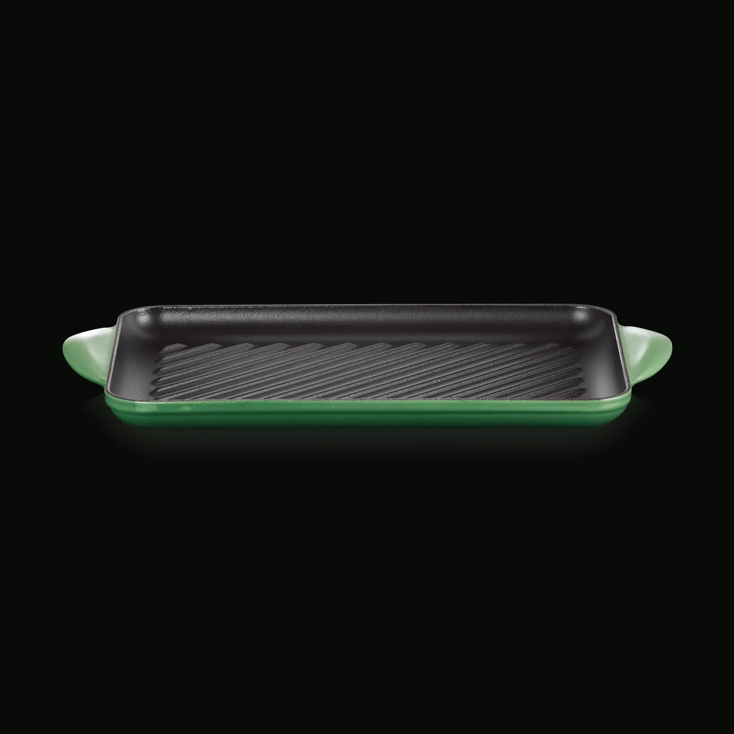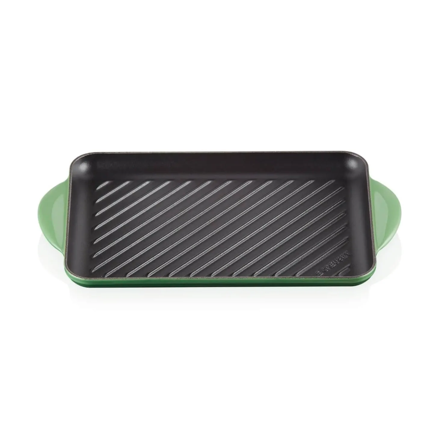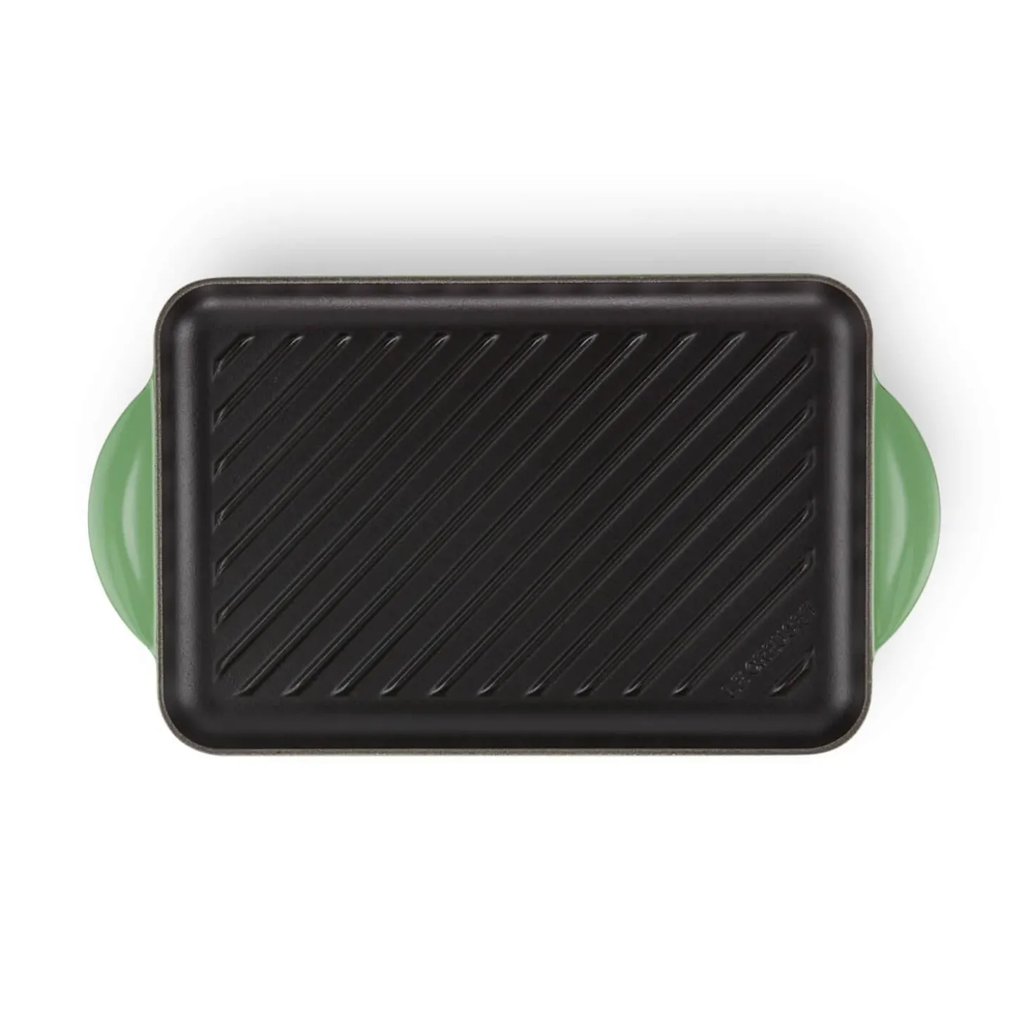 Create great-tasting meals with the Traditional 32cm rectangular grill pan in Bamboo Green by Le Creuset. Created using cast iron this grill pan retains heat longer than other materials and develops a natural patina over time requiring less seasoning and enhancing flavour. This item also has 2 large handles for better control and is suitable for induction hobs.
