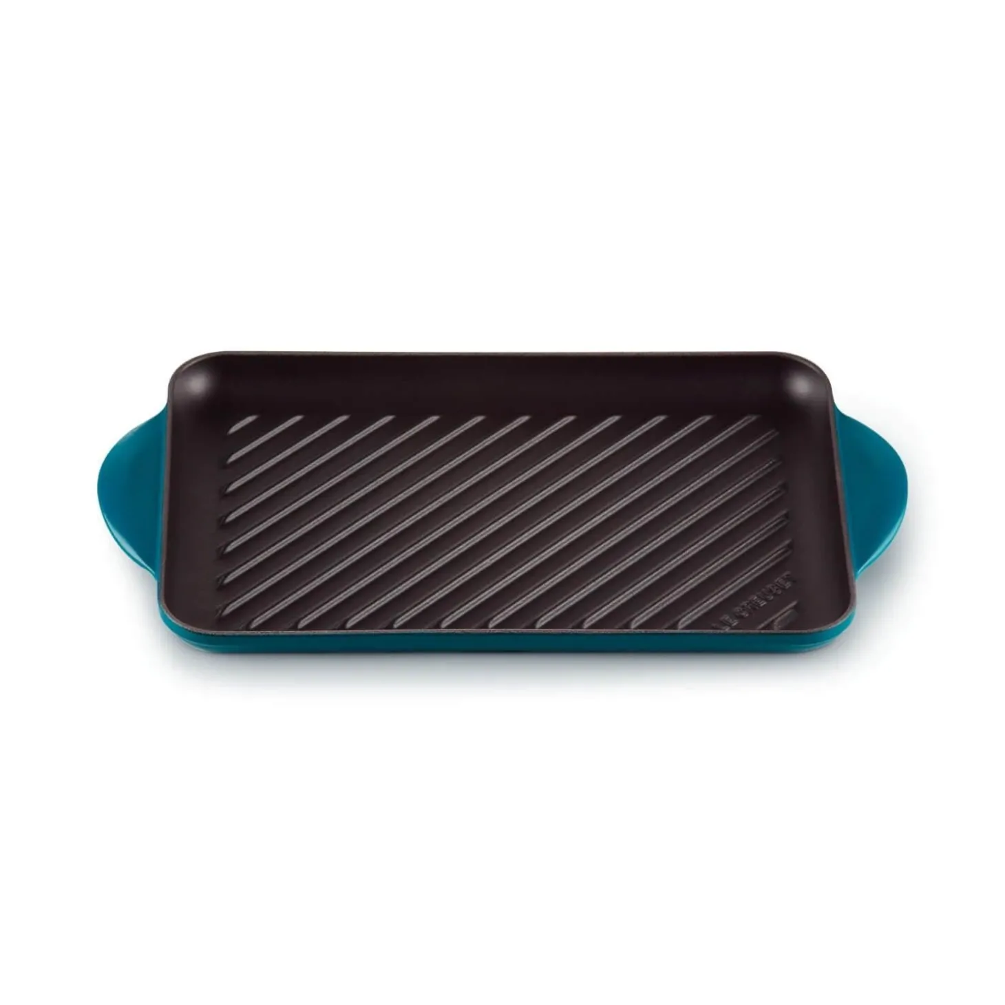 Create great-tasting meals with the Traditional 32cm rectangular grill pan in Deep Teal by Le Creuset. Created using cast iron this grill pan retains heat longer than other materials and develops a natural patina over time requiring less seasoning and enhancing flavour. This item also has 2 large handles for better control and is suitable for induction hobs.