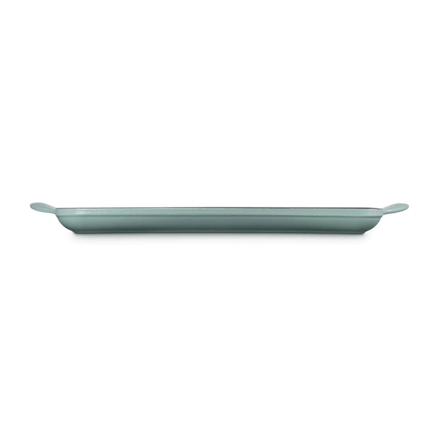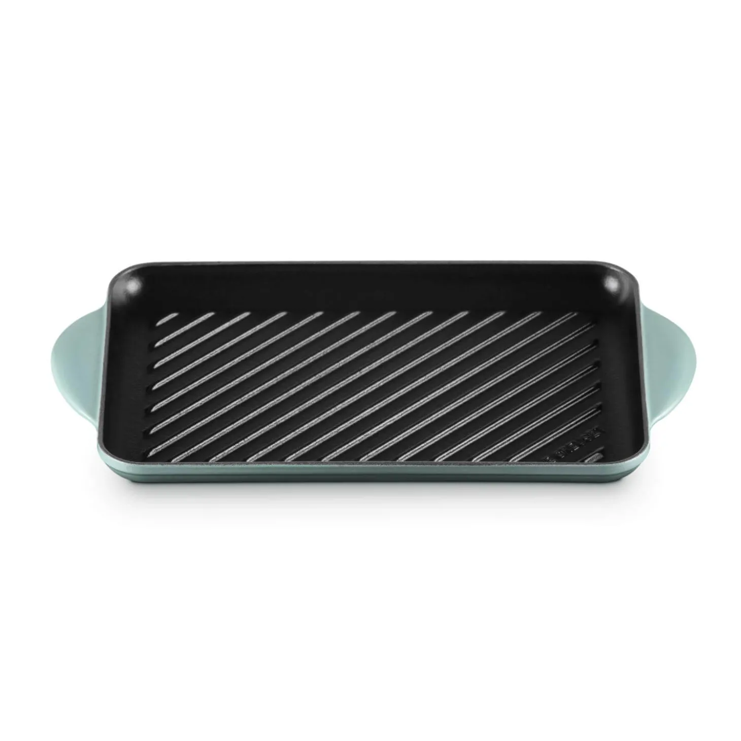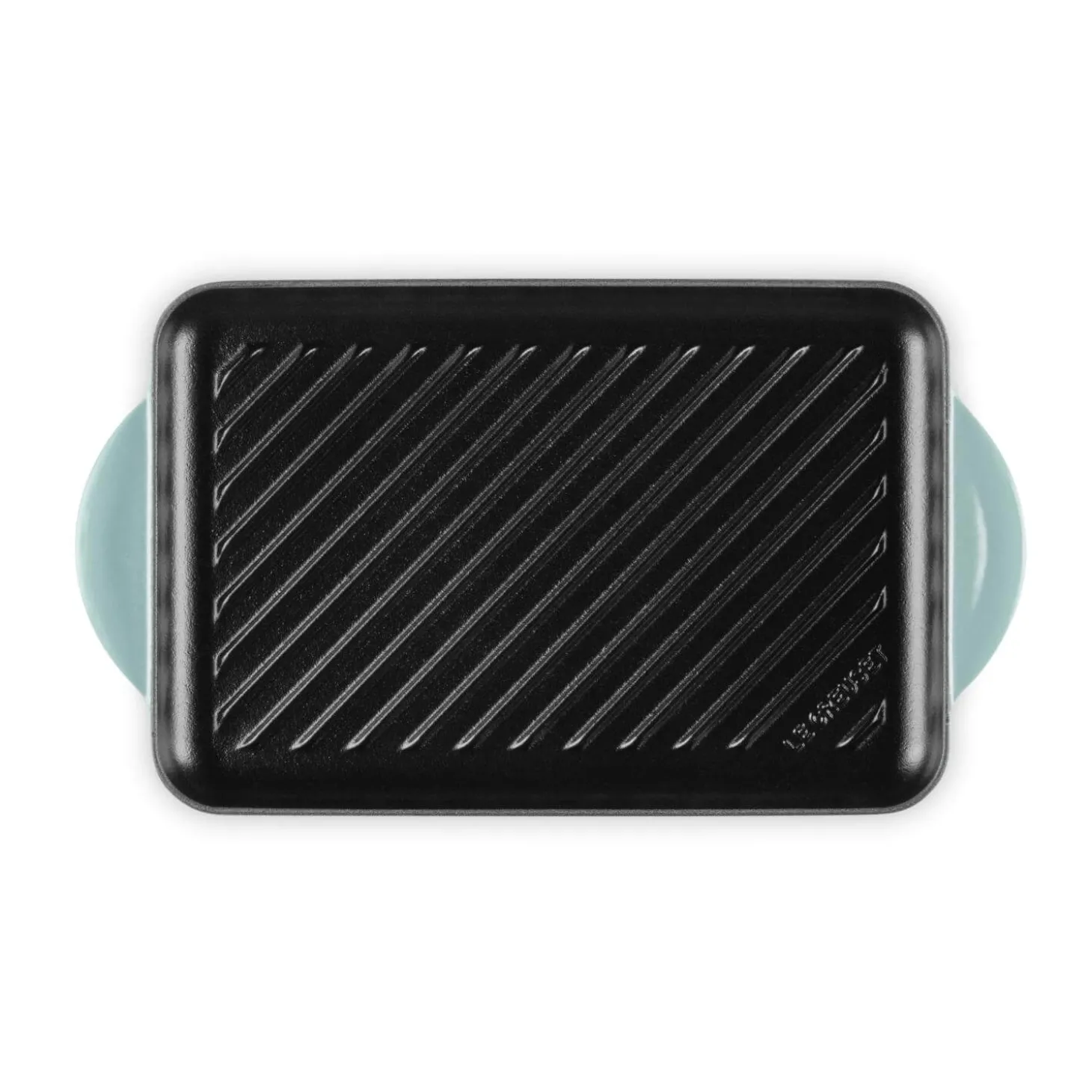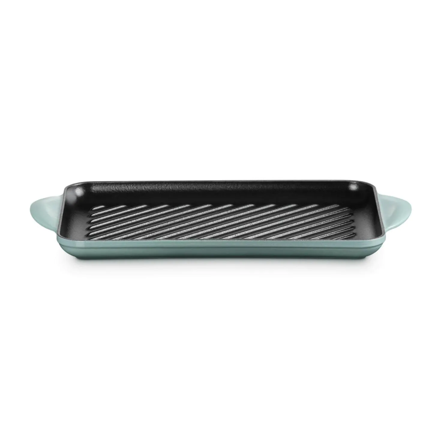 Create great-tasting meals with the Traditional 32cm rectangular grill pan in Sea Salt by Le Creuset. Created using cast iron this grill pan retains heat longer than other materials and develops a natural patina over time requiring less seasoning and enhancing flavour. This item also has 2 large handles for better control and is suitable for induction hobs.