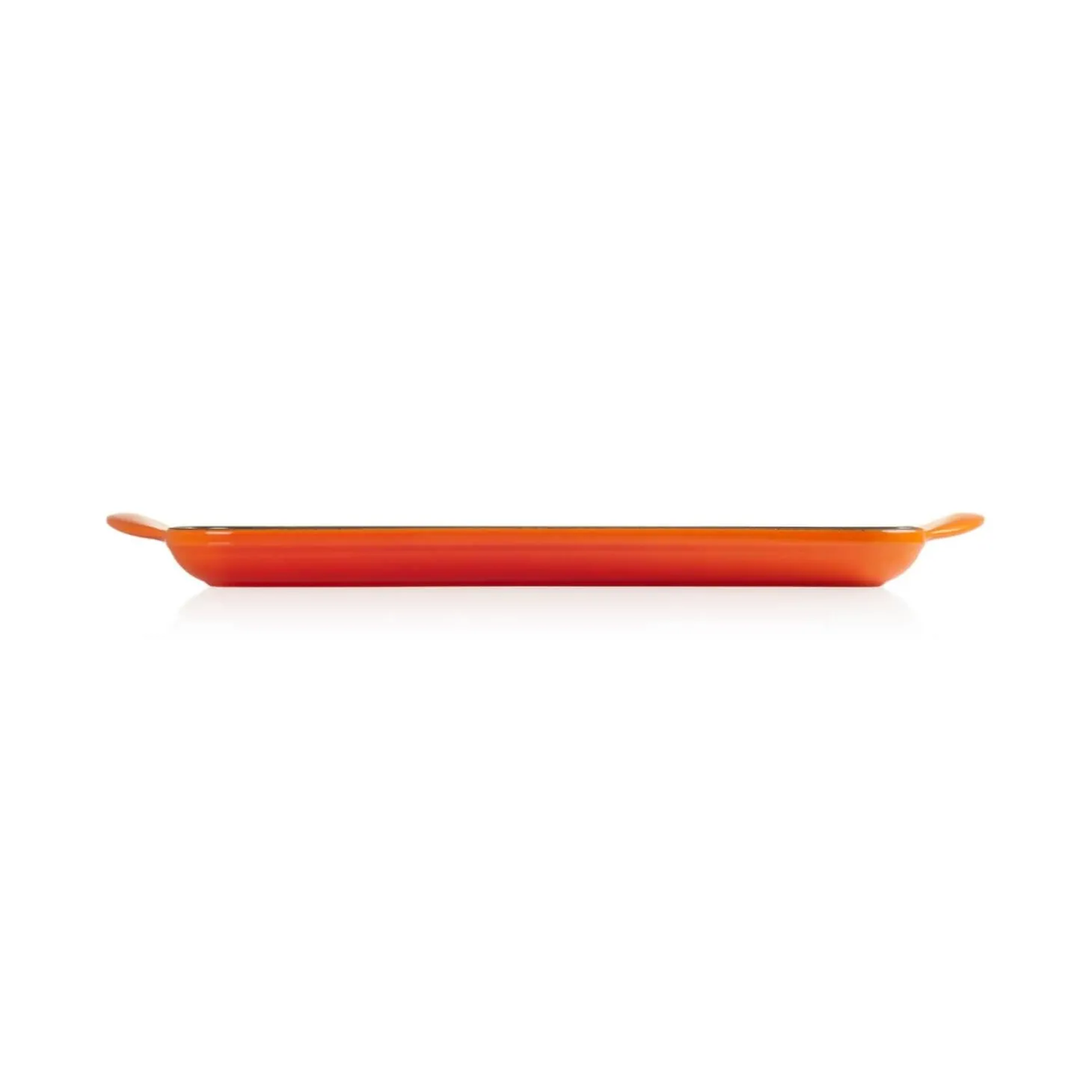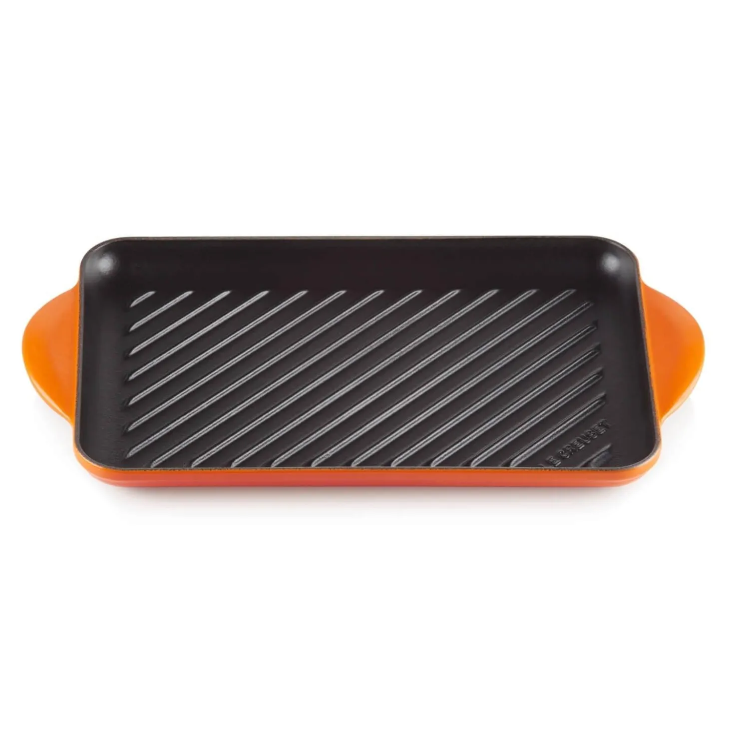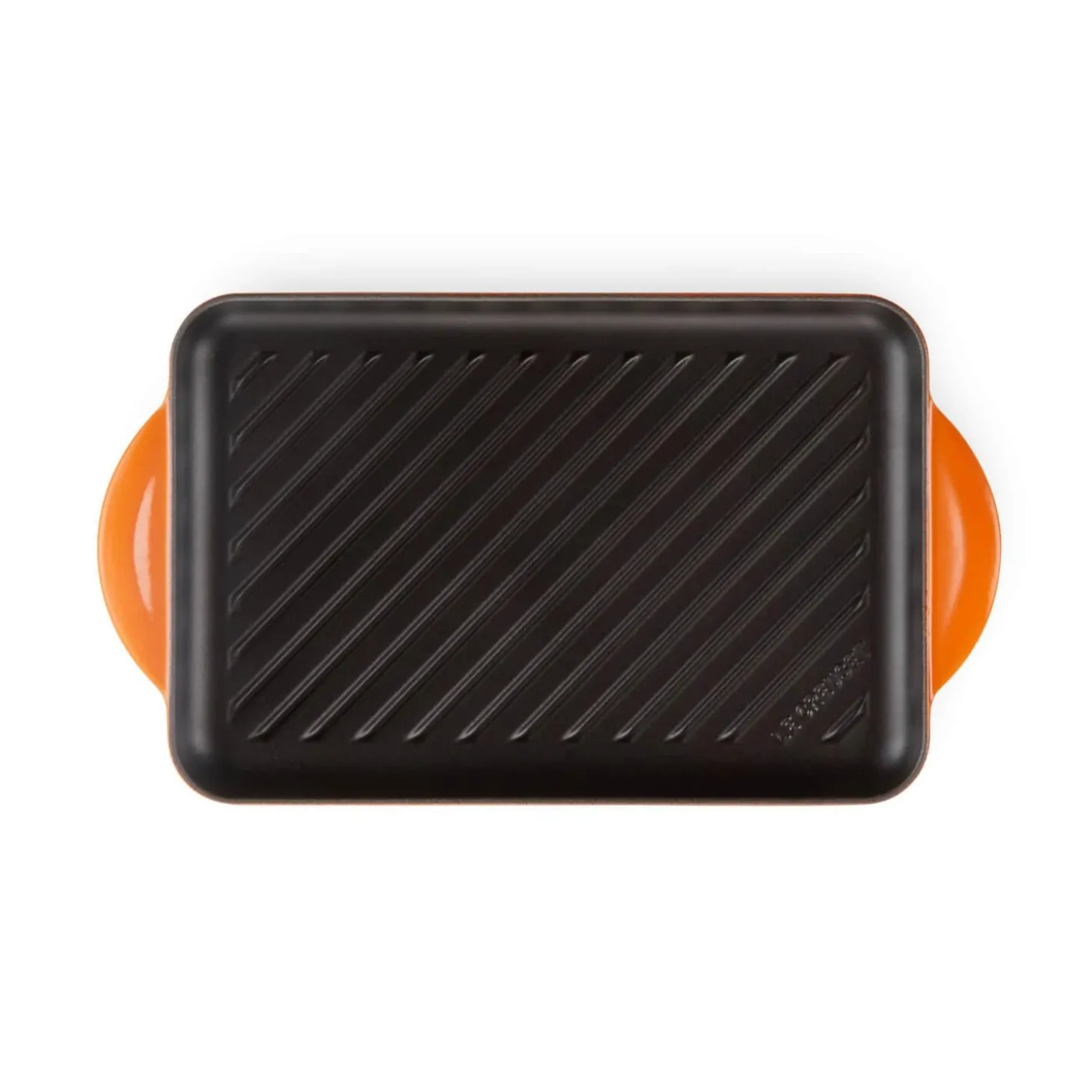 Create great-tasting meals with the Traditional 32cm rectangular grill pan in Volcanic by Le Creuset. Created using cast iron this grill pan retains heat longer than other materials and develops a natural patina over time requiring less seasoning and enhancing flavour. This item also has 2 large handles for better control and is suitable for induction hobs.
