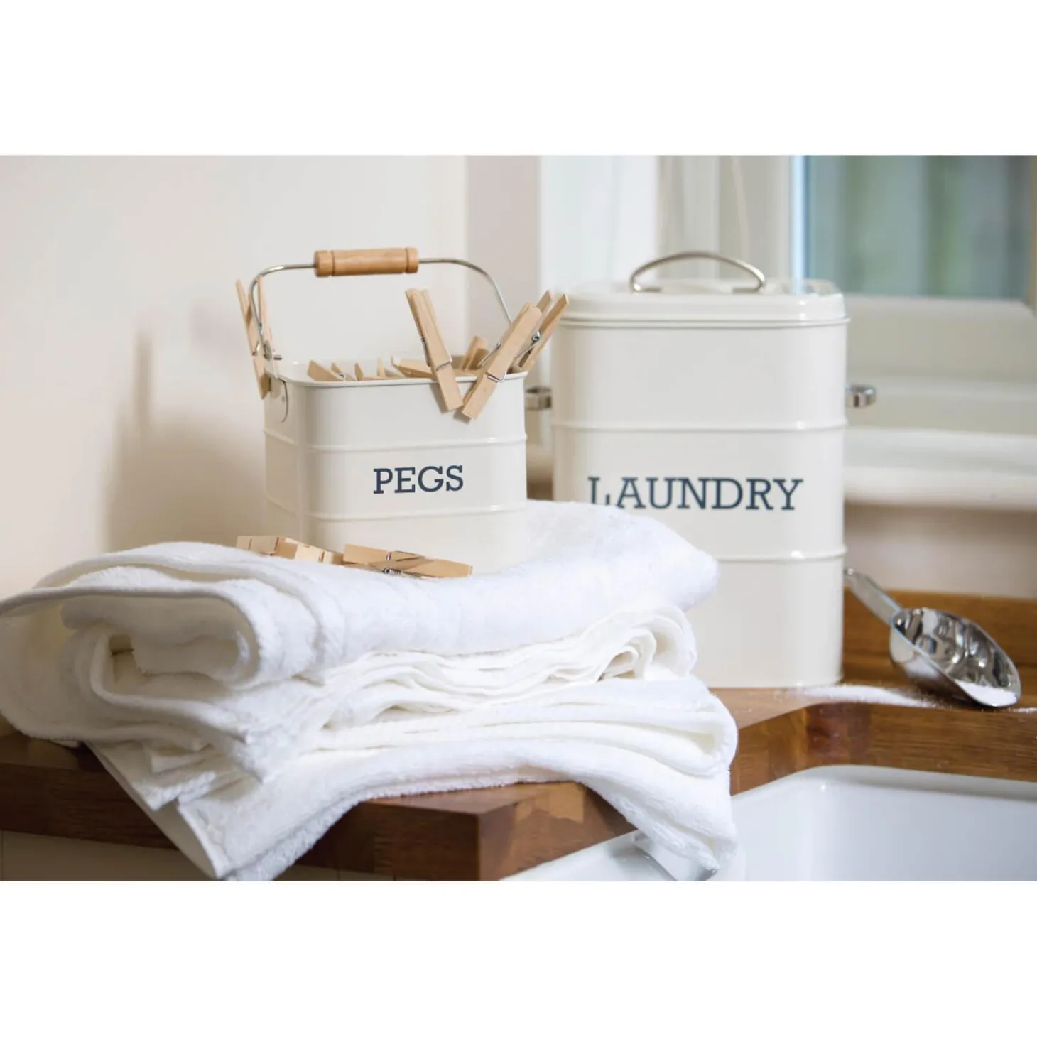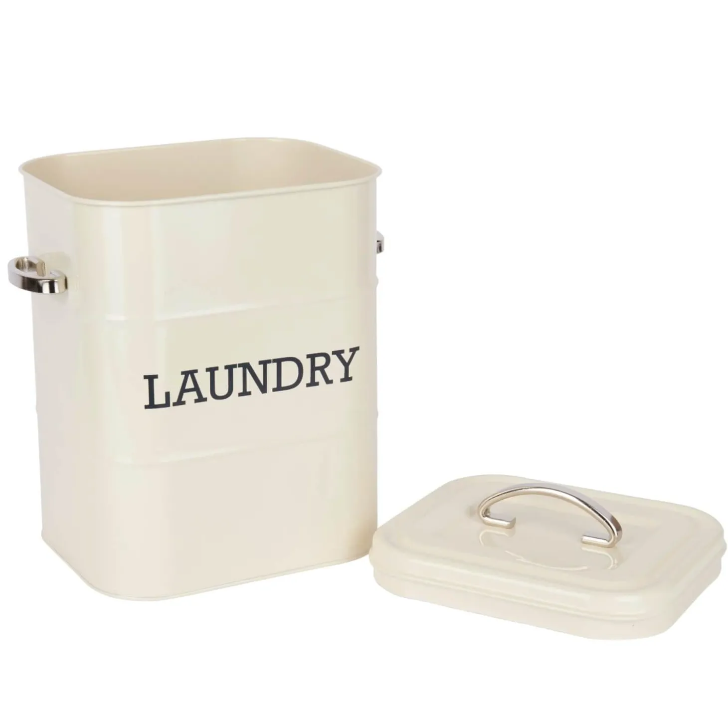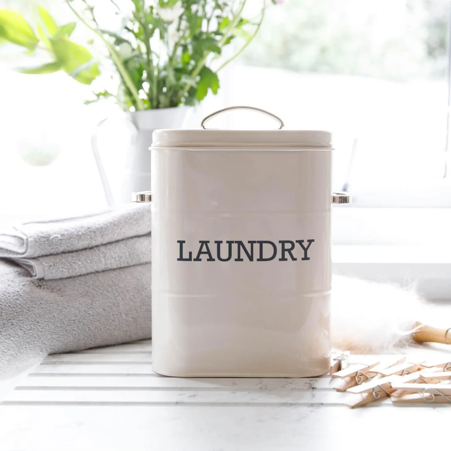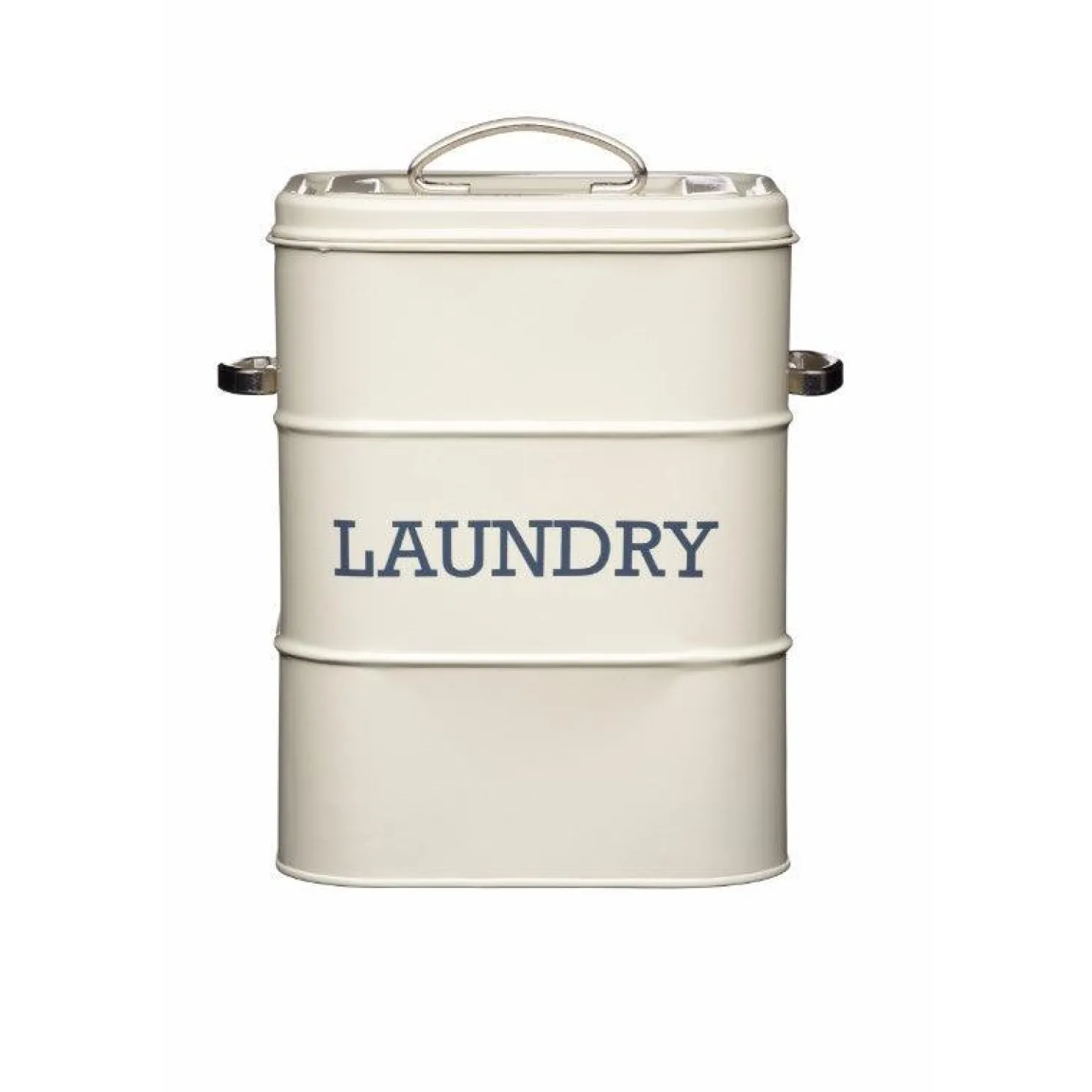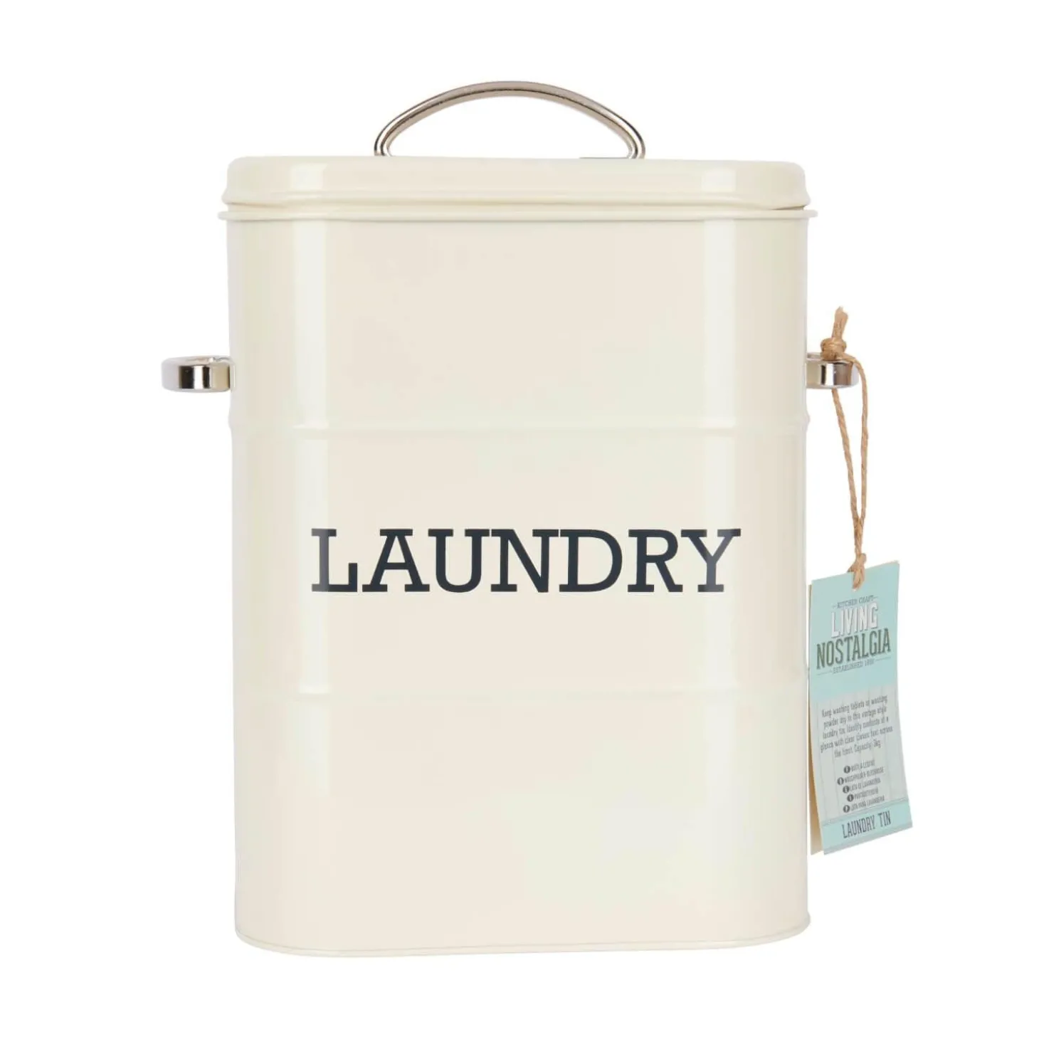 Add a touch of vintage style to your laundry with the stunning Living Nostalgia Laundry Soap Canister in cream. The laundry tin is ideal for storing all of your washing powders, soap tablets and gel capsules so that they are close to hand when machine and hand washing. Made from sturdy steel with a separate handled lid; the laundry tin features an attractive cream design with retro style lettering.
