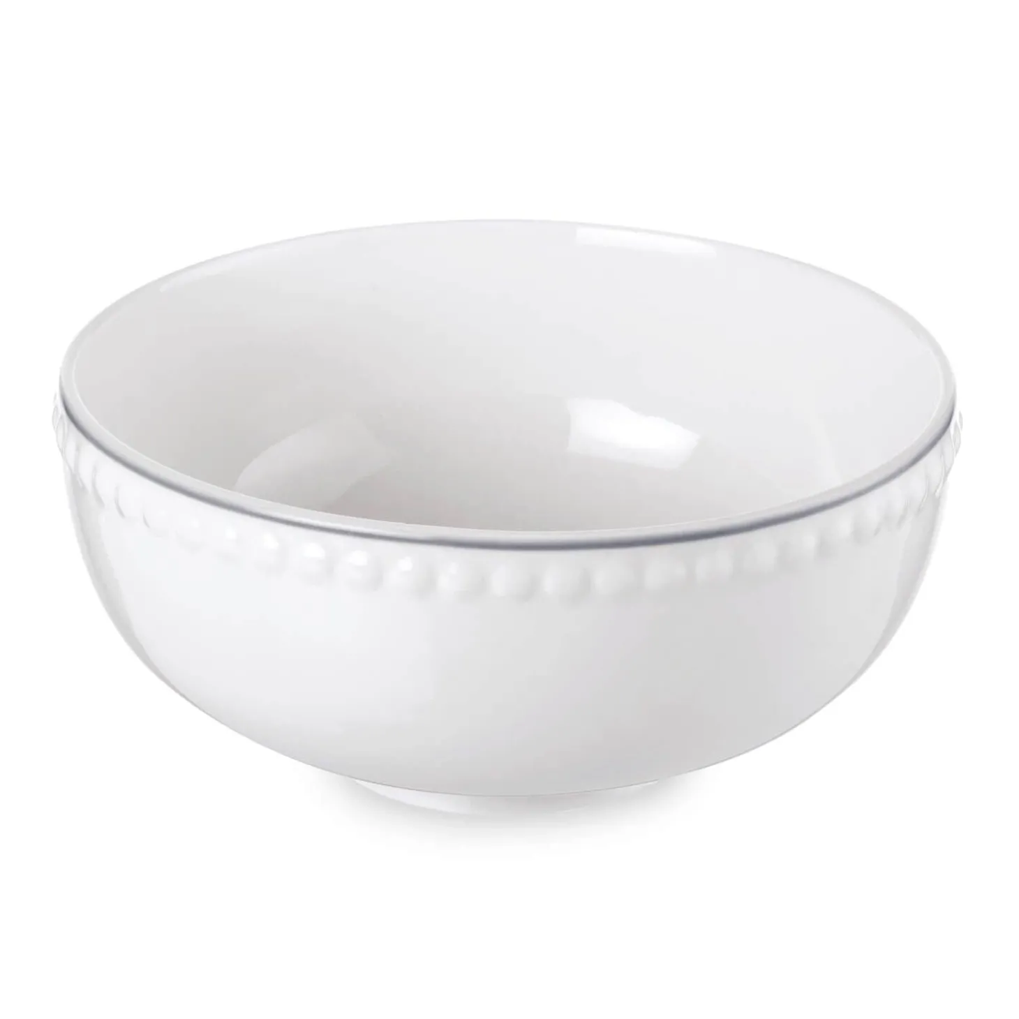 This Mary Berry Cereal Bowl is made from beautiful Fine China, and features a delicate raised dot design around the top of the bowl, with an elegant grey rim. Complementing items in the Mary Berry range available.