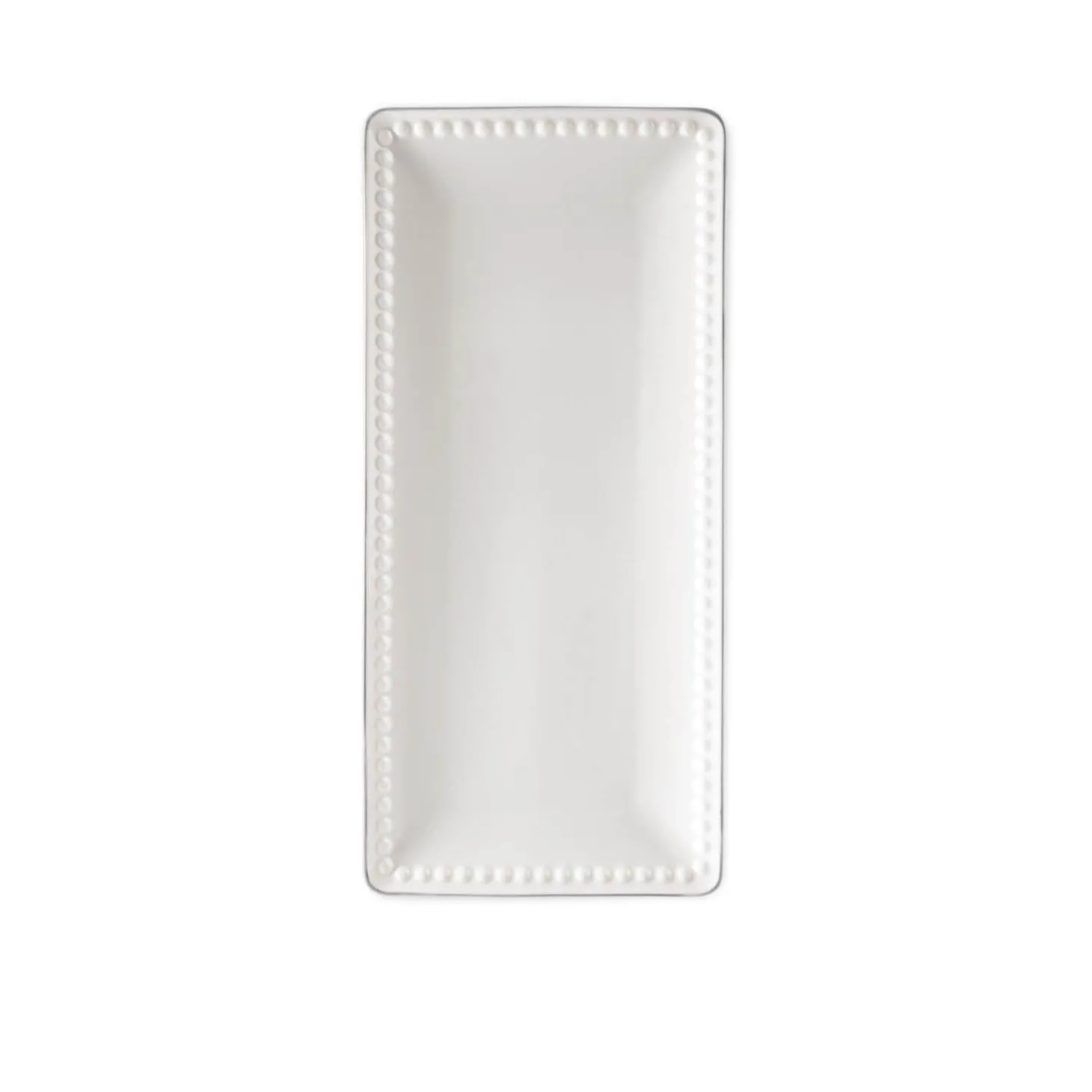 This Mary Berry Small Rectangular Serving Platter is made from beautiful Fine China, and features a delicate raised dot design around the edge of the platter, with an elegant grey rim. Complementing items in the Mary Berry range available.