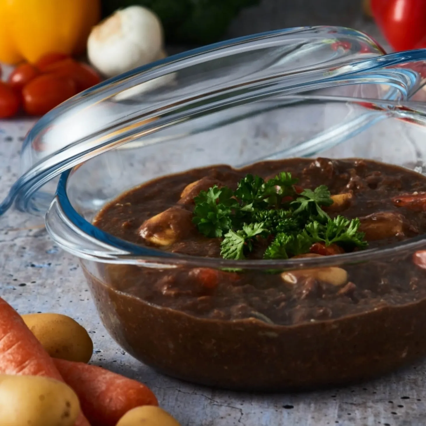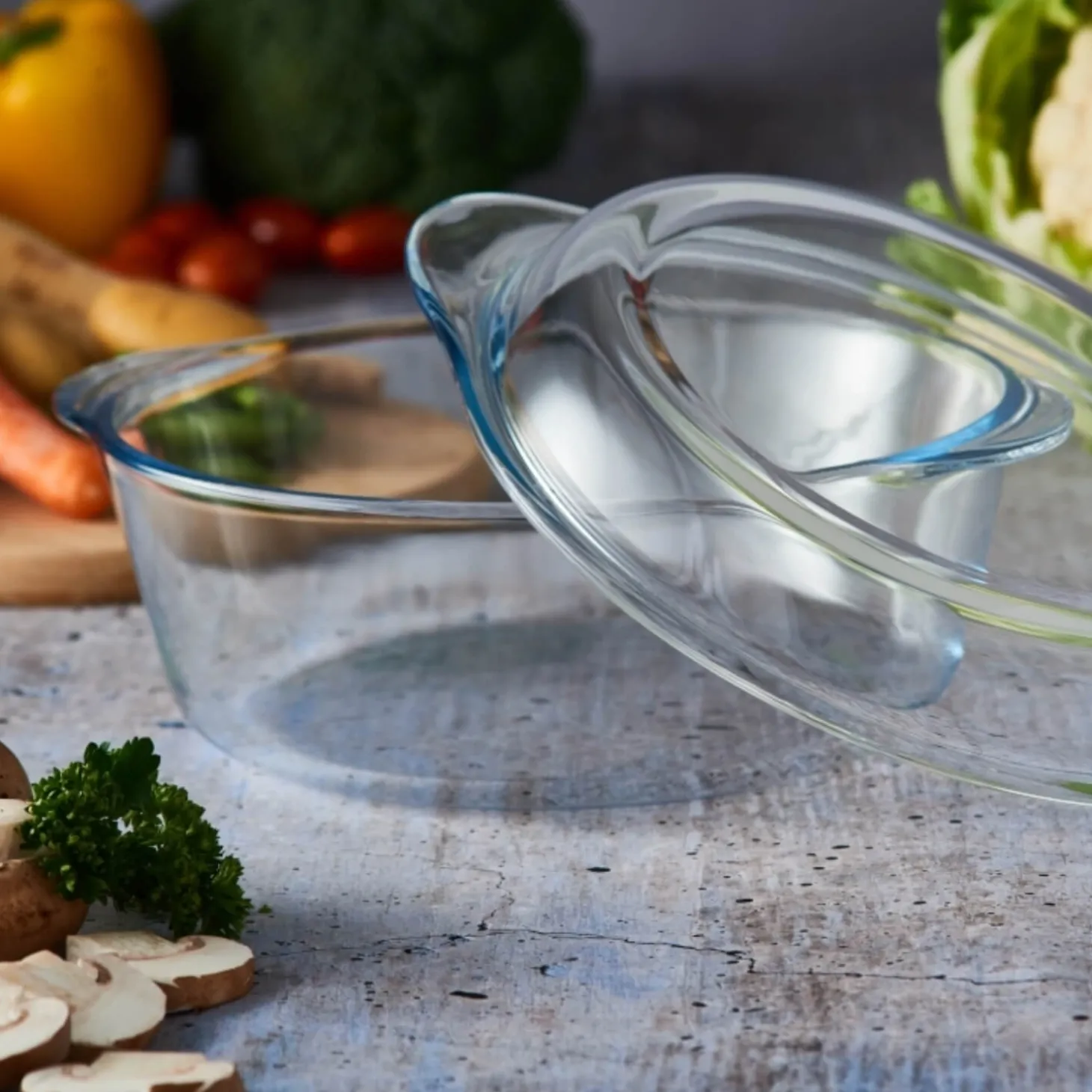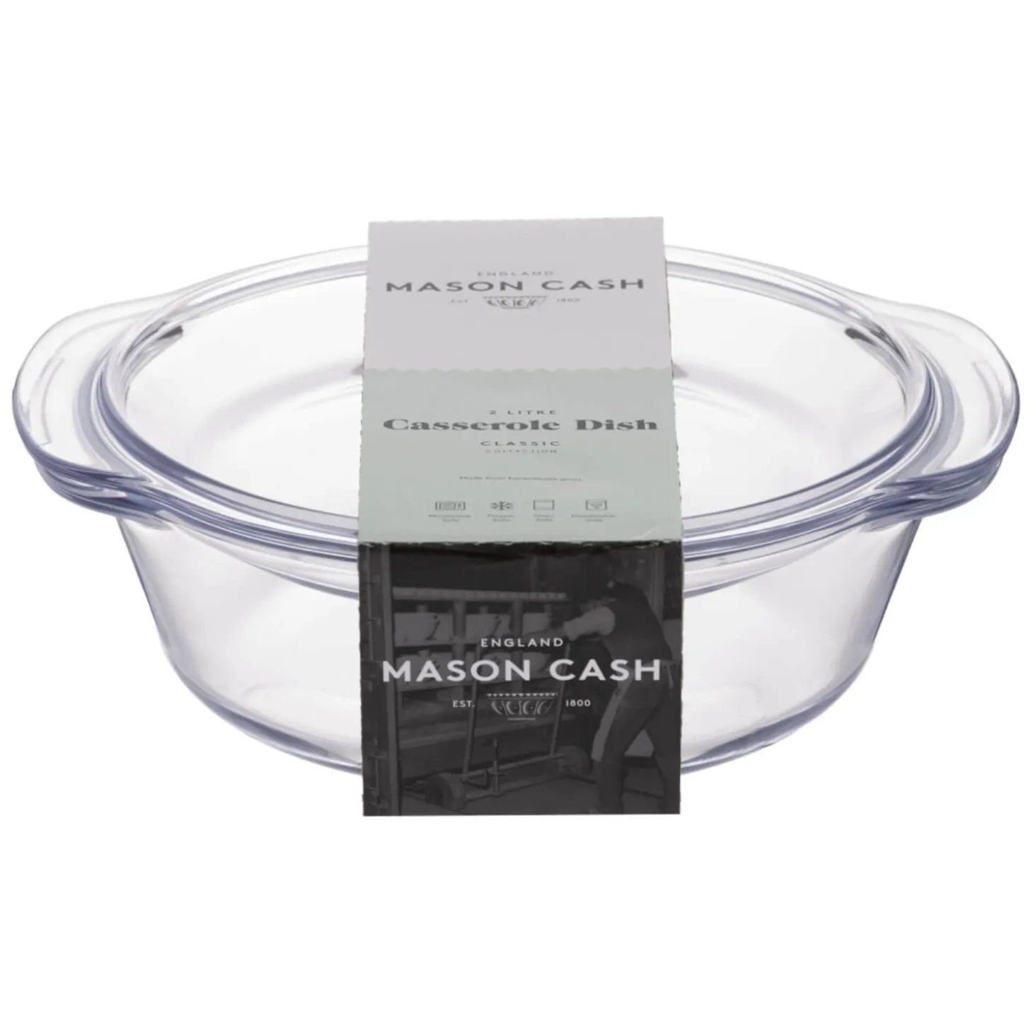 Mason Cash presents the 2 Litre Glass Casserole Dish with lid, part of their Classic Collection. Made from high-quality, tempered, borosilicate glass, providing superior heat performance and durability. The range from Mason Cash covers all essential ovenware pieces for roasting, baking, cooking and serving food.