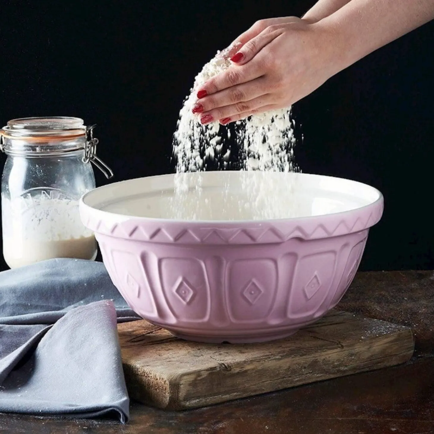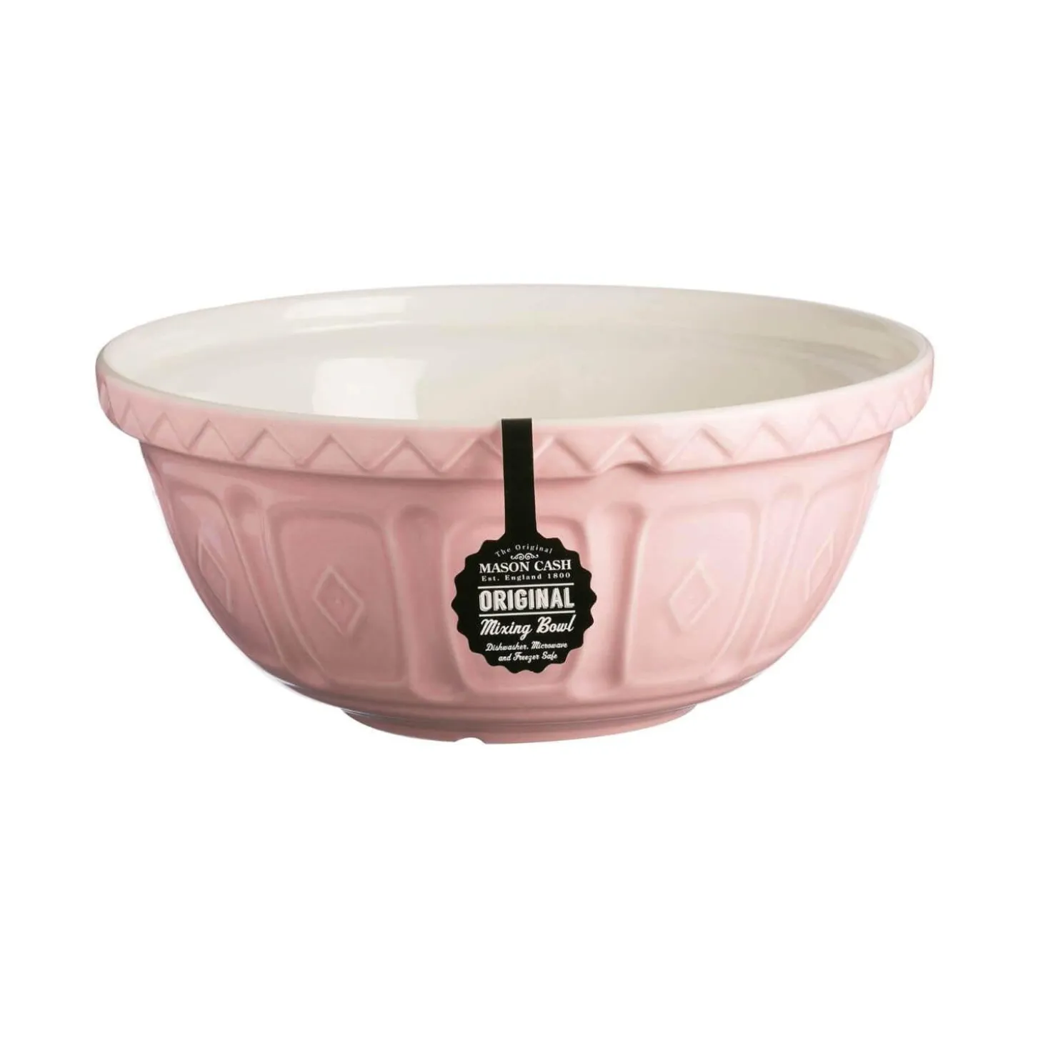 Add a splash of colour to your kitchen with the beautifully crafted Mason Cash 29cm Colour Mix Mixing Bowl in Powder Pink. Each mixing bowl is created from durable earthenware before being given a chip resistant glaze for added protection. The exterior of the mixing bowl features a symmetrical embossed shaped pattern that wraps around the bowl and provides extra grip.