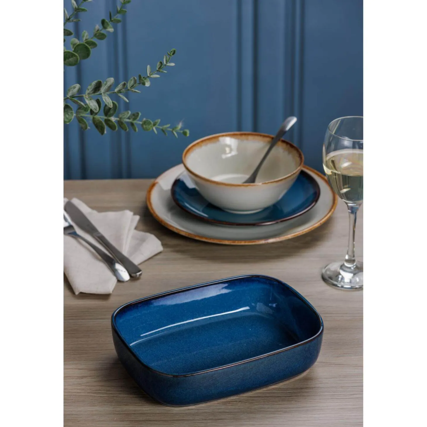 Mason Cash presents the 23cm Rectangle Dish, part of their ‘Reactive Blue’ oven-to-tableware collection. Made from durable earthenware, this beautiful dish is ideal for roasting vegetables, baking a shepherds pie or a lovely crumble while also enhancing the aesthetic of your kitchen and dining table. The dish is crafted with a reactive blue glaze, resulting in a unique and one-of-a-kind finish that will undoubtedly contribute to an attractive table setting.