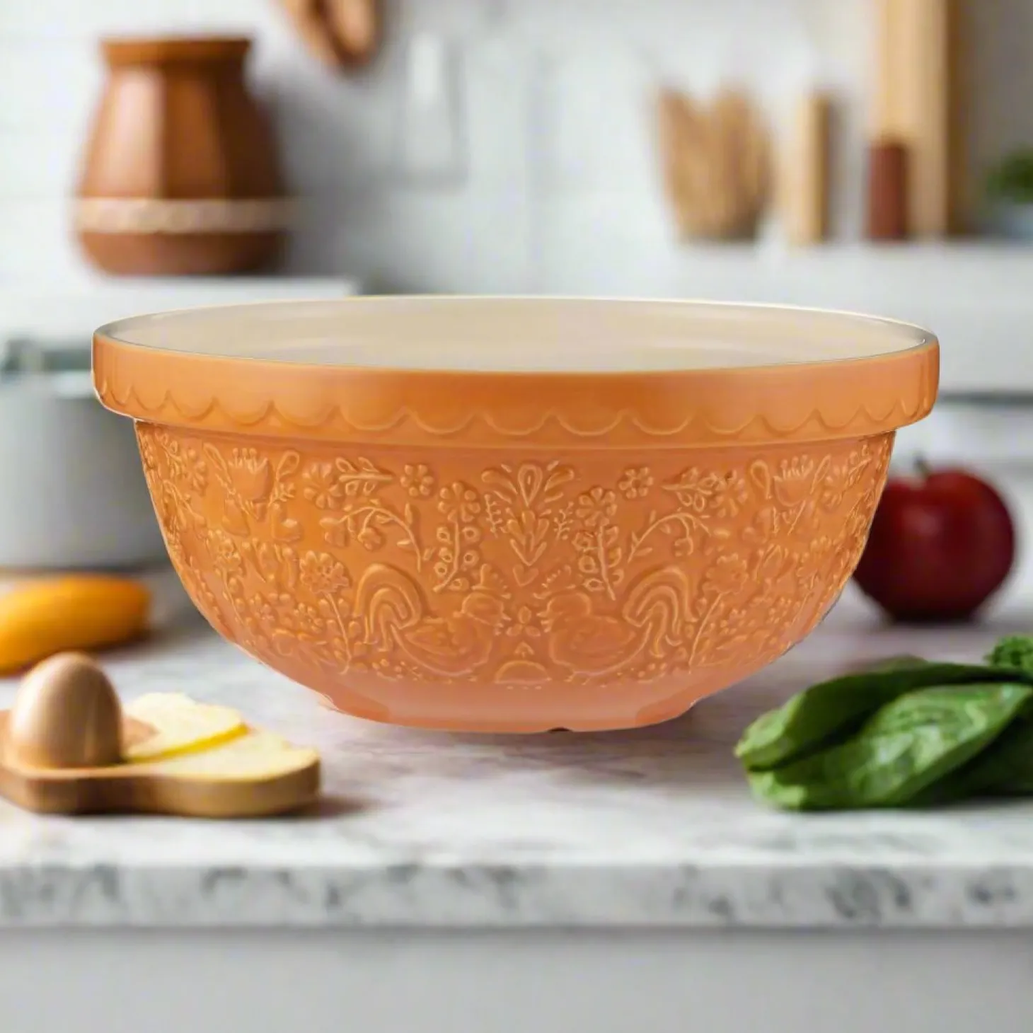 Mason Cash presents the S24 Mixing Bowl as part of their Home To Roost collection, perfect for when making bread, cakes, pastry and much more. The mixing bowl features intricately embossed, folk-inspired hen and cockerel motifs. Made from durable earthenware but light enough to make the bowl easy to use with ease on your countertop, this mixing bowl is the perfect addition to all cooks’ kitchens.