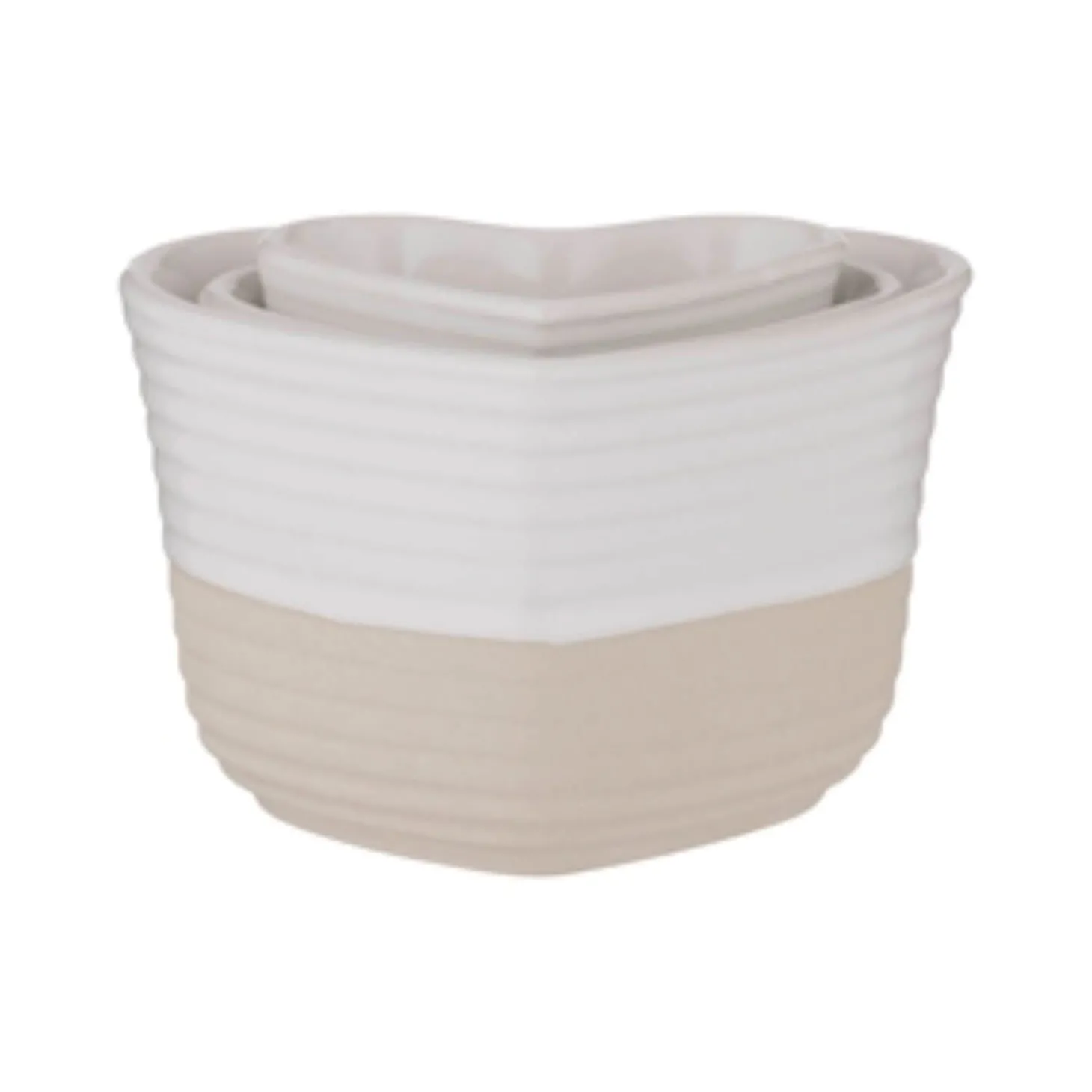 Mason Cash presents the Set of 3 Stoneware Measuring Cups in Rustic Charm design, a beautiful addition to your baking equipment. This collection features a debossed heart motif and coordinates perfectly with other products in the same range; allowing you to mix and match to build your perfect collection.