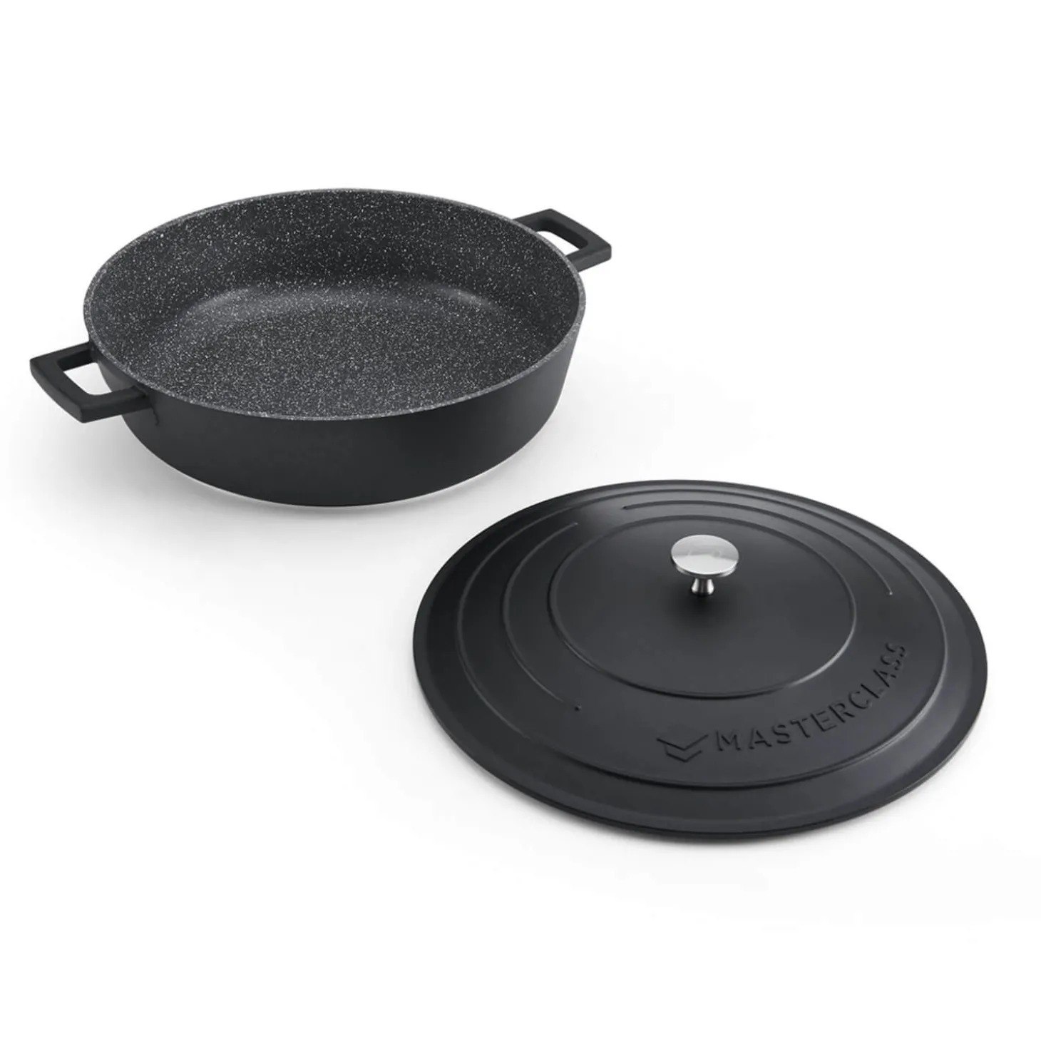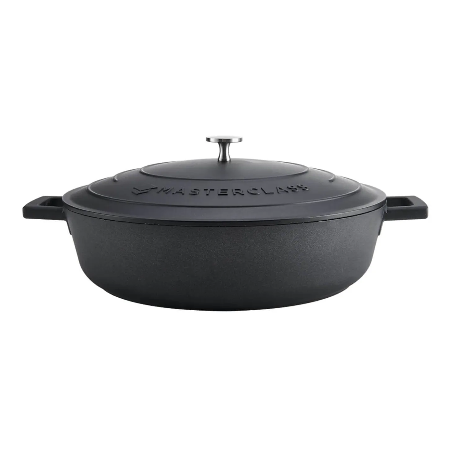 Masterclass presents the 32cm Cast Aluminium Shallow Round Casserole Dish in Black from their Lightweight range. Designed to be much lighter than traditional cast iron while maintaining exceptional strength, this dish is perfect for oven or hob cooking, including induction, ensuring fast and even heat distribution. The self-basting lid locks in moisture for rich, flavourful meals, while the durable, reinforced non-stick coating allows effortless food release. An essential casserole for any type and style of kitchen.Â