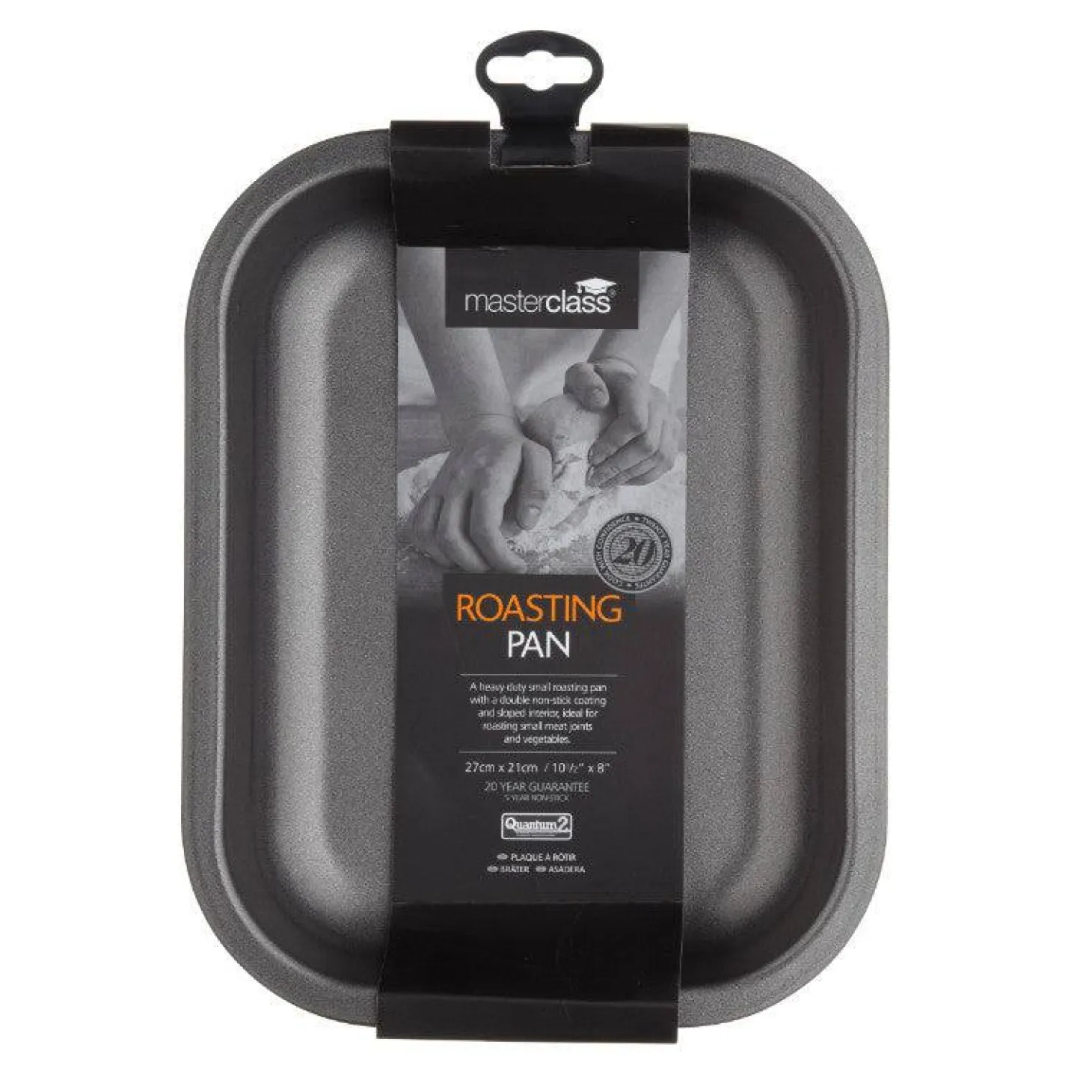 The Kitchencraft Masterclass 27cm Rectangle Open Roaster is made from heavy-duty carbon steel with a non-stick coating, making it ideal for cooking smaller joints of meat and other savoury dishes such as toad-in-the-hole.