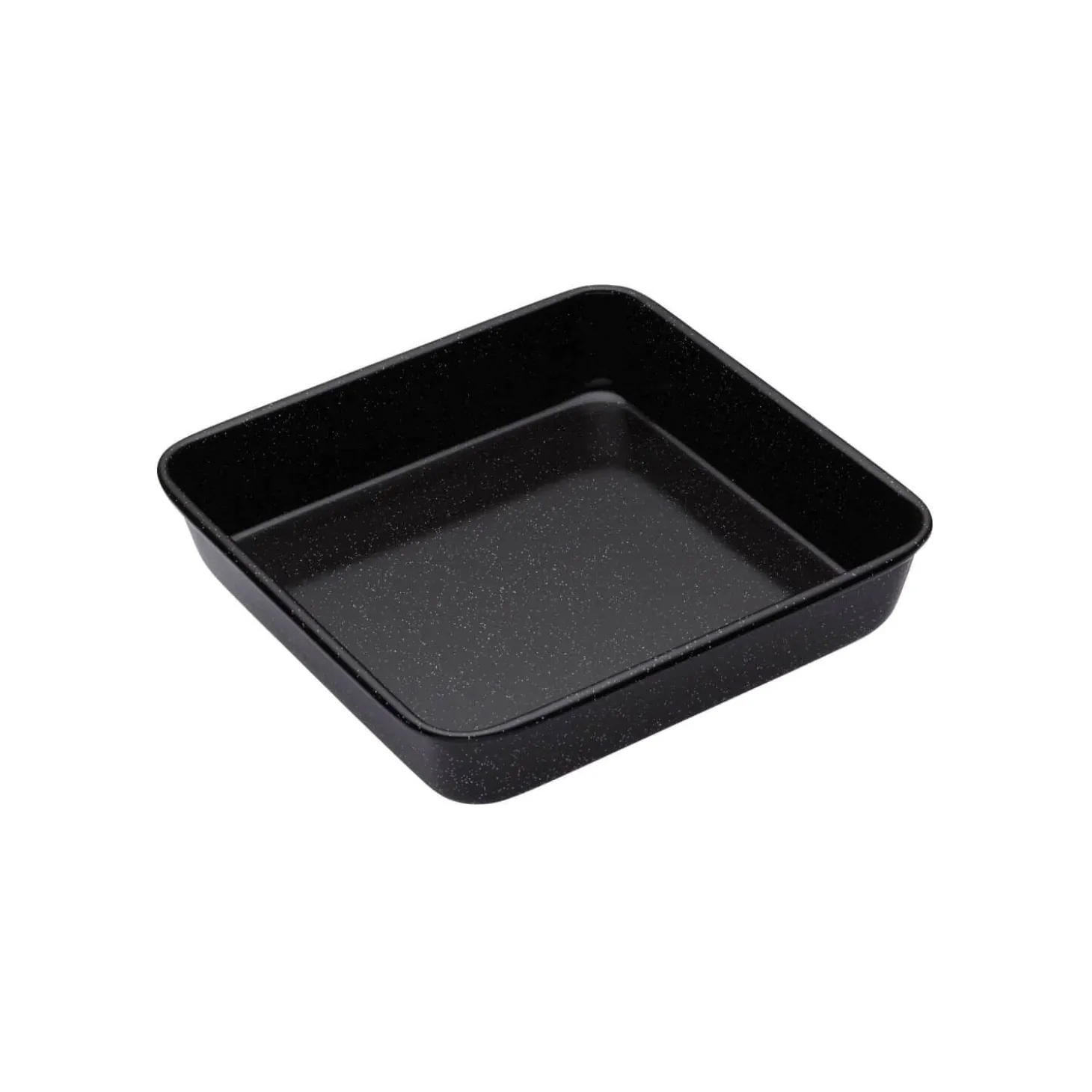 The Masterclass Professional square pan forms part of their Vitreous range which features a 1mm thick steel design with a hardened enamel exterior which is utensil safe and easy to clean. This baking pan is suitable for all direct heat sources including induction.